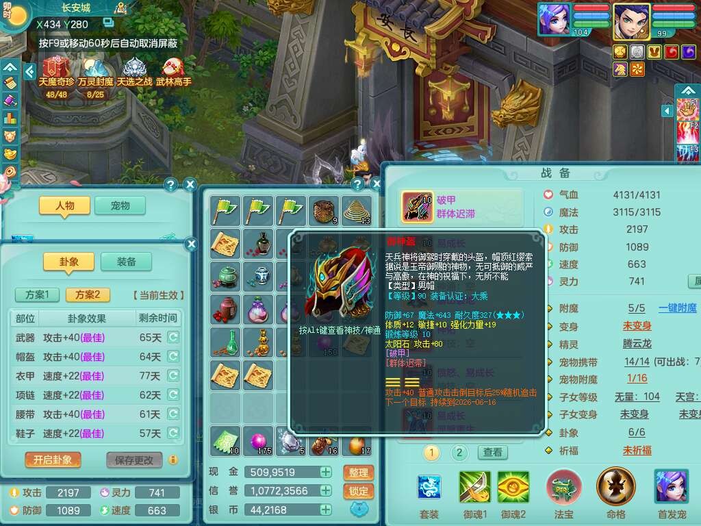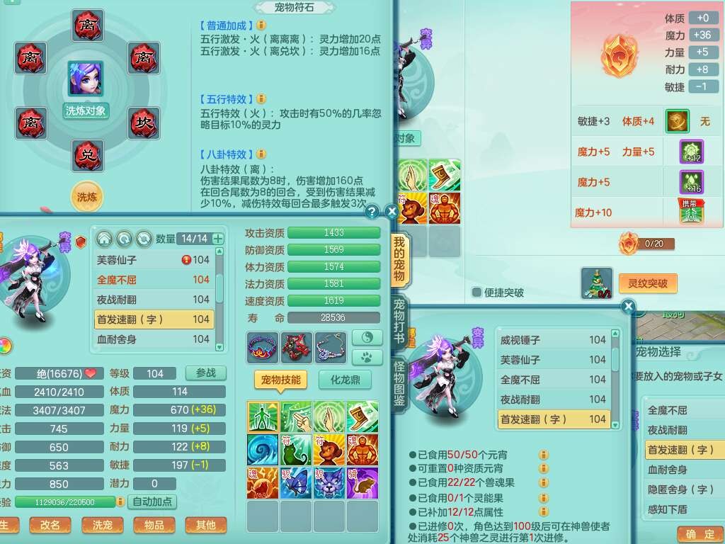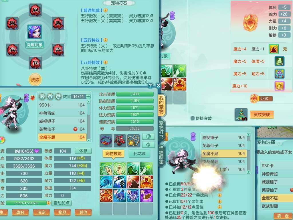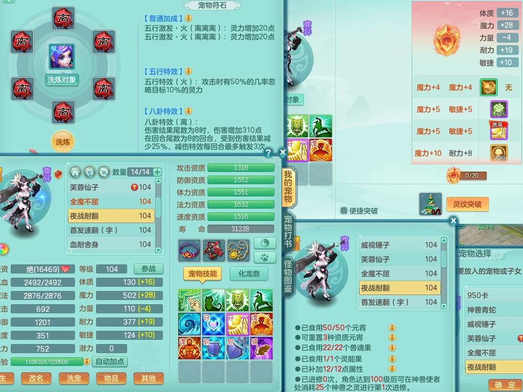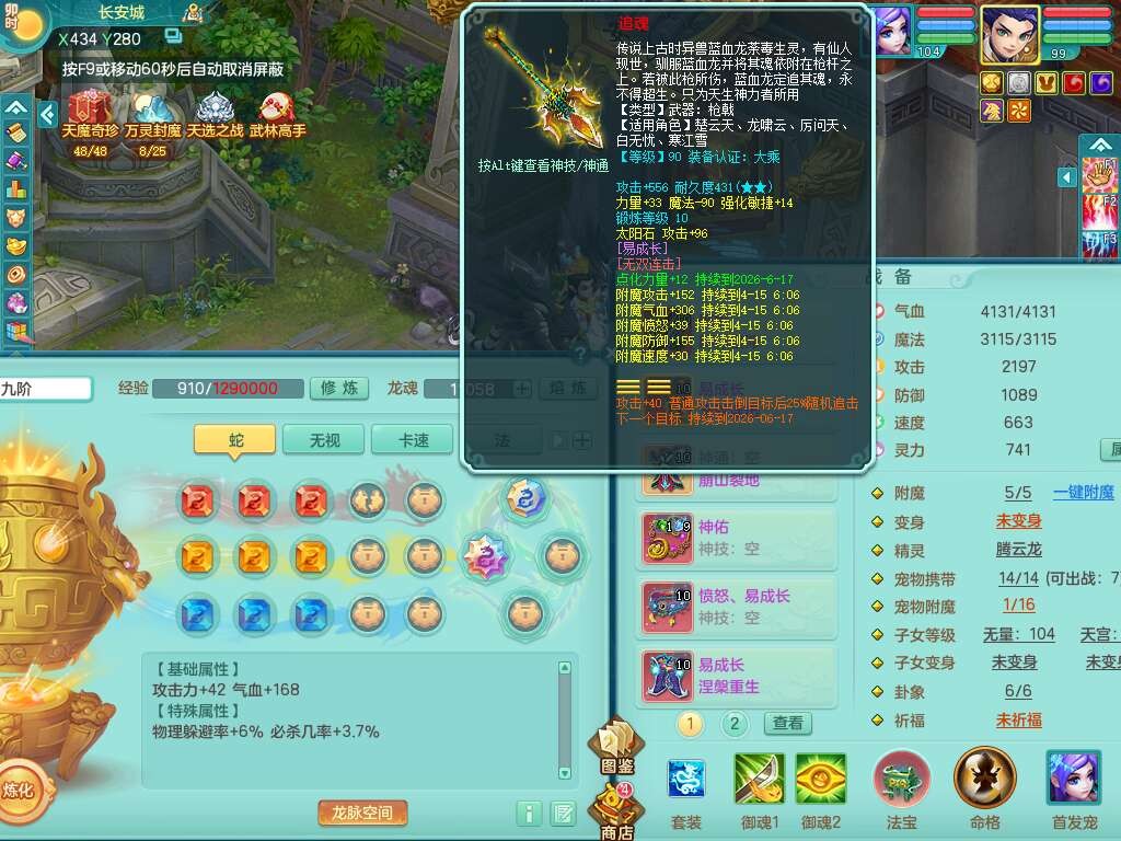 S22167今年勇99男力天宫,1龙无内,2内胆神,1破镜,【11只觉醒,已潜龙】,破甲群体迟滞头,556易成长破血单加33武器,崩山单加衣服,神佑单加35链子,愤怒易腰带,易成长慈航单加32鞋子,160易成长单加链子,崩山单加32鞋子,2.5基础鼎,7个纯六字,5个5字,20只满果子,背包49神兽内丹碎片,宠排在榜,双人坐骑,月卡还有85天。