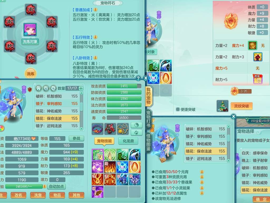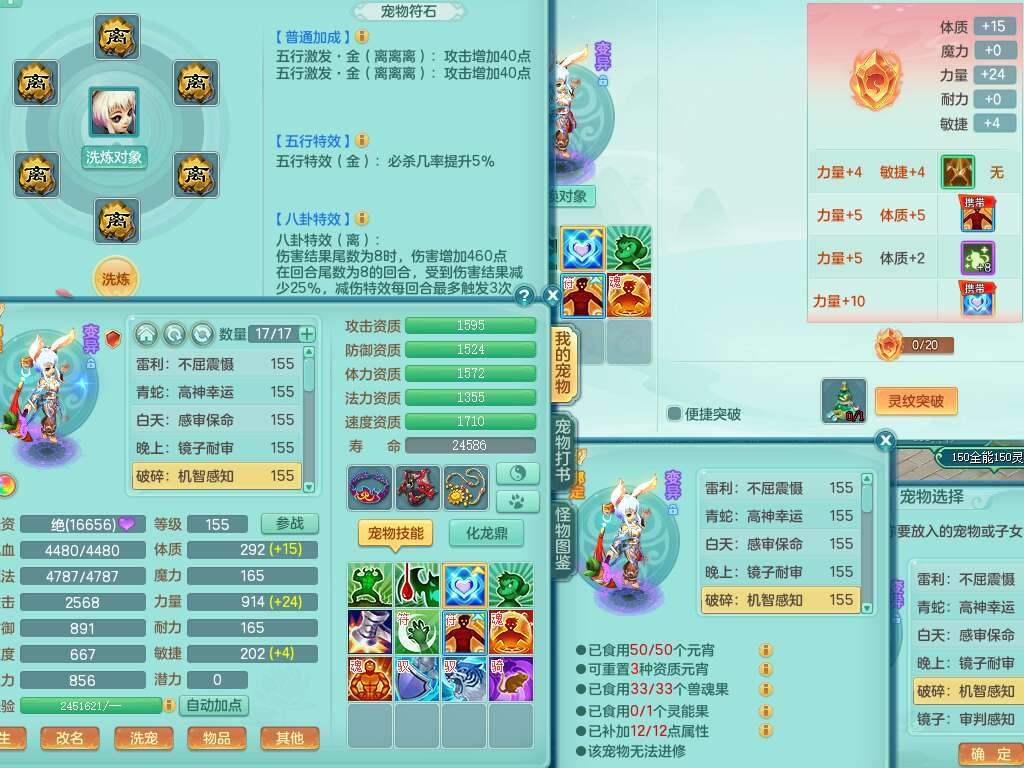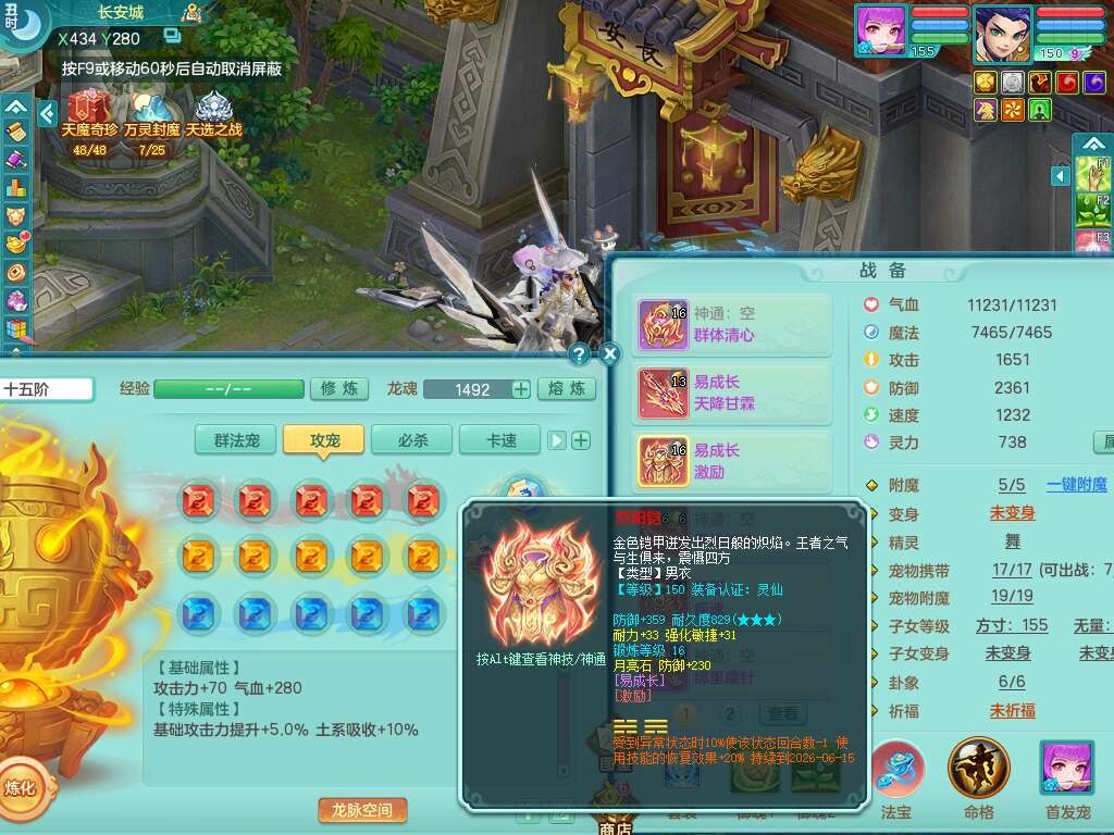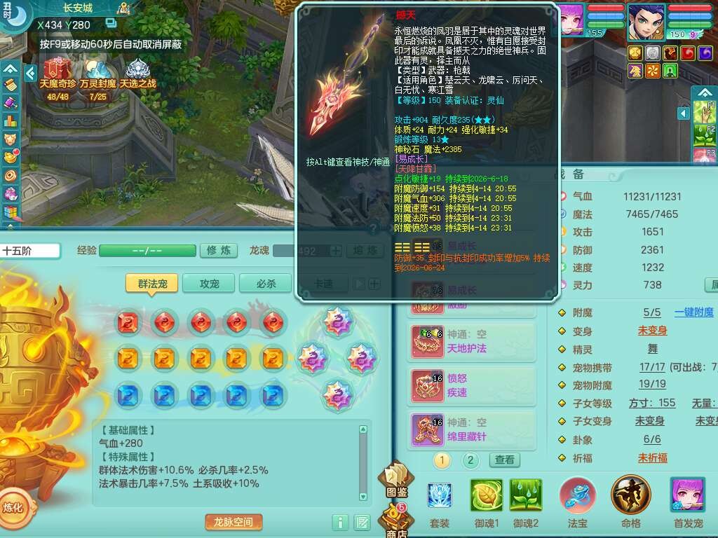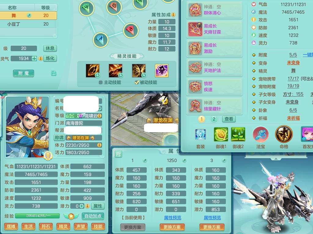a22157战无不胜159男普陀,精灵舞,1龙1内胆神,【9只觉醒,已潜龙】,1宠皮,5只六技能镜花灵,1只六技能龙姬,2特殊(影袭,虎虎),愤怒六特,有物理装备,913狂暴卸甲单加武器,神佑单加项链,崩山衣服,5.5基础鼎+70攻+280血,差759积分换永久15格子,7个纯六字,22只满果子,背包32神兽内丹碎片,宠排在榜,成就在榜,暴龙泰坦+西瓜冰武器皮肤,带72天月卡。