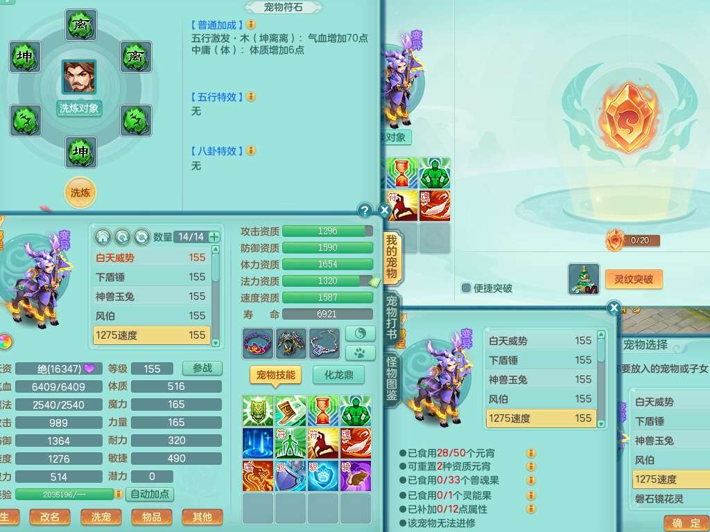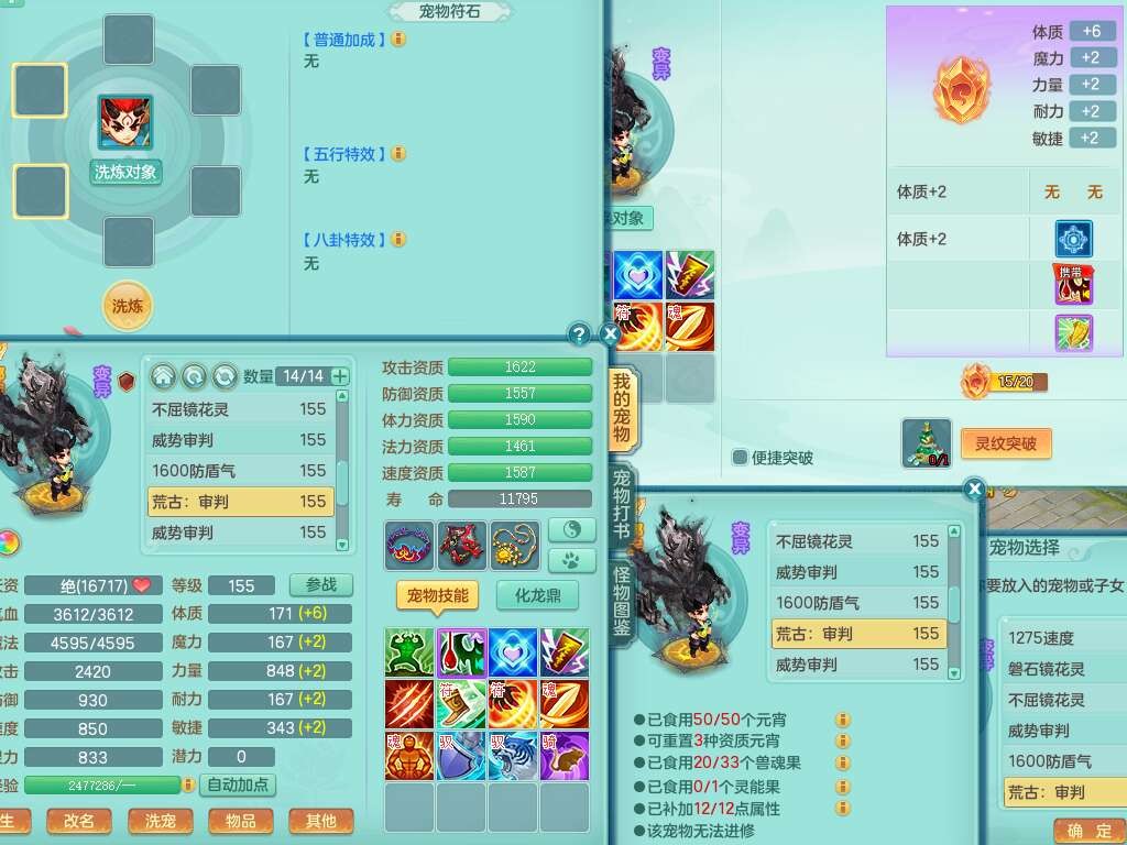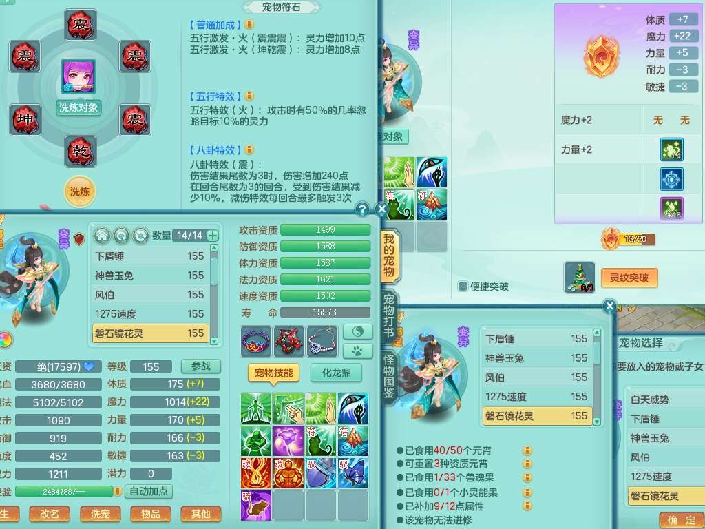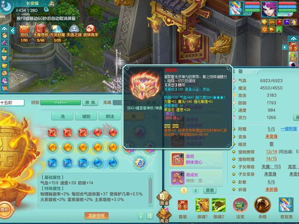 s22150今年勇159男万兽,精灵歌,1龙2内胆神,3只觉醒,4位靓号不含4,3只六技能镜花灵,2只六技能龙姬,震怒晶清单加53腰带,有个回春群体迟滞单加武器,综合5只满果子,4只双人坐骑,仓库23仙兽蛋。