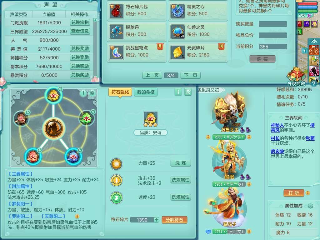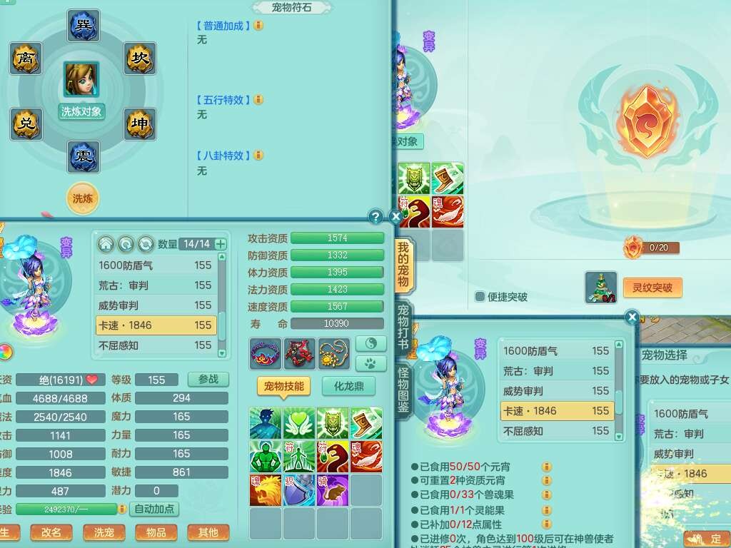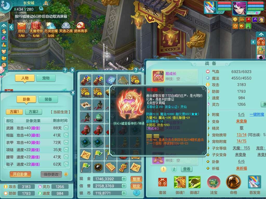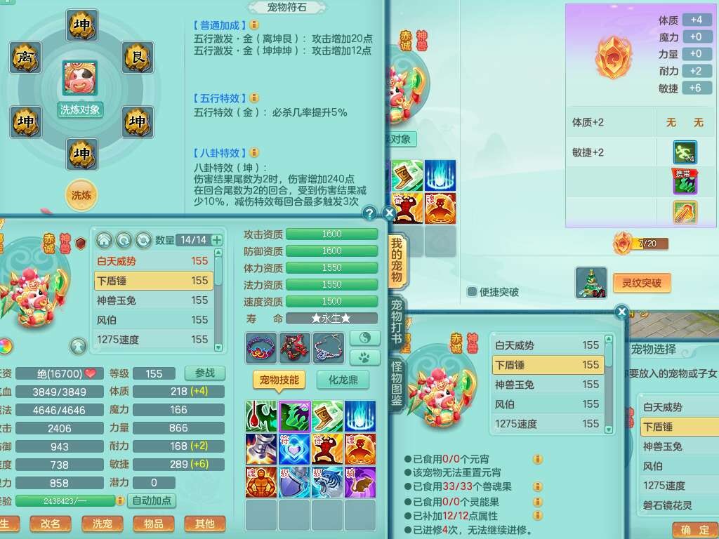 s22150今年勇159男万兽,精灵歌,1龙2内胆神,3只觉醒,4位靓号不含4,3只六技能镜花灵,2只六技能龙姬,震怒晶清单加53腰带,有个回春群体迟滞单加武器,综合5只满果子,4只双人坐骑,仓库23仙兽蛋。