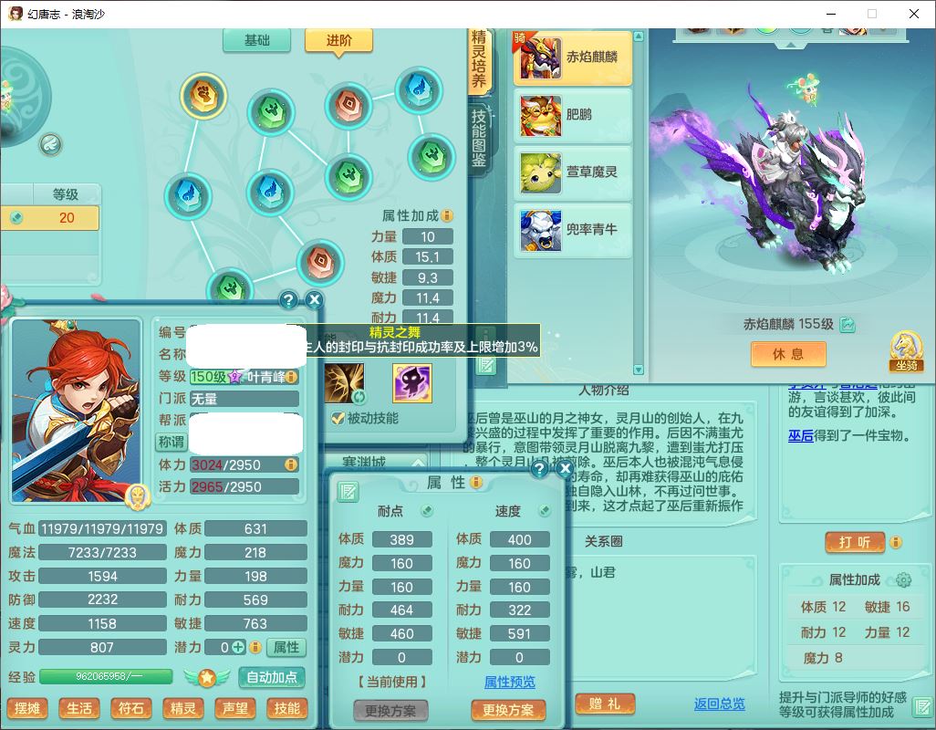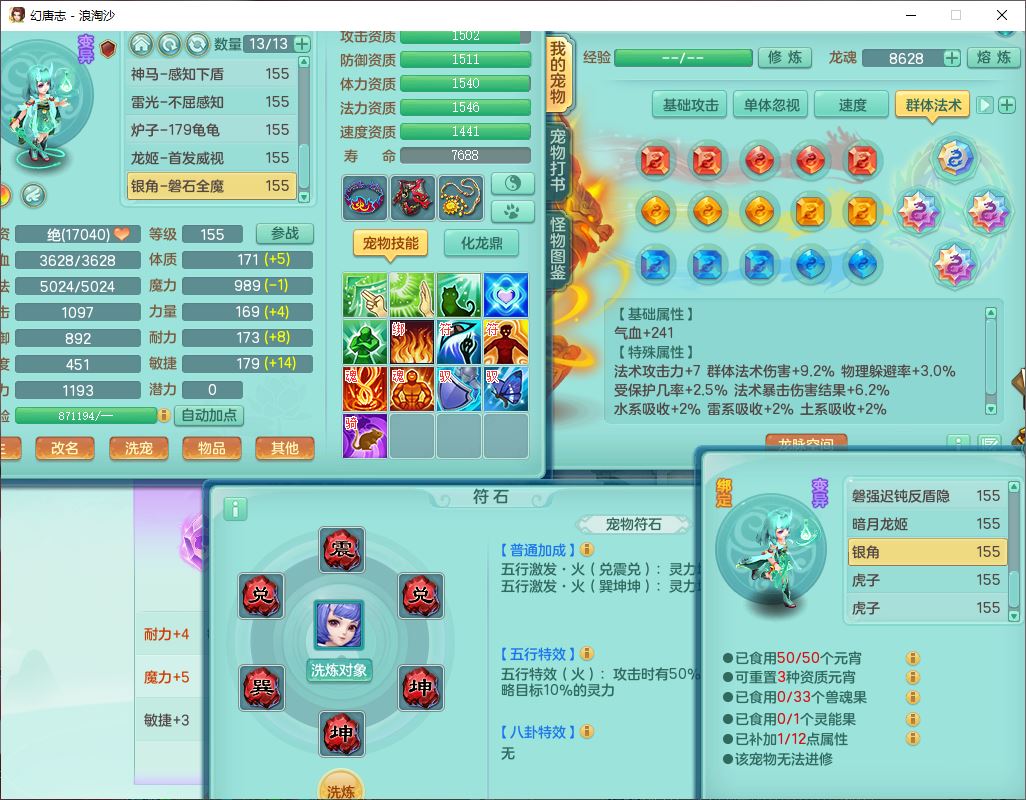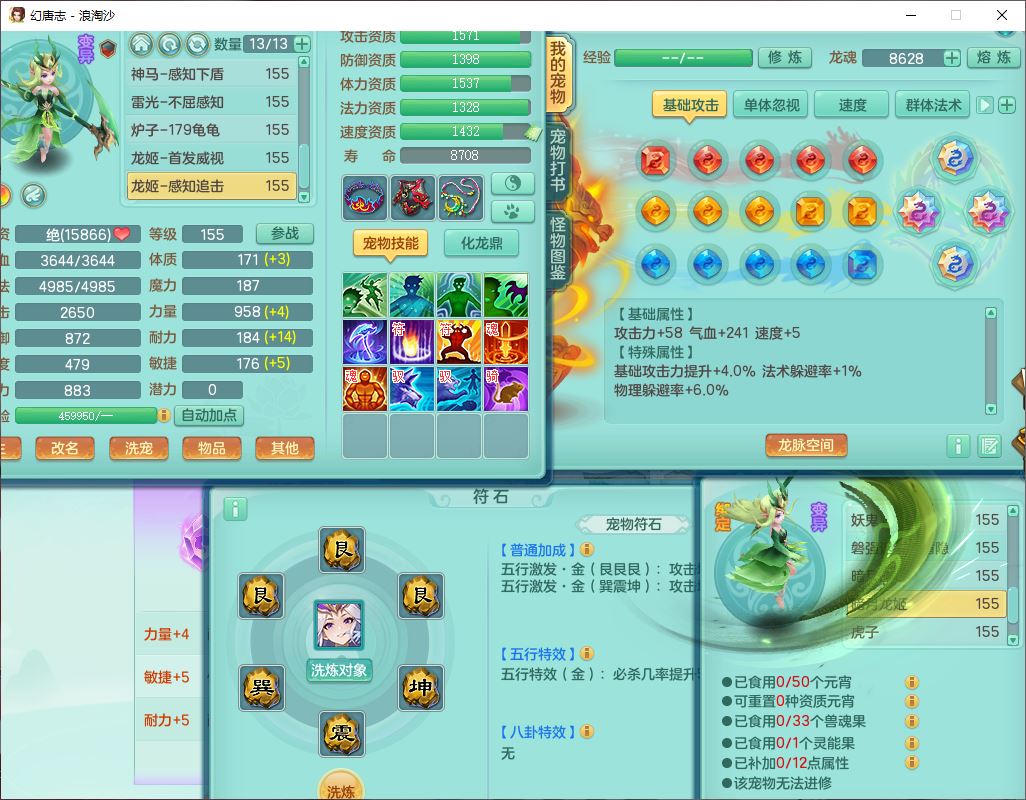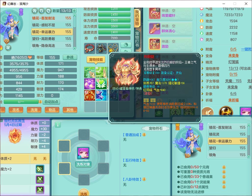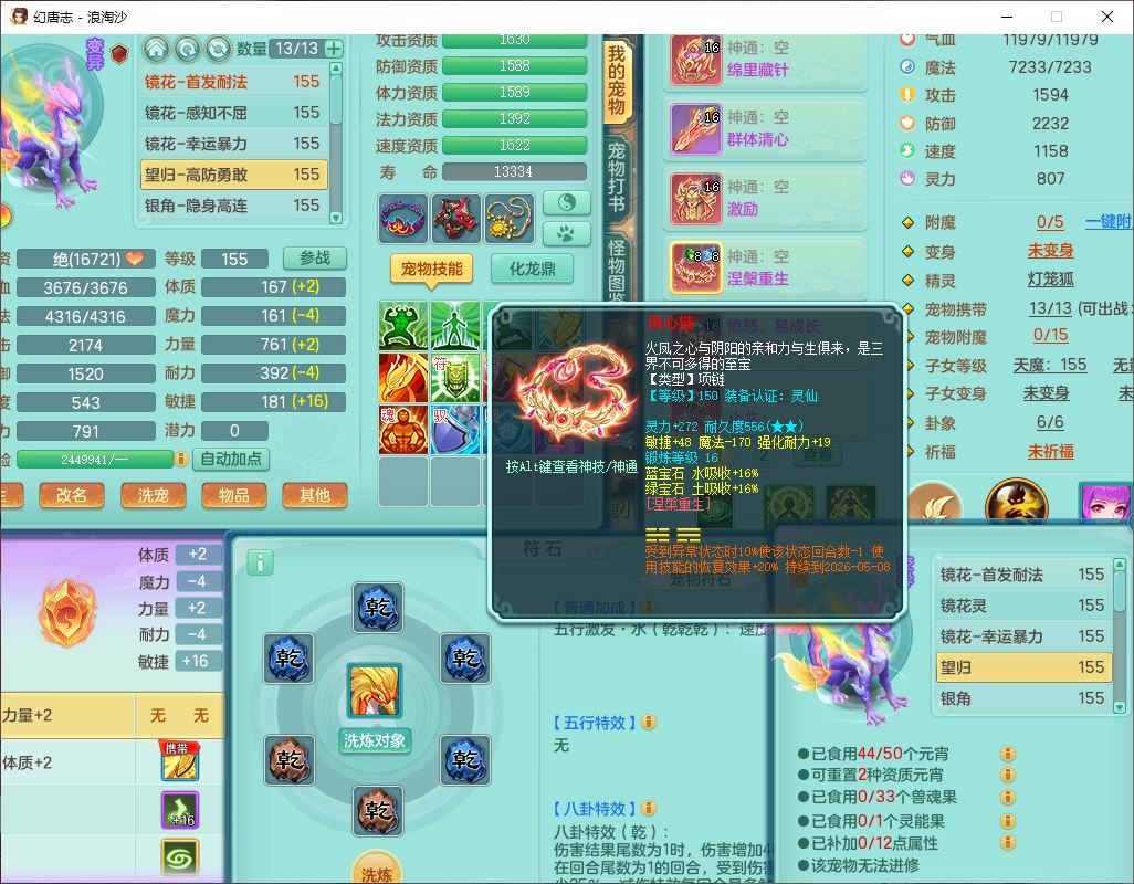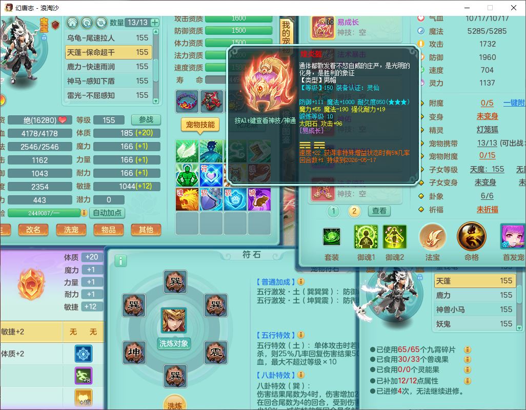 80746浪淘沙159男无量精灵舞,1内丹小马1望归3镜花灵1八技能金钱龟1七技能雷光妖鬼1金炉2龙姬,2觉醒2六字1五字4四字综合6只满果子,8红装备,单加笑里帽子,玉清武器,单加激励衣服, 单加慈航项链,愤怒Y四海腰带,单加止戈鞋子,一套7红装备,法爆水清武器,神佑项链,单加幸运腰带,单加法术缭乱鞋子,鼎4.0,永久头饰、背饰、精灵皮肤,50个仙兽灵,1双人坐骑,带152女万兽