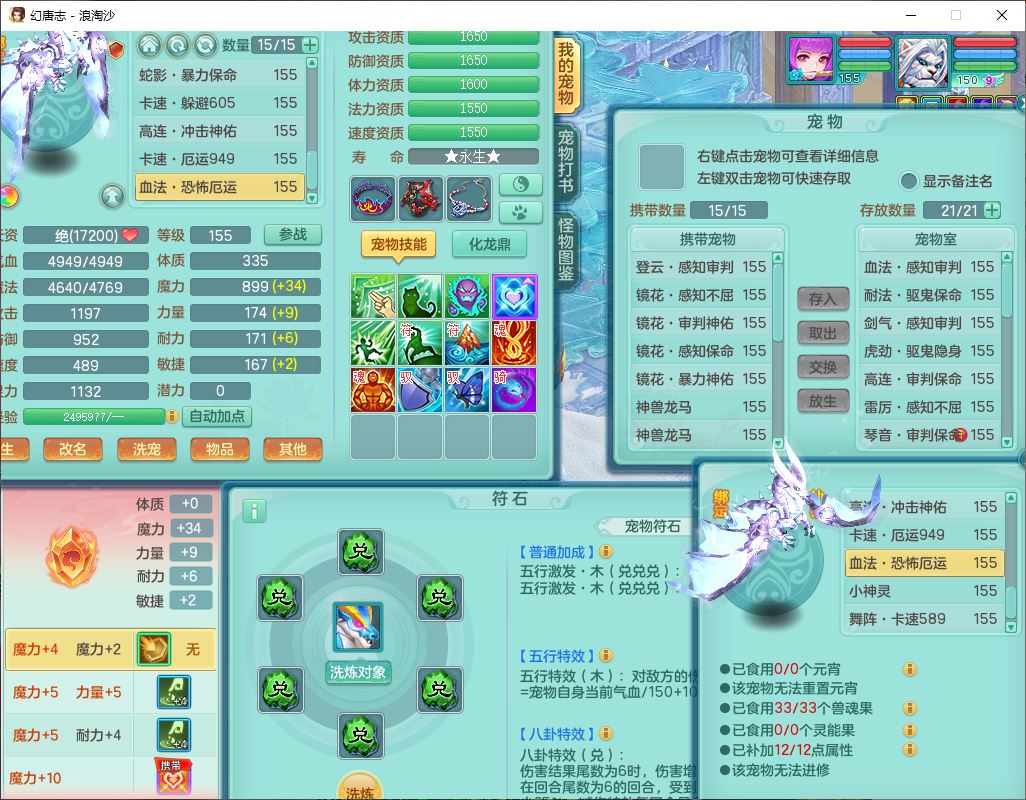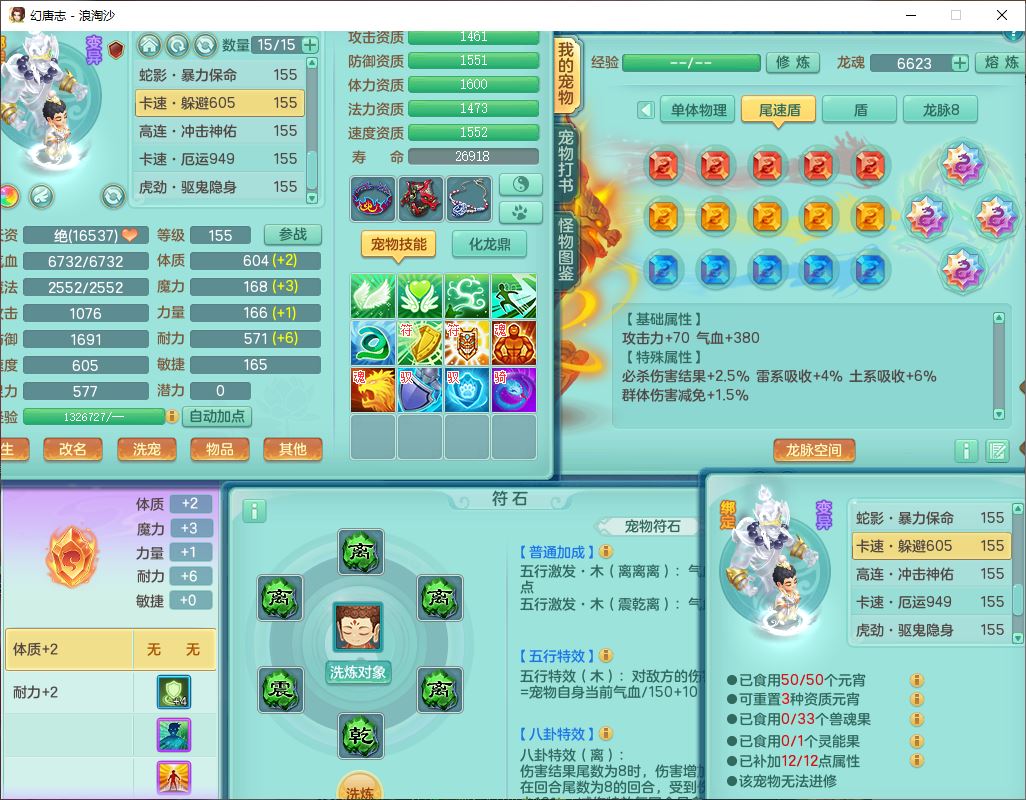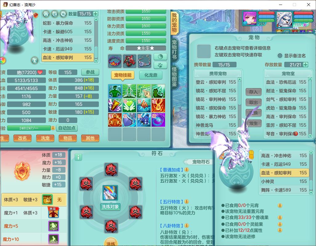 80745浪淘沙159男魔王【潜龙号+暴龙泰坦+西瓜冰】9龙(换,1破境)5内(3龙马1青蛇)4特殊(兽决月光/善恶/破碎/逆龙)4镜花灵1龙姬,5皮25只满果子12觉醒8个纯6字,11红,Y水清头,五雷武器,匠心Y衣服,263Y四海项链,Y四灵腰带,法缭群体激励鞋,鼎5.5+70+280,3套符石,冰晶庭院170房屋194,永久外观精灵皮肤,1841金币,宠排在榜,11坐骑(10只双人)