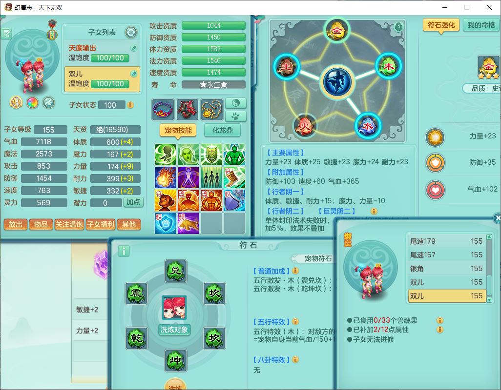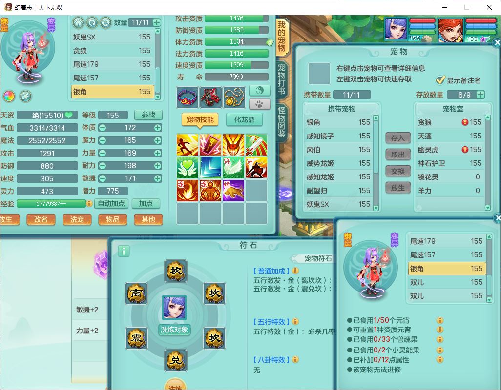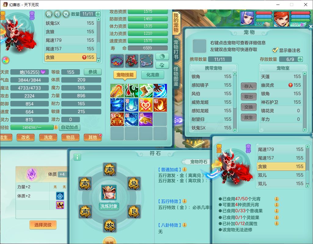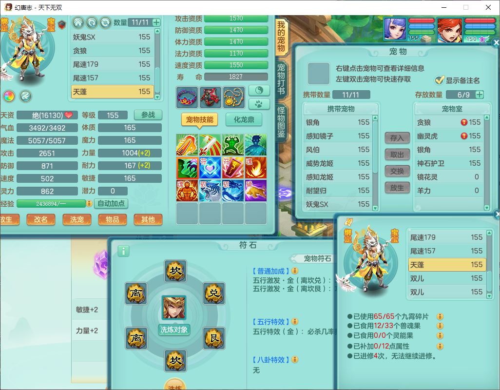 4360天下无双159男方寸1小精灵,1望归1镜花2龙姬1七技能雷光妖鬼,宝宝种类齐全,7红装备,封锁群体疾速武器,鼎4.5,天下火区上号可踢球,装备高单加齐全,封锁迅捷愤怒,擂台无敌