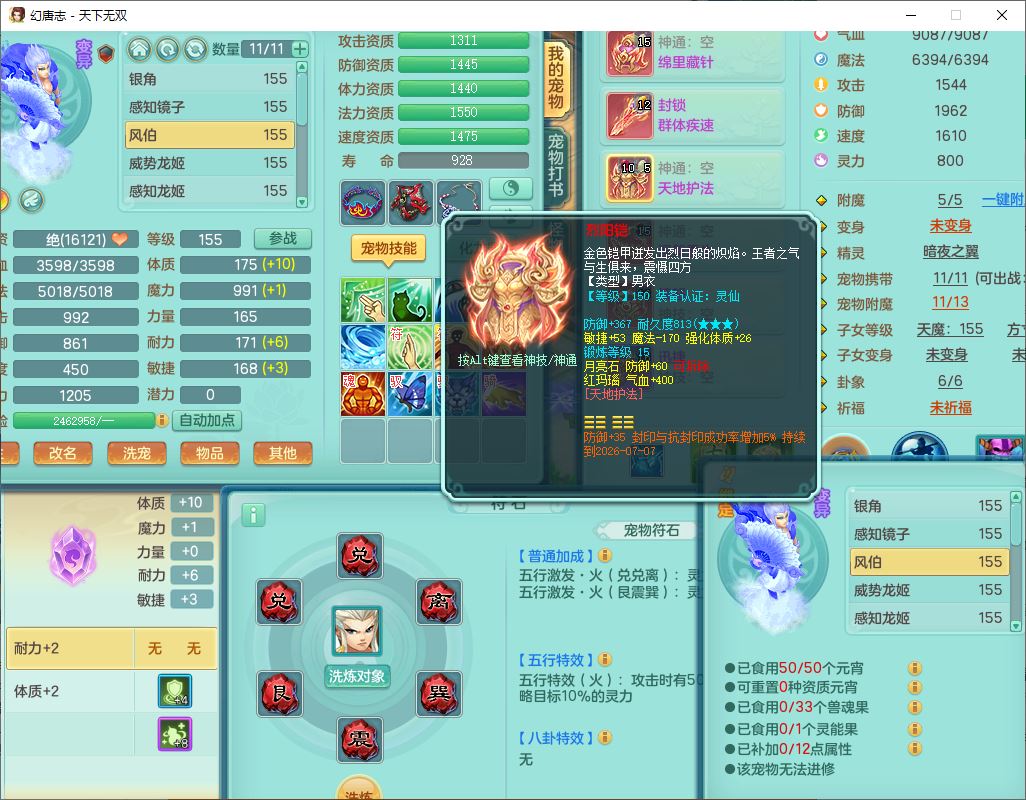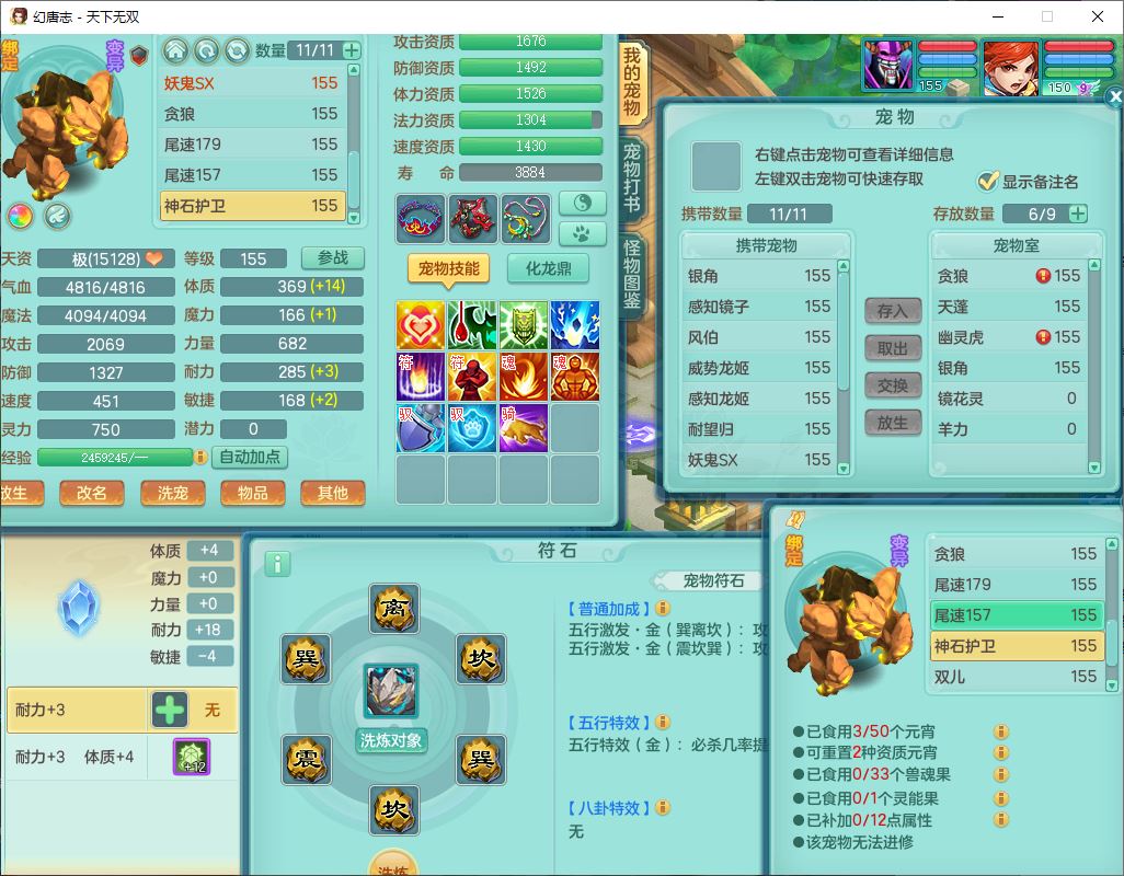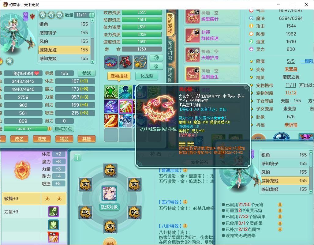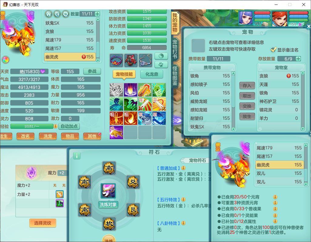 4360天下无双159男方寸1小精灵,1望归1镜花2龙姬1七技能雷光妖鬼,宝宝种类齐全,7红装备,封锁群体疾速武器,鼎4.5,天下火区上号可踢球,装备高单加齐全,封锁迅捷愤怒,擂台无敌