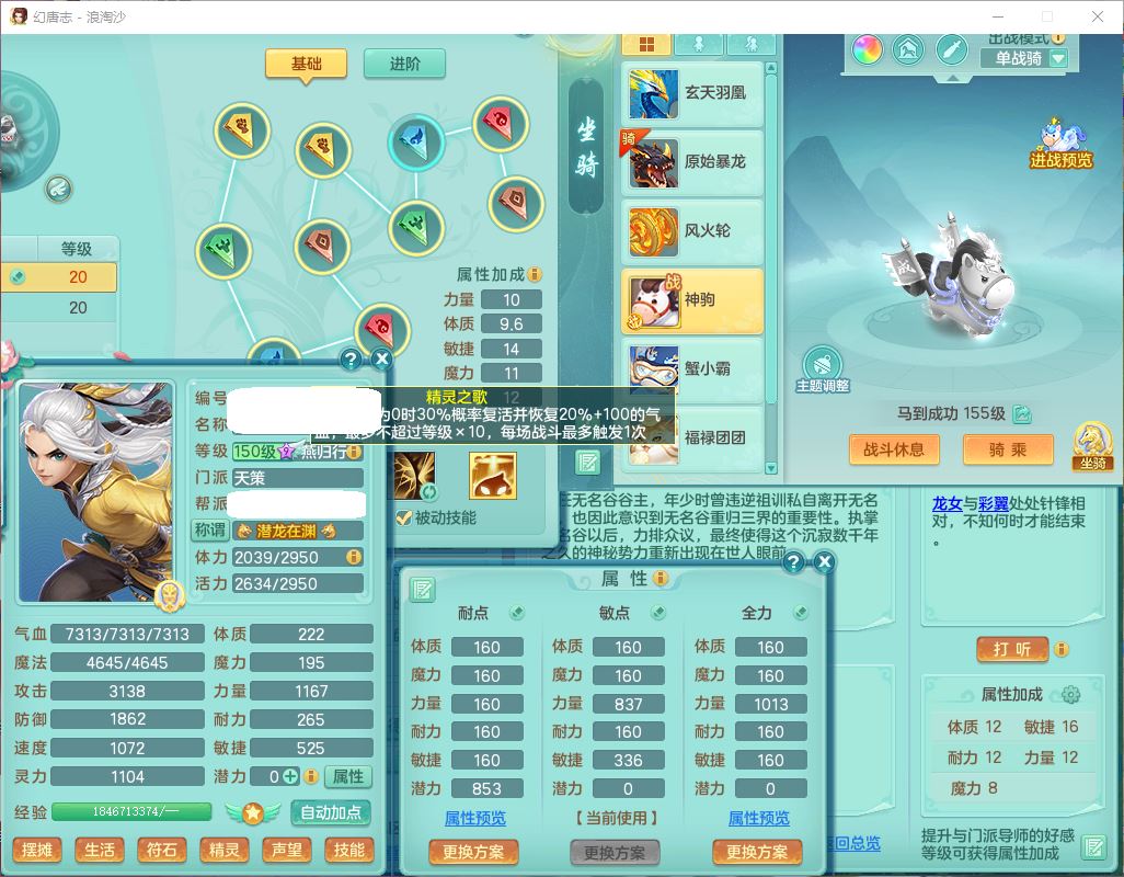 62416浪淘沙159男天策【潜龙+马到成功+暴龙泰坦+暴龙洪荒+火焰之力+西瓜冰】精灵歌,8位靓号,6龙(换)3内(1青蛇1龙马)2特殊(双星,兽决青霜)3镜花1金炉1童子1龙姬,13觉醒6宠皮9六字4五字7四字25只满果子,17格子,10红装备,Y四海帽子,击退慈航武器,崩山衣服,神佑项链,Y破血腰带,Y晶清鞋子,一套辅助装备,愤怒魔音腰带,封印精通慈航帽子,鼎6.0+70+280,2套符石,106天月卡,房屋156,永久外观、精灵皮肤,67个内丹碎片,1.2W多金币,4坐骑(1双人飞行)