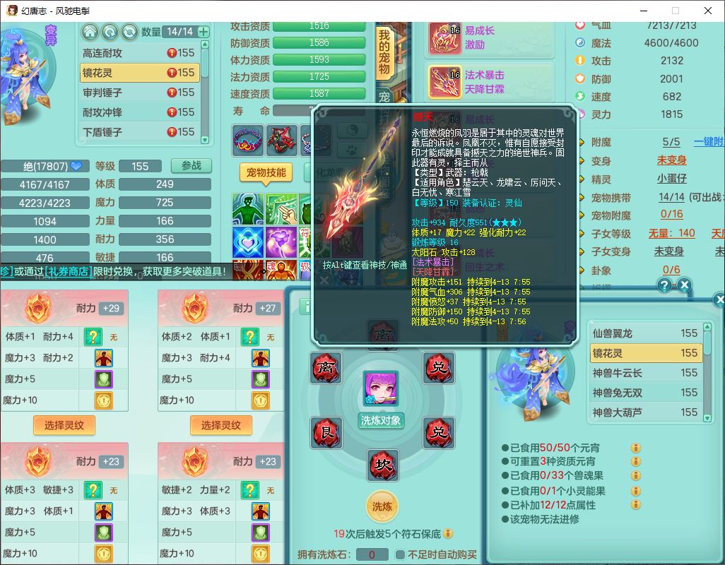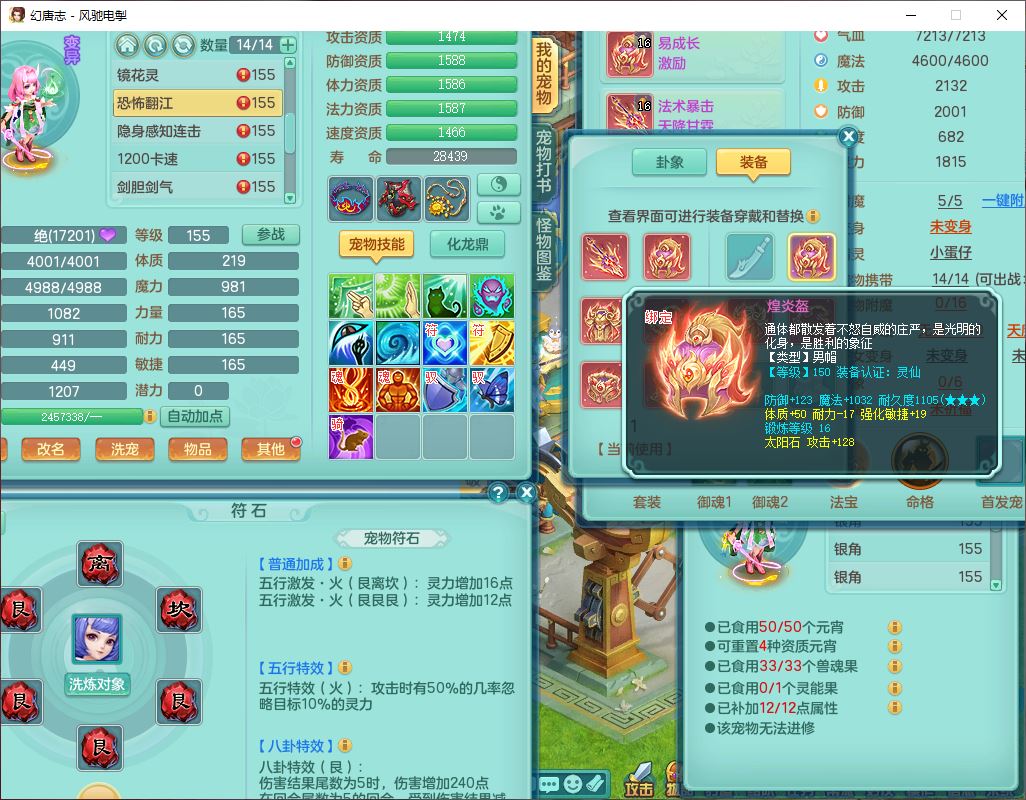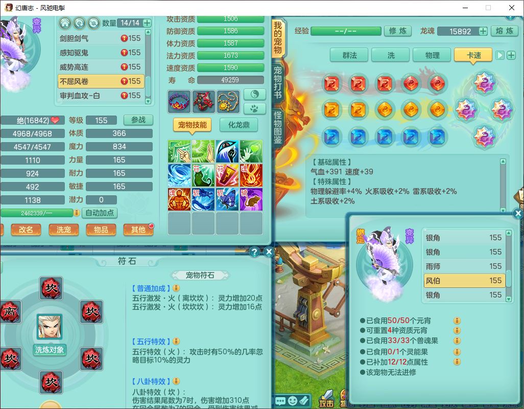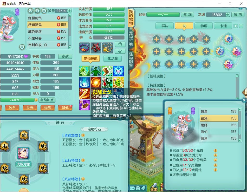 23469风驰电掣159男天宫精灵怒,1龙3内2镜花特殊(翻江、剑胆、以战)3宠皮,2觉醒9五字12四字综合18只满果子,12红装备,Y激励帽子,法爆四海武器,Y玉清衣服,Y迟滞项链,愤怒烽火腰带,Y回生鞋子,鼎4.5+70,庭院167,永久外观饰物、精灵皮肤,403W神武币,65个仙兽灵,3双人坐骑(2飞行)