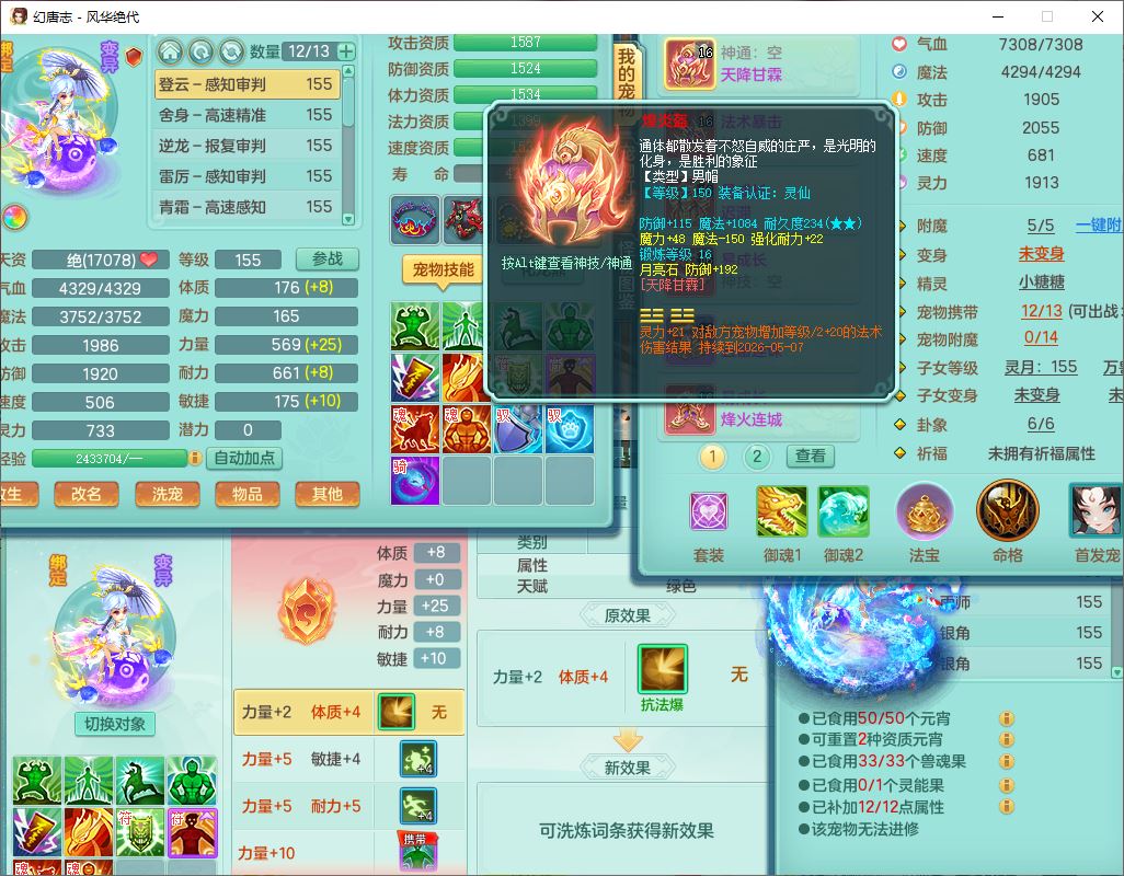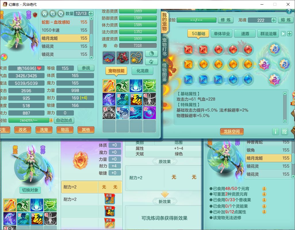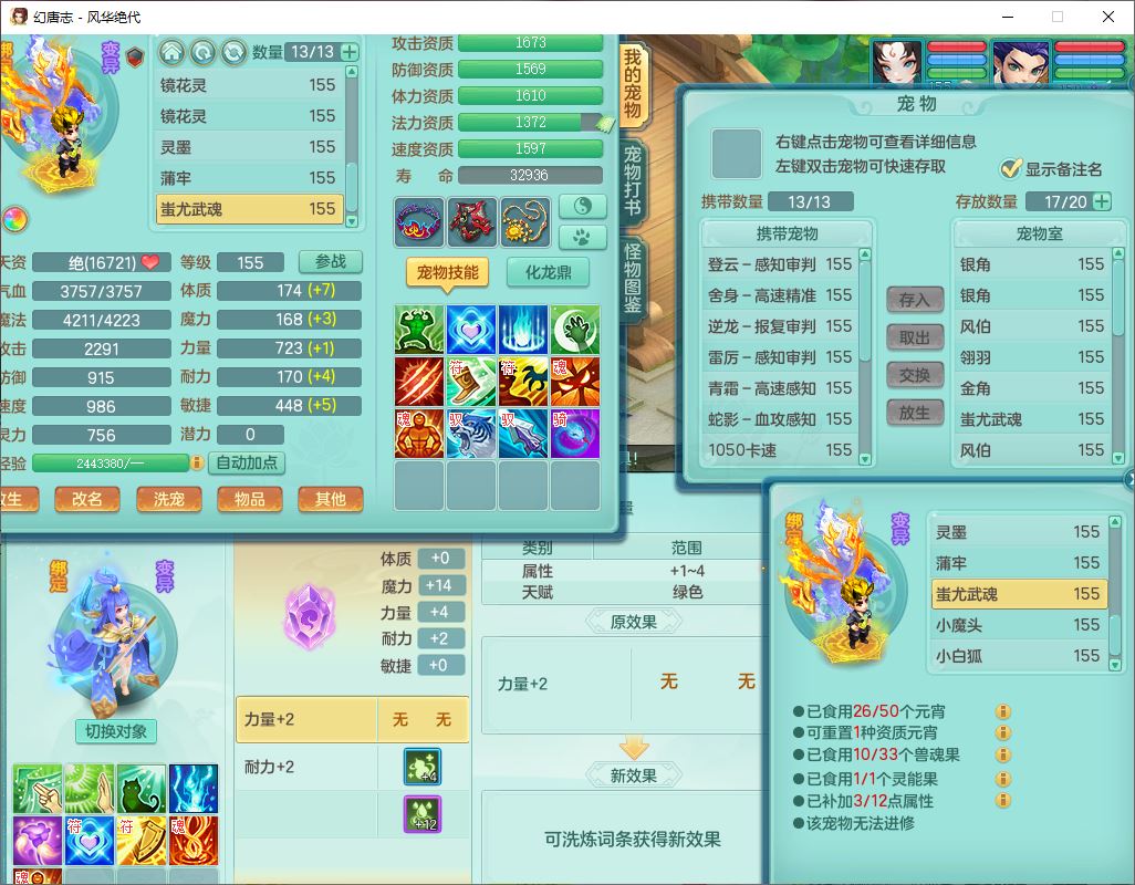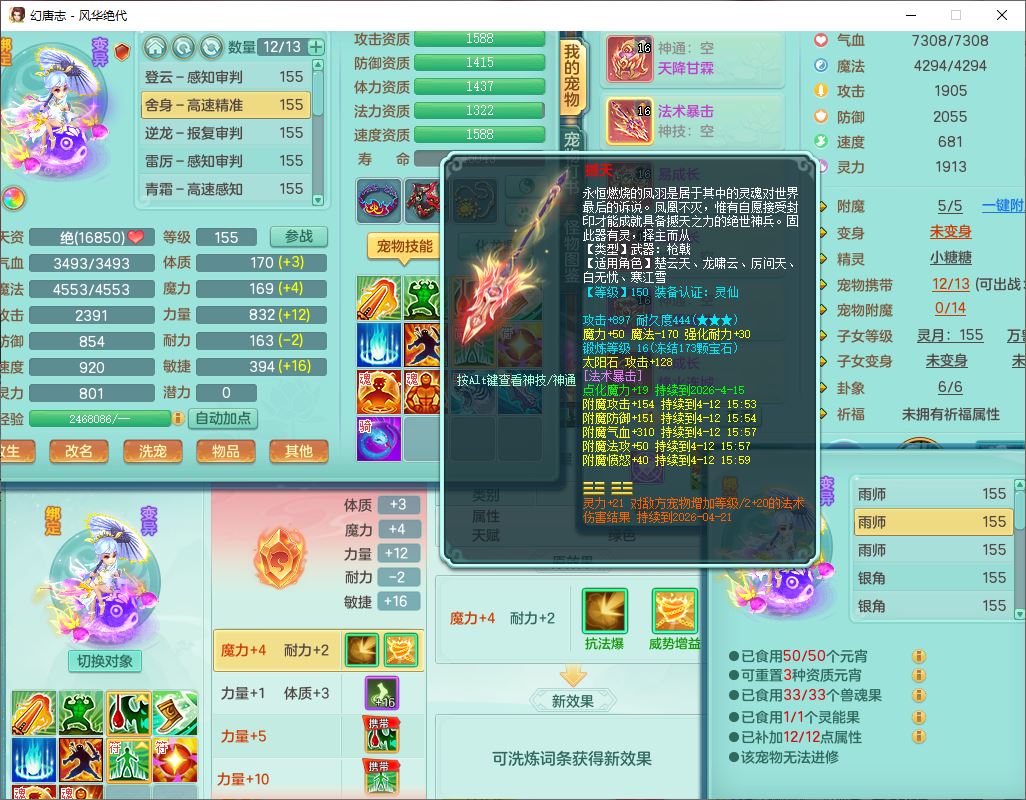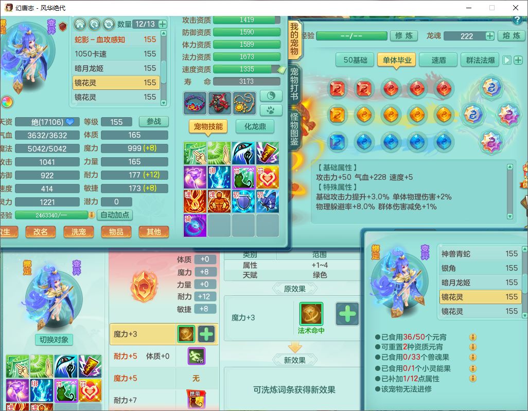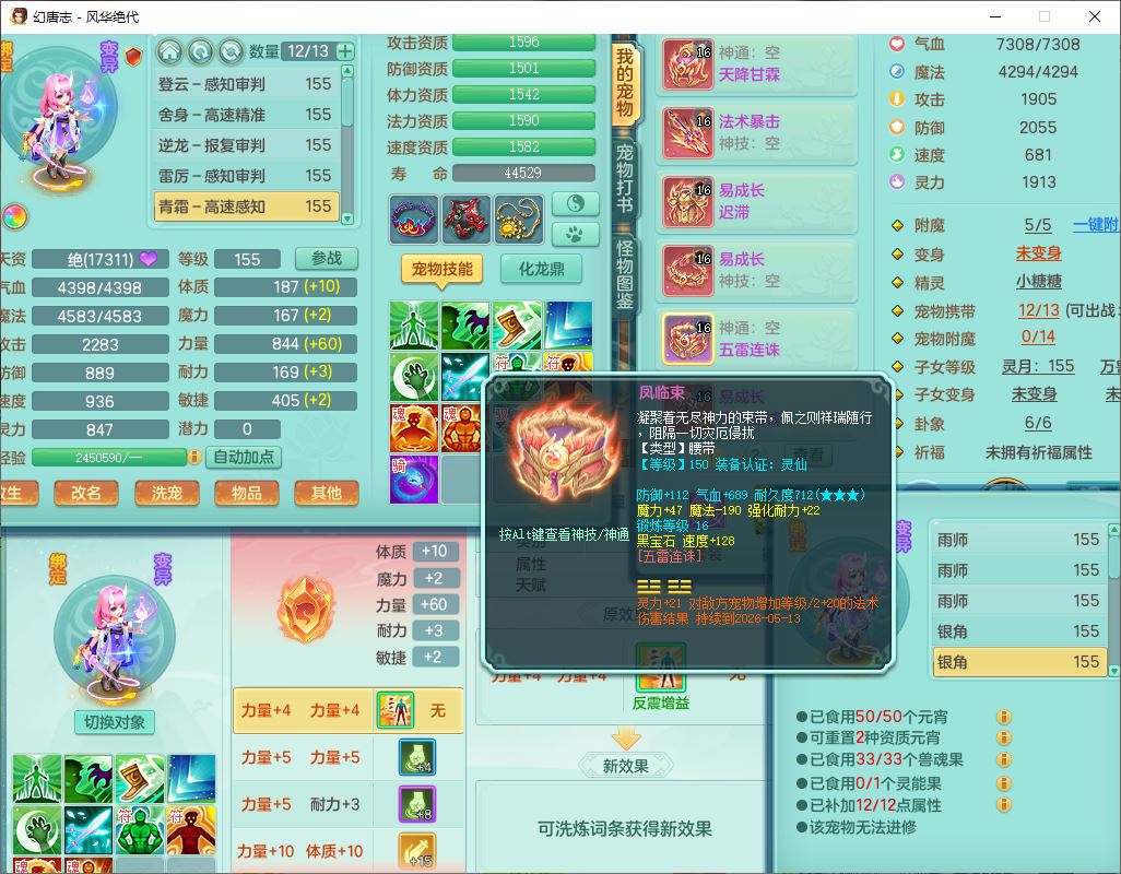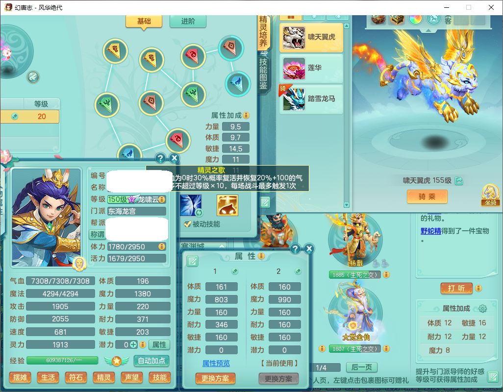 4356风华绝代159男龙宫精灵歌,1内丹青蛇7特殊(登云、舍身、逆龙、雷利、青霜、墨守,荒古兽决)2镜花,6觉醒,8红全单加装备,法爆武器,Y迟滞衣服,276Y项链,五雷腰带,Y烽火鞋子,精准破血帽子,鼎5.0,84天月卡,24个内丹碎片,1双人飞行坐骑