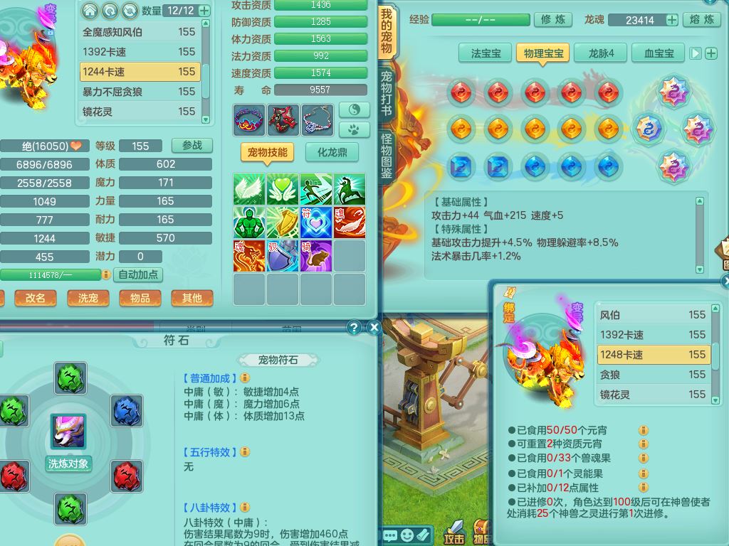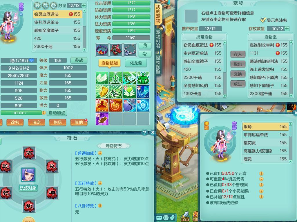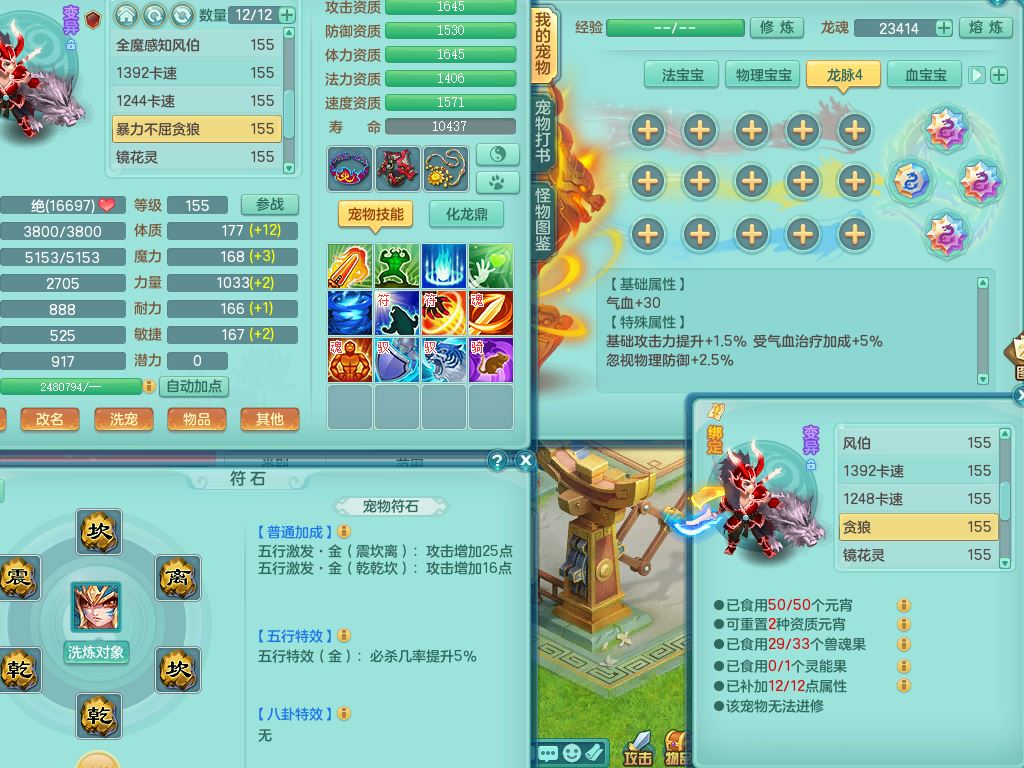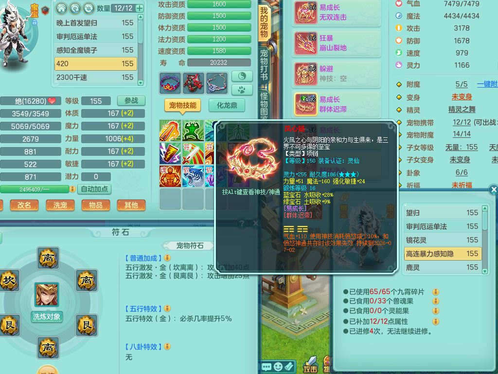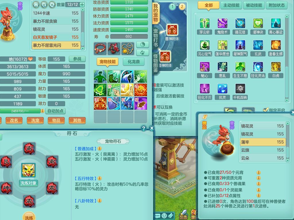 52682三生万物159男万兽精灵舞,1内(青蛇)1望归3镜花灵,3觉醒4四字综合7只满果子,11红装备,Y破血帽子,狂暴崩山武器,Y群体迟滞项链,Y止戈腰带,Y晶清鞋子,鼎4.5,47天月卡,永久外观饰物、精灵皮肤,201W神武币,1飞行双人坐骑