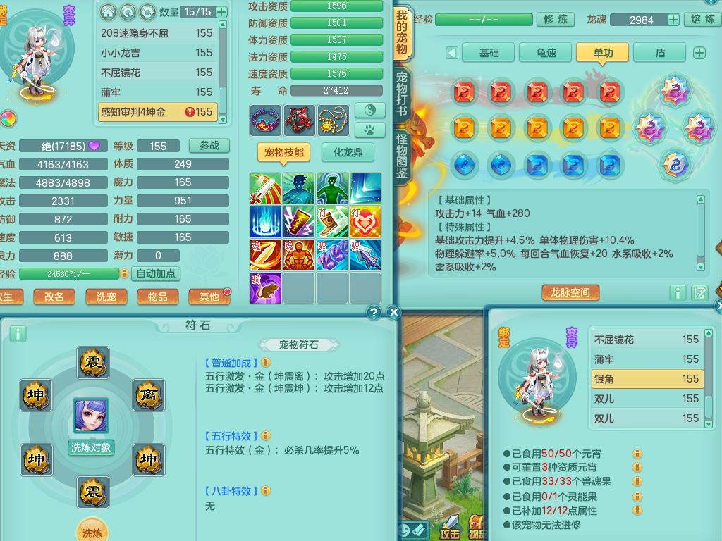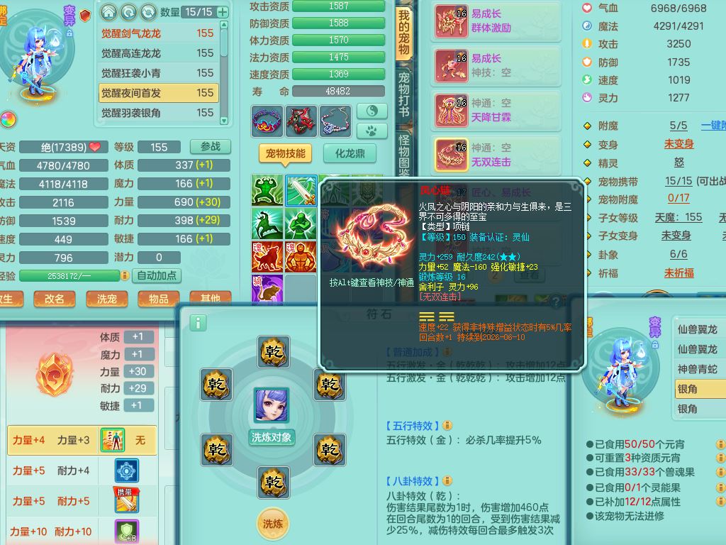jt10322九天揽月159女万兽【准潜龙号,只差3条符石和混沌龙纹,暴龙洪荒+西瓜冰】精灵舞,2内丹龙2内丹神(1青蛇),3特殊(羽袭/剑胆/夺命)16只满果子8觉醒8个纯6字,9红全身单加,Y双红头,919Y武器,匠心Y止戈腰带,辅助愤怒5特,封印净心头,鼎4.5+70+280,128天月卡,永久外观精灵皮肤,4坐骑(3只双人)有双重认证