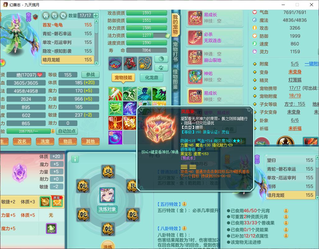 jt10325九天揽月159男天策【潜龙+心想事成+火焰之力+西瓜冰+流光翎】精灵舞,4位靓号,3龙(2破境)2内(1龙马1青蛇,1破境)1望归2特殊(羽袭、翻江)1龙姬4镜花1金炉,10觉醒9宠皮(1幻灵果)9六字1五字14四字19只满果子,17格子,8红星辰之拥装备,必杀破血武器,崩山衣服,破甲Y鞋子,一套愤怒五特辅助装备,鼎5.5+70+280,2套符石,109天月卡,冰晶庭院195房屋180,永久外观、精灵皮肤,50个内丹碎片,8坐骑(1双人飞行)