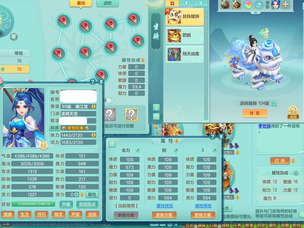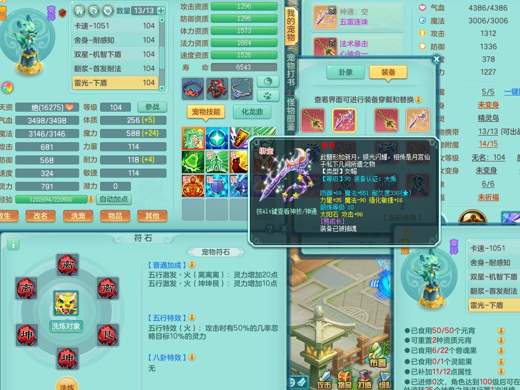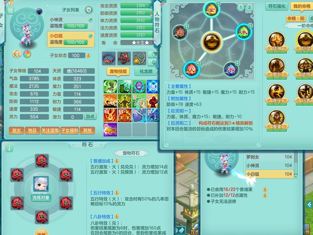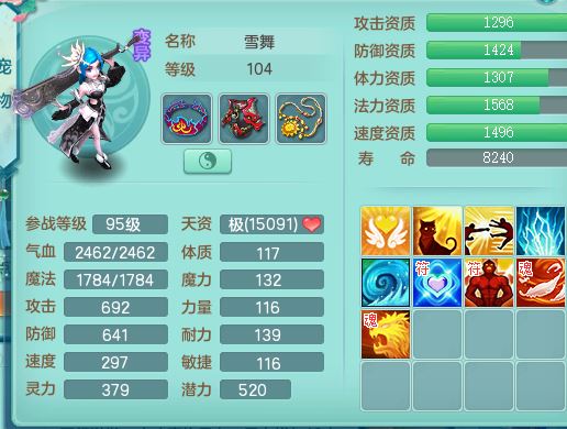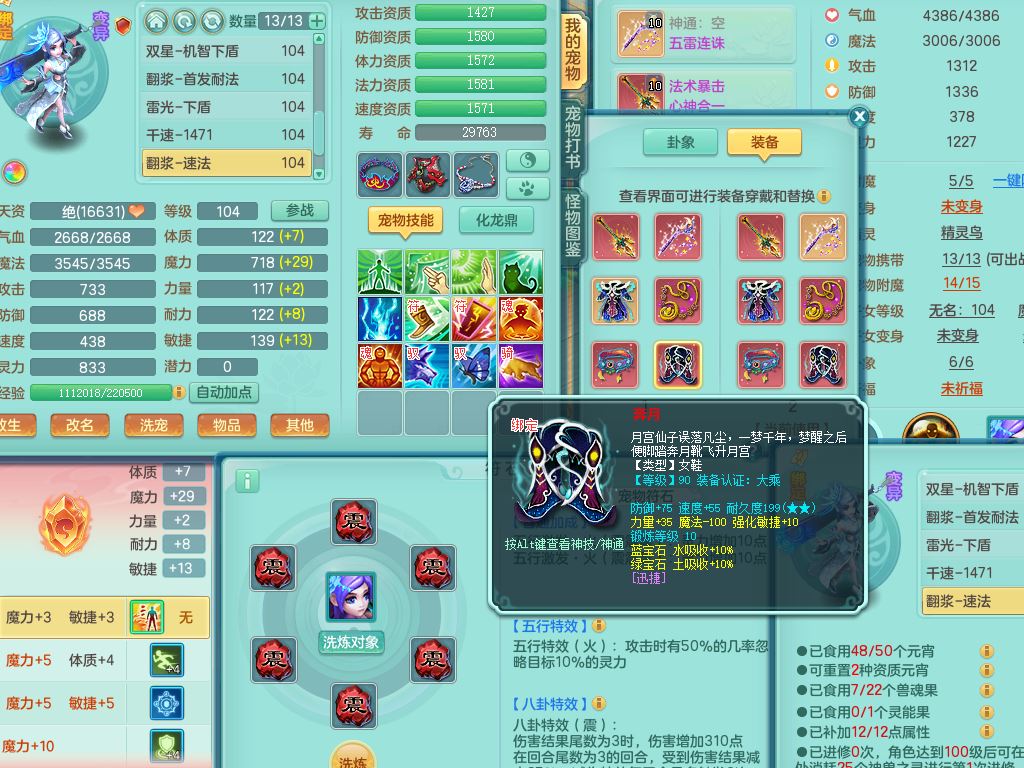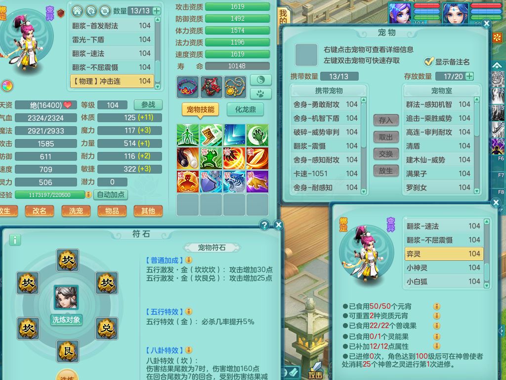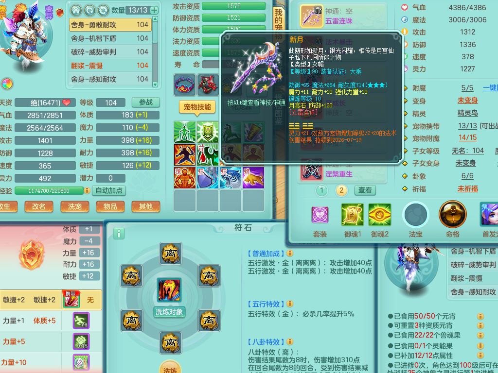 tx10324天下无双99女天宫【潜龙号】双系精灵,1内丹神,综合15只满果子9觉醒7个纯6字,五雷头,单加法爆心神武器,单加Y衣服,156单加Y项链,物理553Y双红武器,崩山衣服,单加Y破血腰带,2套鼎3.0+42+168,永久头饰精灵皮肤,宠排在榜,双人坐骑,带155奶粉地府,带飞行双人老虎坐骑