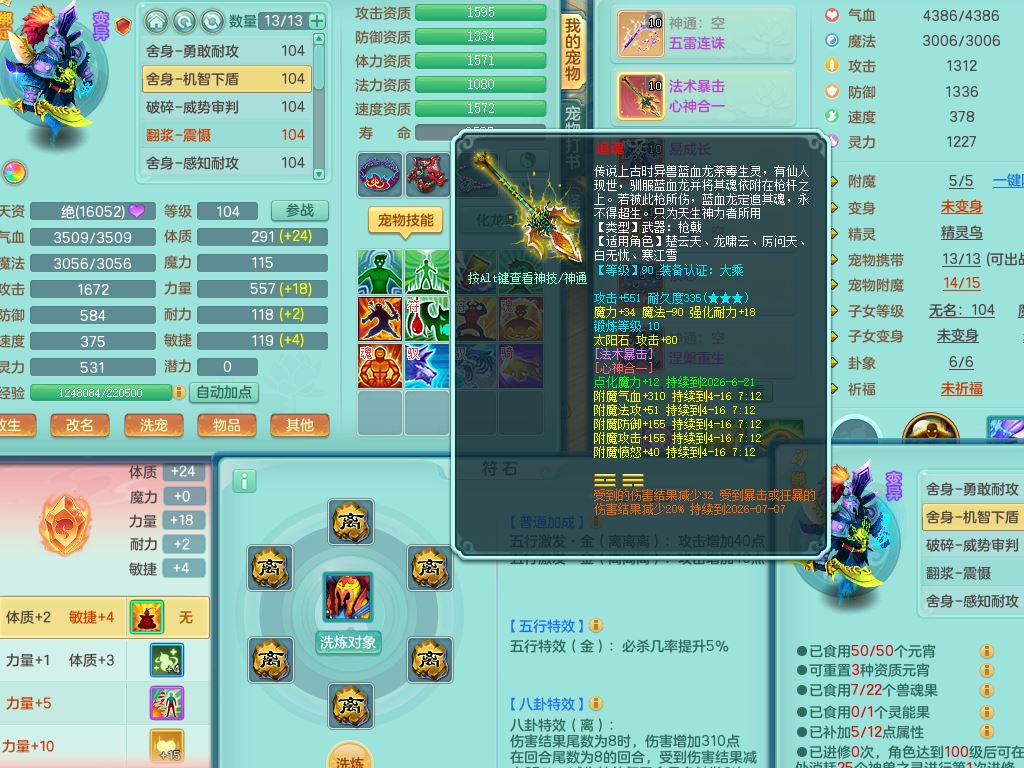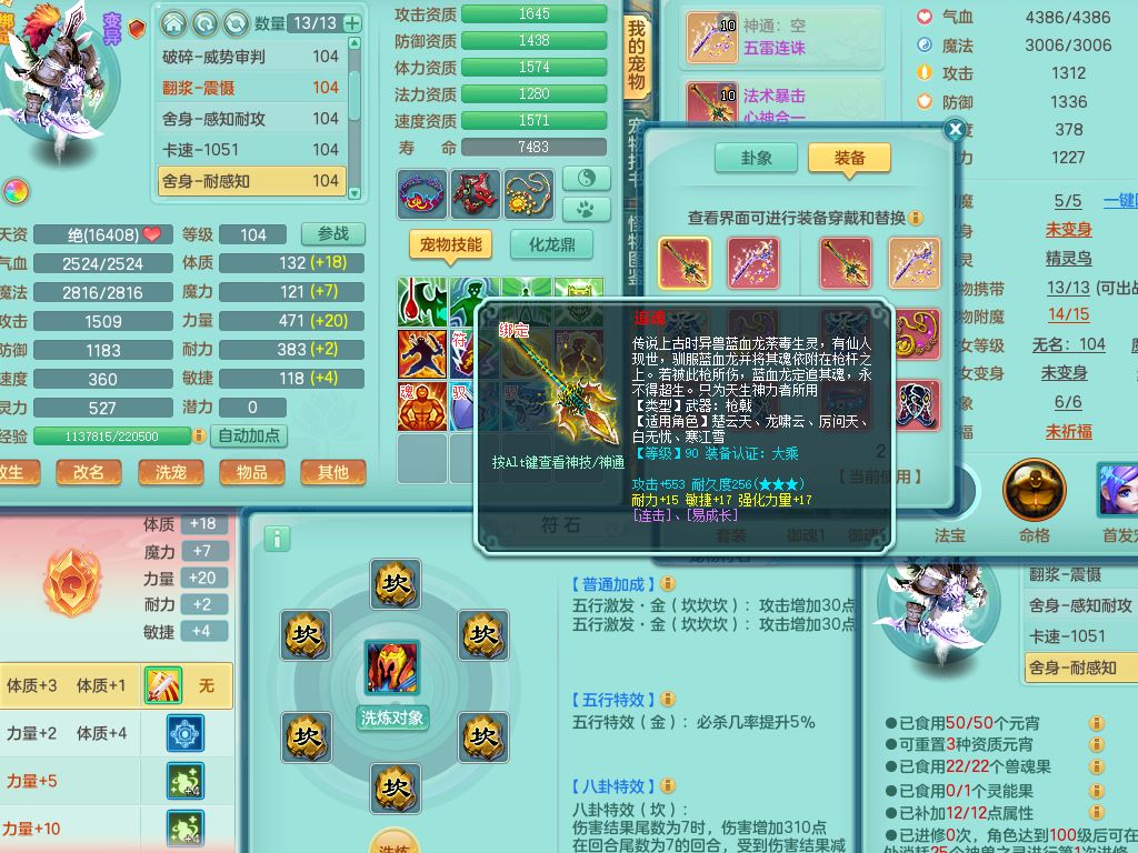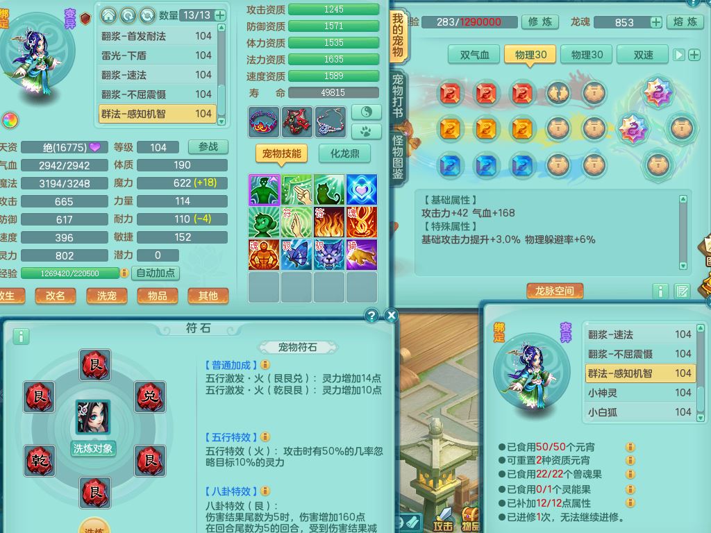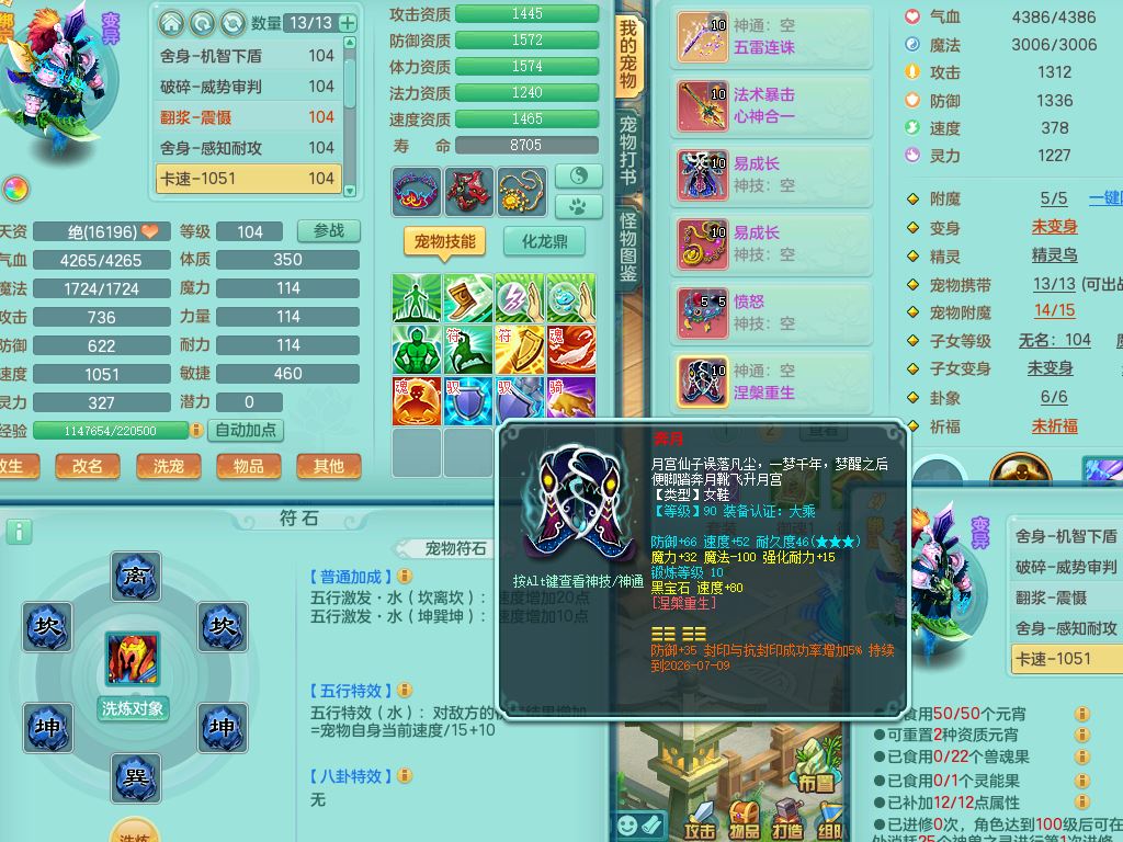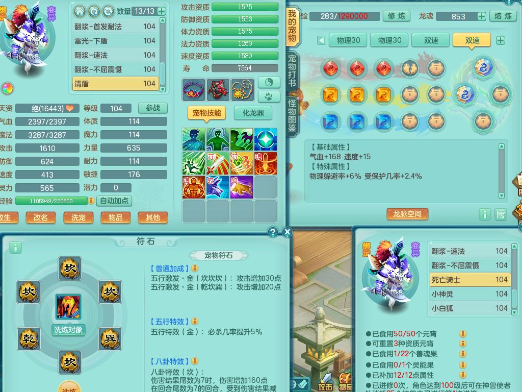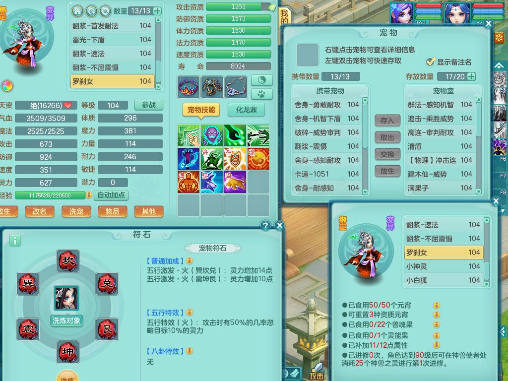 tx10324天下无双99女天宫【潜龙号】双系精灵,1内丹神,综合15只满果子9觉醒7个纯6字,五雷头,单加法爆心神武器,单加Y衣服,156单加Y项链,物理553Y双红武器,崩山衣服,单加Y破血腰带,2套鼎3.0+42+168,永久头饰精灵皮肤,宠排在榜,双人坐骑,带155奶粉地府,带飞行双人老虎坐骑