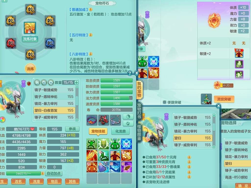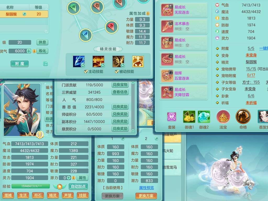 S22216少年游159男龙宫,精灵歌,2龙(1龙无内),2内胆神(1蛇1马),4只觉醒,1宠皮,2特殊(月光,锤子),4只六技能镜花灵,易成长烽火单加57头,法爆单加51武器,263易成长单加链子,指挥五雷腰带,易成长四海单加55鞋子,5.0基础鼎+70攻+280血,13个永久格子,1个纯六字,12只满果子,双人葫芦,带30天月卡。