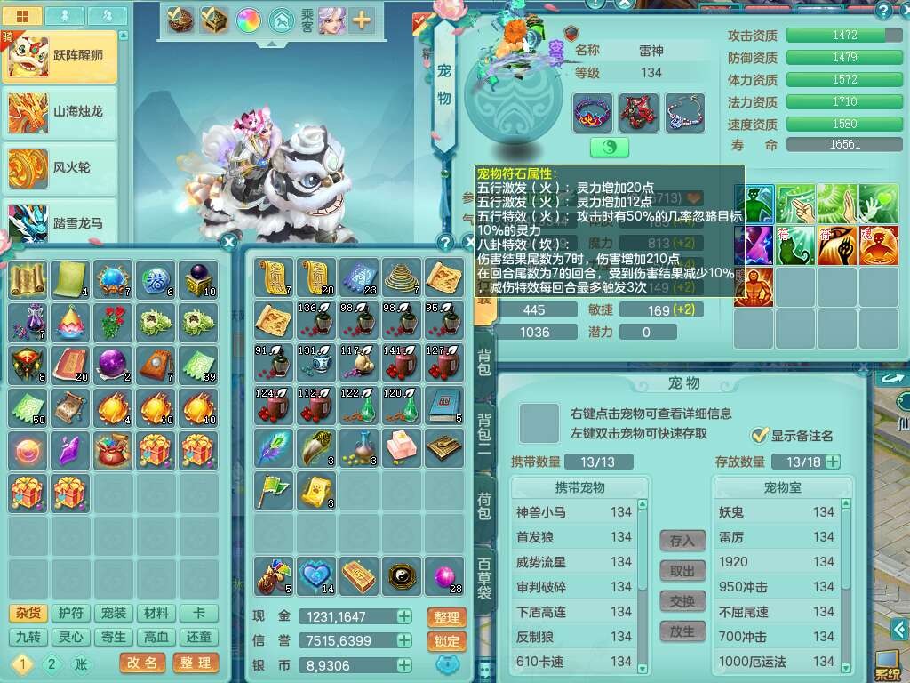 K22238风驰电掣129男魔王,精灵歌,1内胆神,2觉醒,6宠皮,易成长卸甲单加46头,法爆四海单加武器,易成长单加45衣服,209易成长单加42链子,易成长烽火单加44腰带,易成长五雷单加45鞋子,有法缭衣服,3.5基础鼎,9只满果子,双人坐骑,有30天月卡。