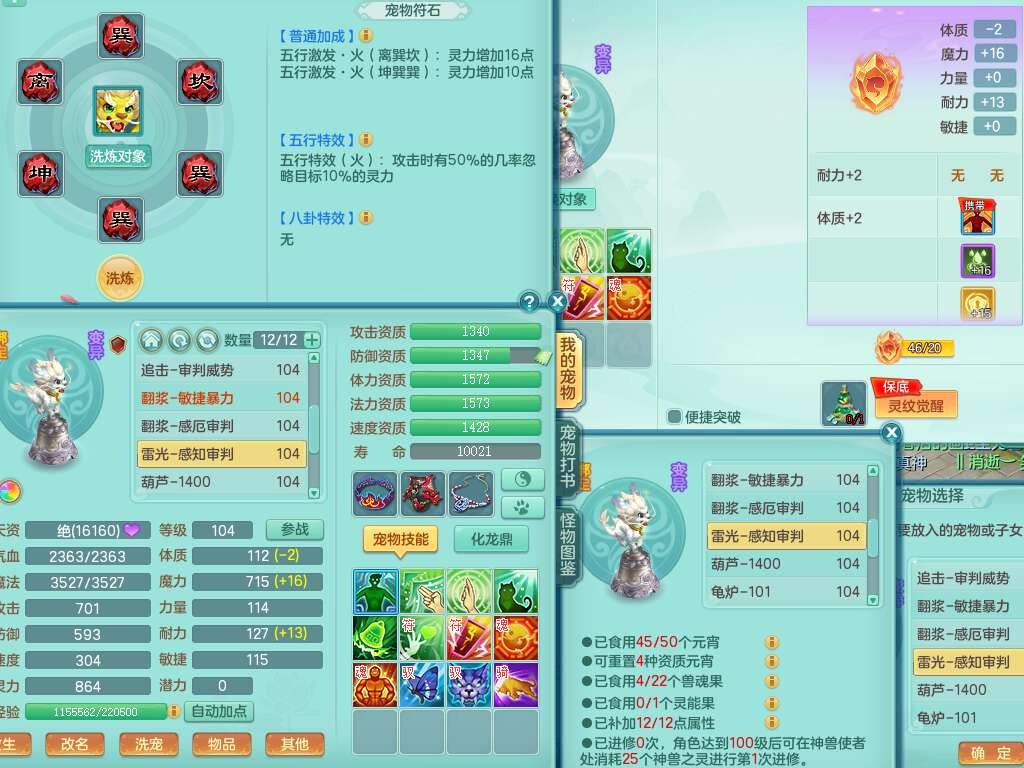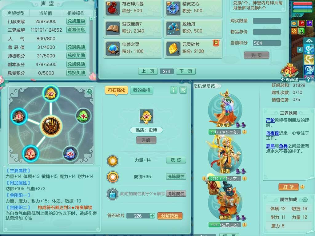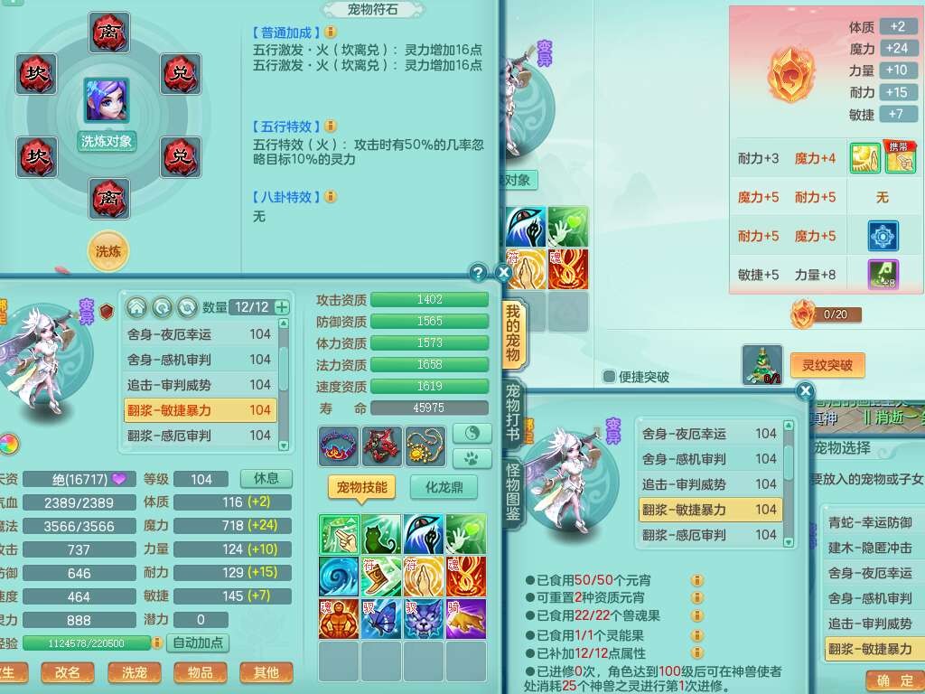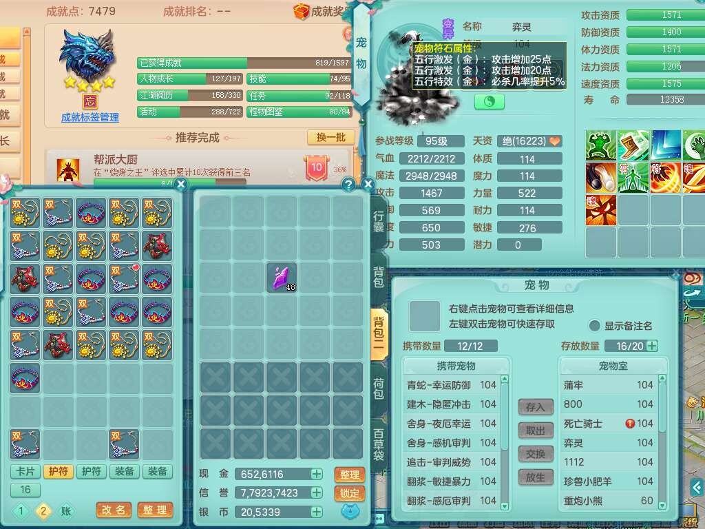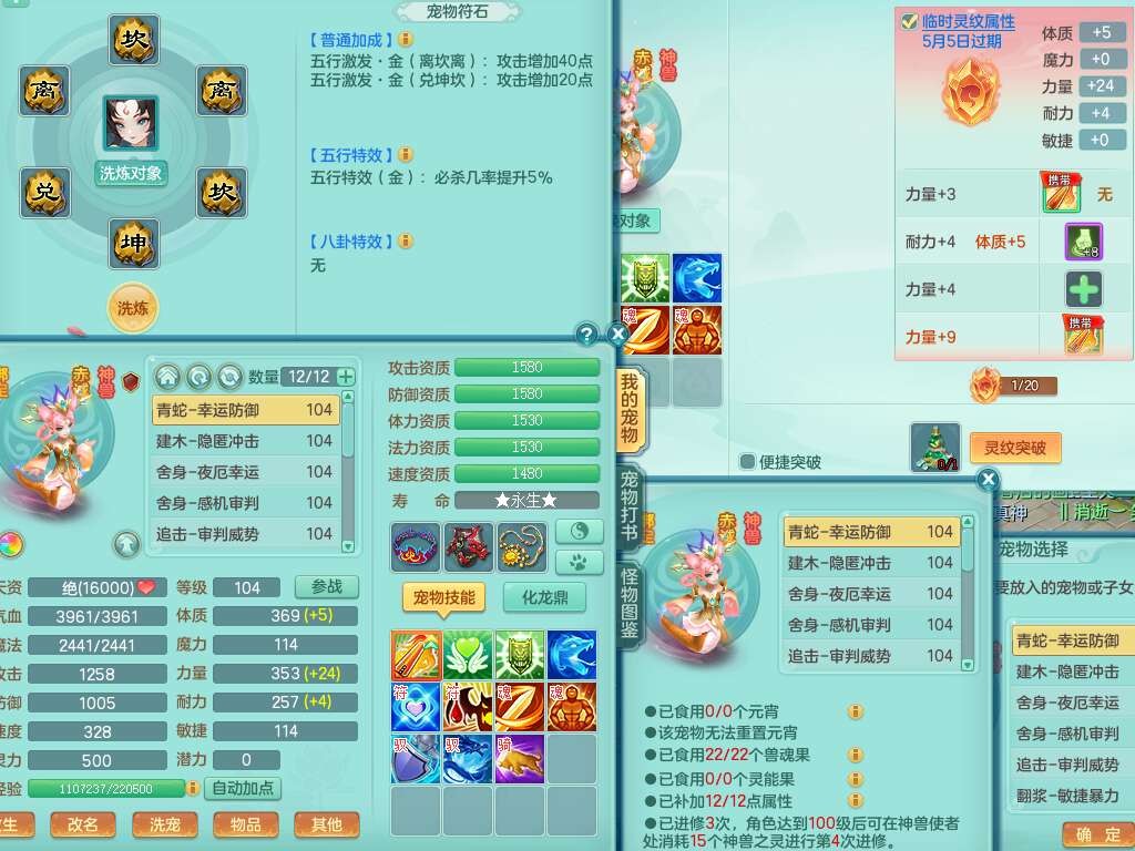 p22229笑傲江湖99男龙宫,1神兽青蛇(背包48神兽内丹碎片),2只觉醒,星辰之拥,五雷单加33头,556法爆武器,法缭烽火衣服,160易成长魔音单加30链子,愤怒单加33腰带,三红易成长法缭激励鞋子,第2套有物理装备,537易成长破血单加35武器,崩山单加34衣服,神佑链子,迅捷单加32鞋子,9只满果子,月卡还有109天。➕99男普陀,1神兽青蛇,愤怒六特,带1196金币,月卡还有19天。➕99女魔王,1神兽,崩山单加34头,易成长烽火单加31腰带,带1302金币,月卡还有19天。