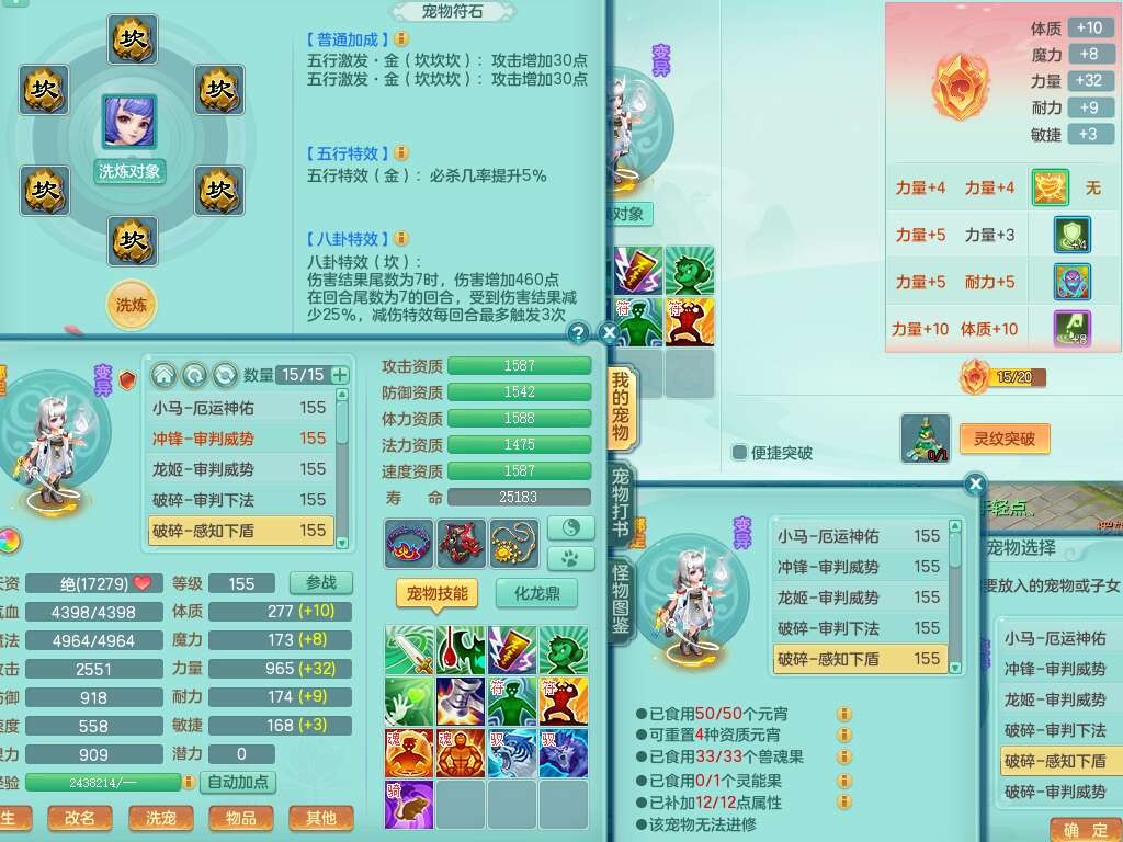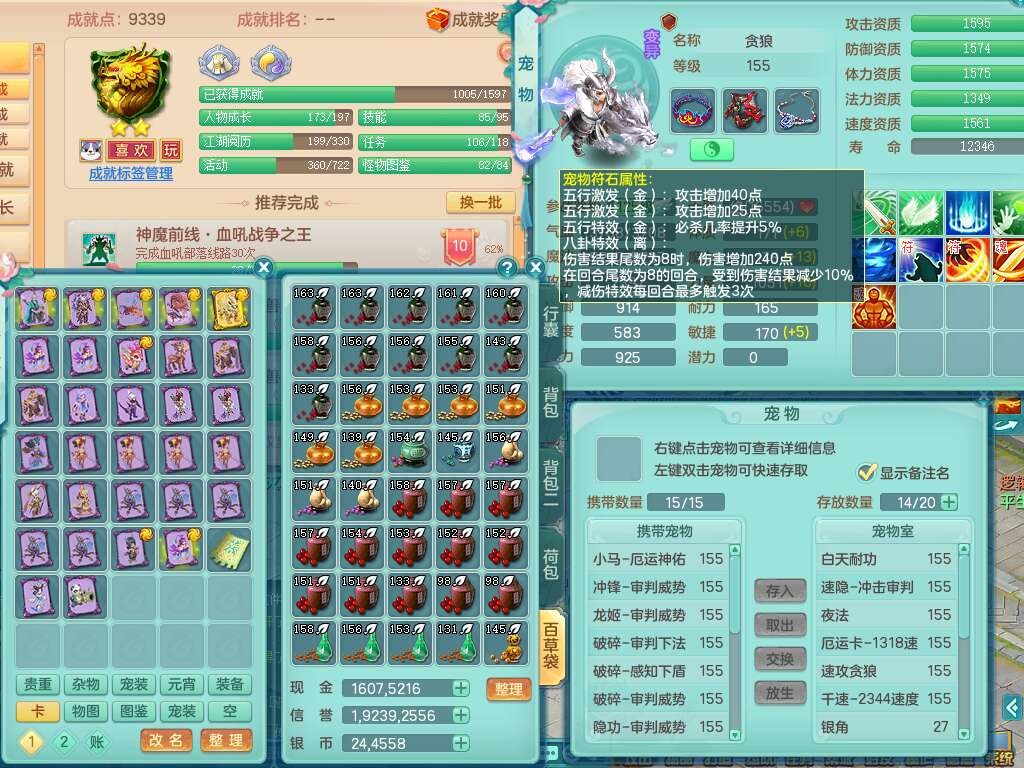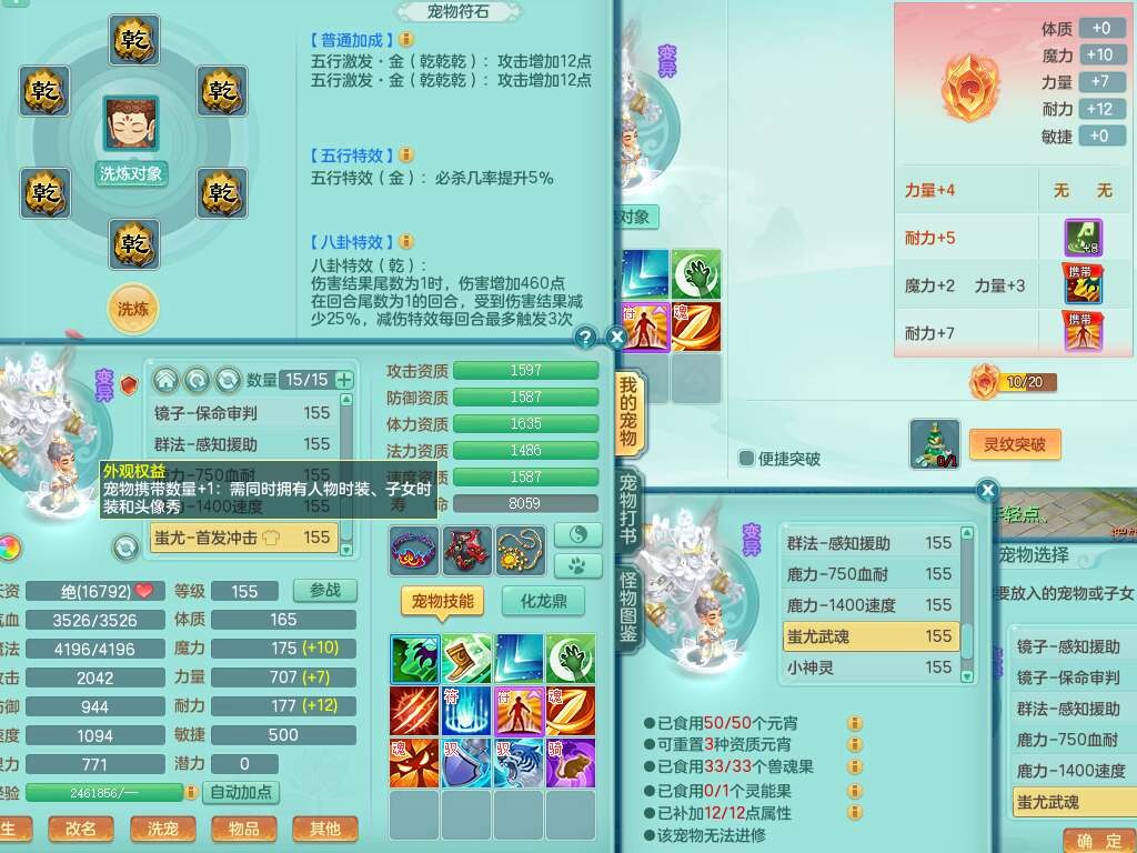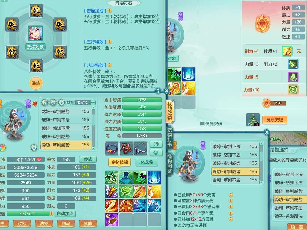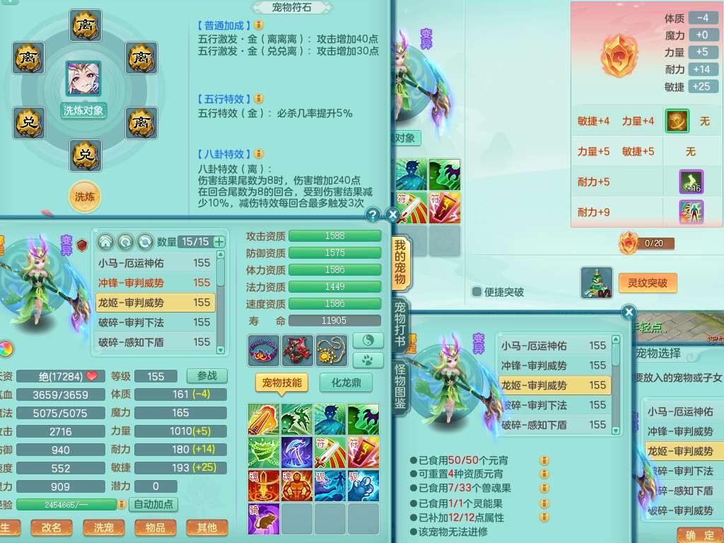 a22231任剑逍遥159男万兽,精灵歌,1内胆神,8只觉醒(潜龙条件宠物满足,符石差2个主要属性,化龙鼎差2个厚土龙纹和5.5鼎),6宠皮,4特殊(勇猛,锤子2,雷厉),1只6技能龙姬,3只6技能镜花灵,易成长激励单加56头,906狂暴单加武器,坚毅崩山链子,易成长破血单加55腰带,迅捷单加鞋子,5.0基础鼎+70攻,12个纯六字,19只满果子,宠排在榜,双人老虎,福禄团团坐骑,月卡还有42天。