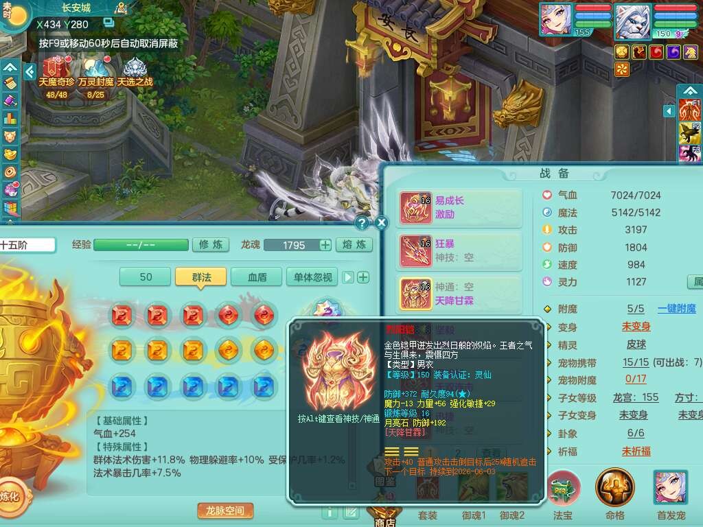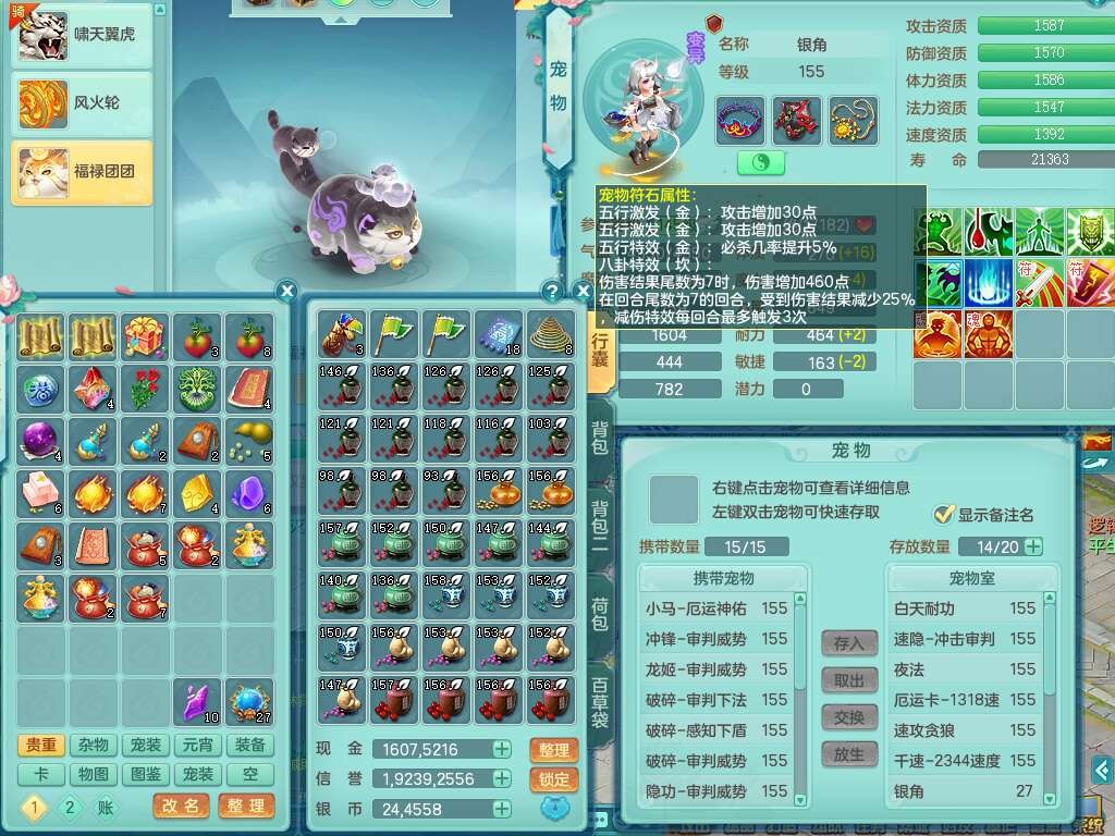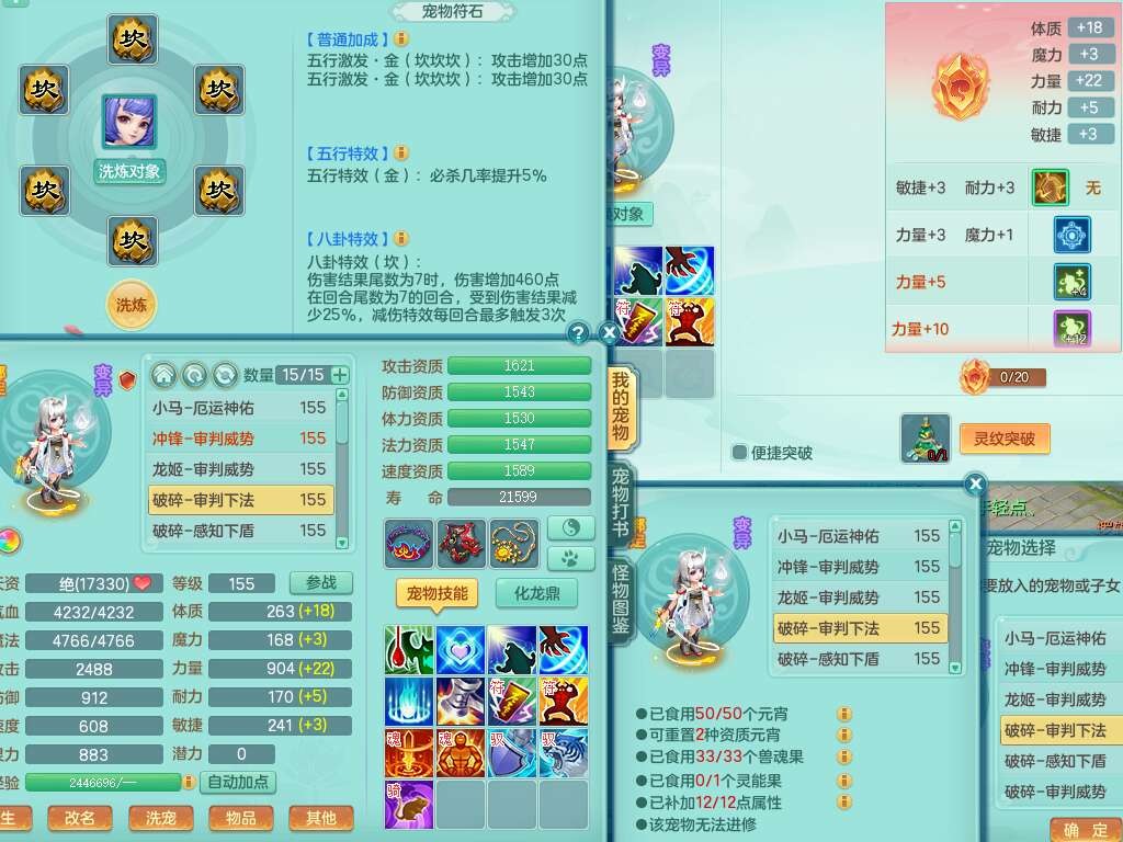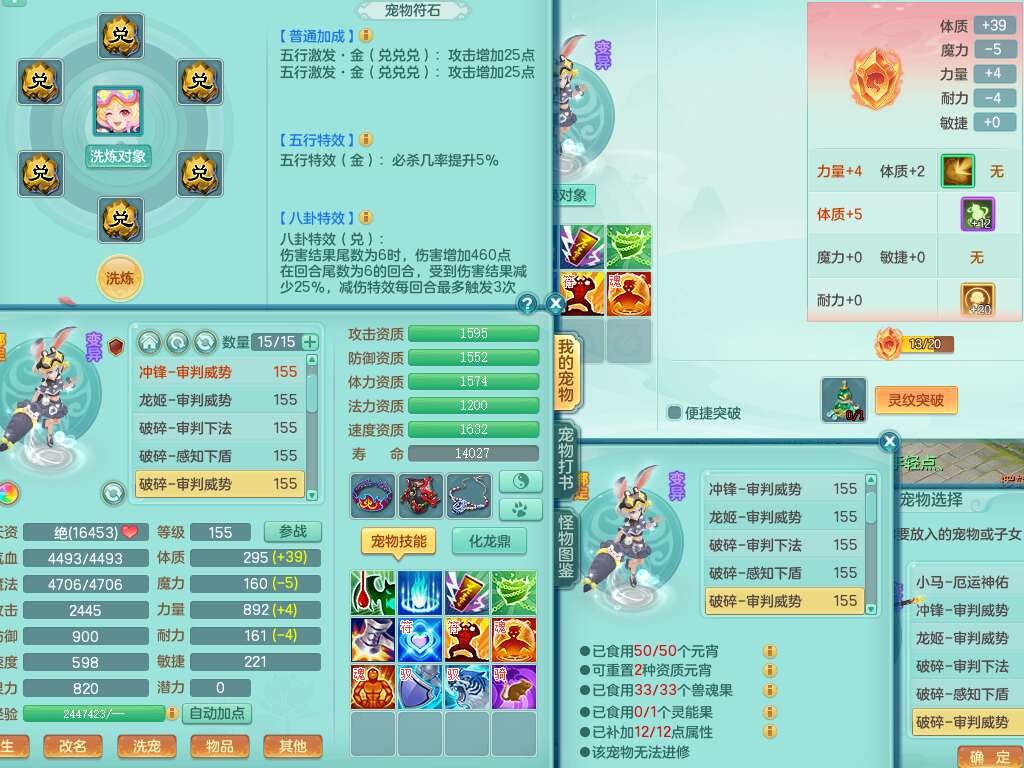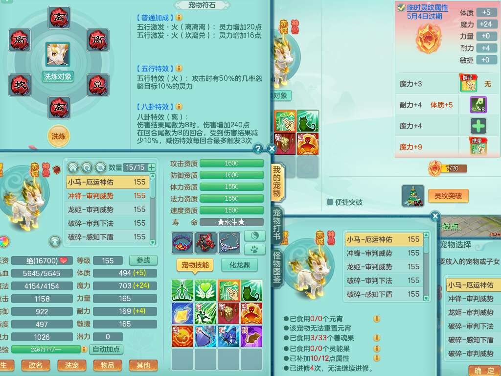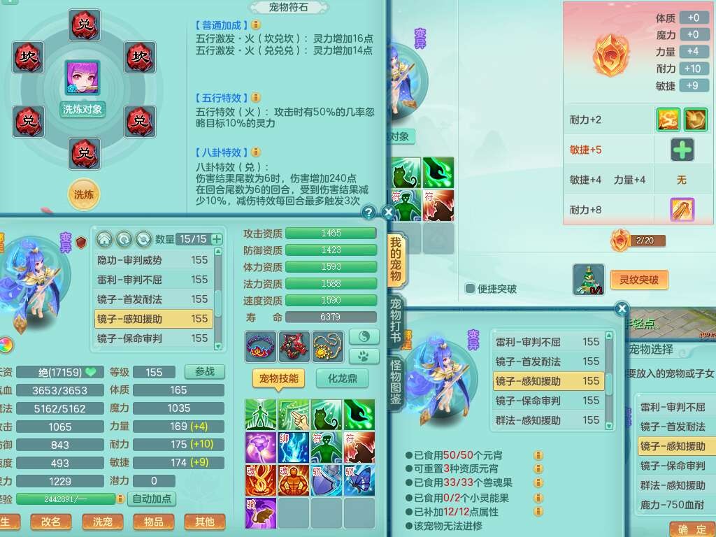 a22231任剑逍遥159男万兽,精灵歌,1内胆神,8只觉醒(潜龙条件宠物满足,符石差2个主要属性,化龙鼎差2个厚土龙纹和5.5鼎),6宠皮,4特殊(勇猛,锤子2,雷厉),1只6技能龙姬,3只6技能镜花灵,易成长激励单加56头,906狂暴单加武器,坚毅崩山链子,易成长破血单加55腰带,迅捷单加鞋子,5.0基础鼎+70攻,12个纯六字,19只满果子,宠排在榜,双人老虎,福禄团团坐骑,月卡还有42天。