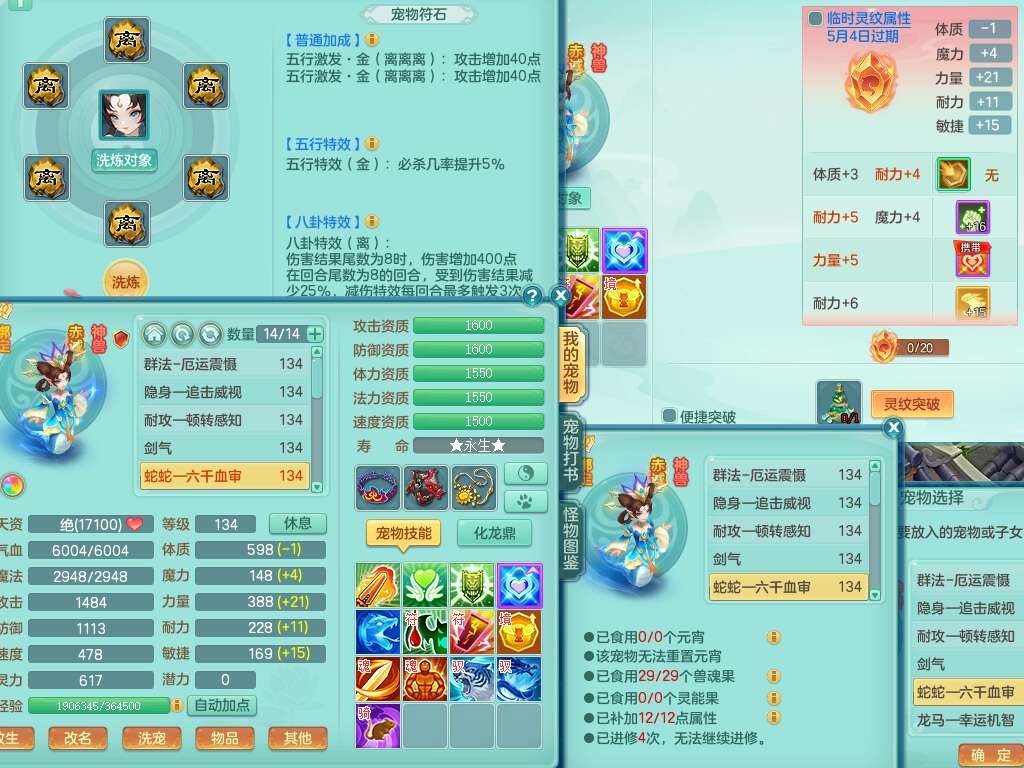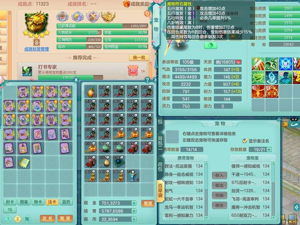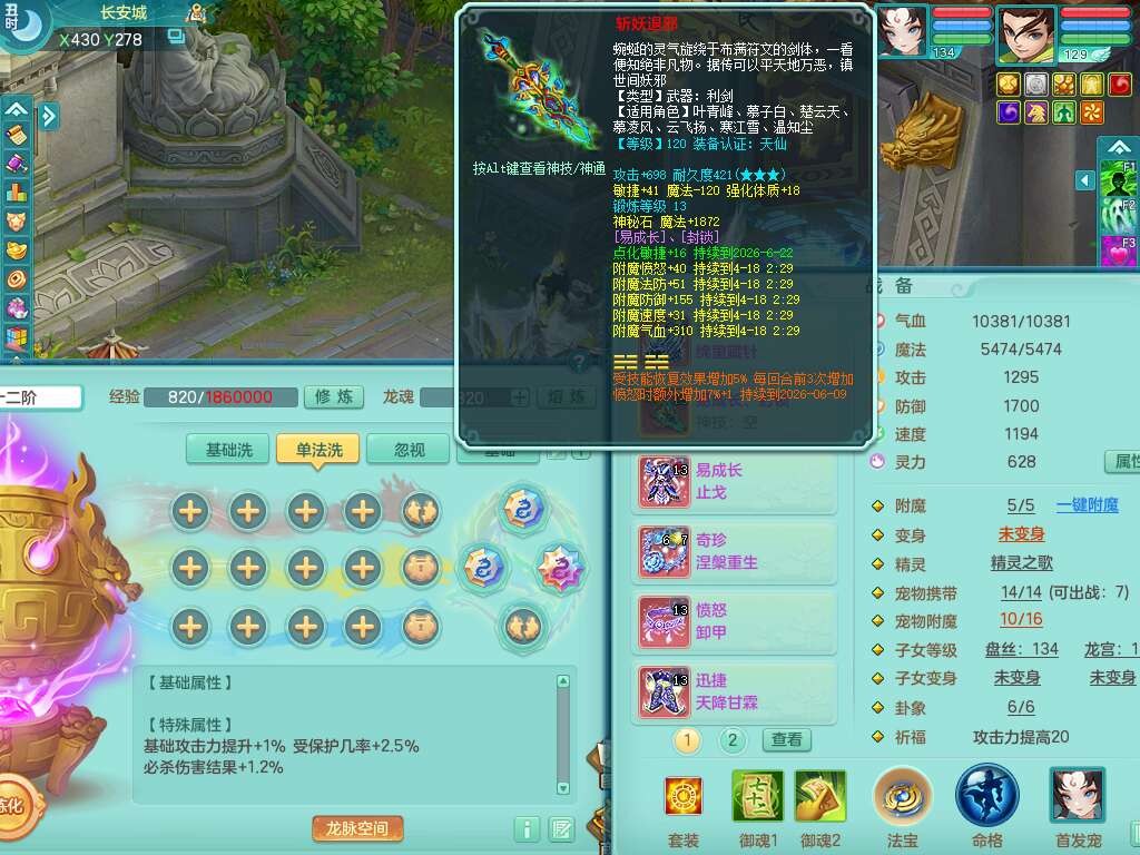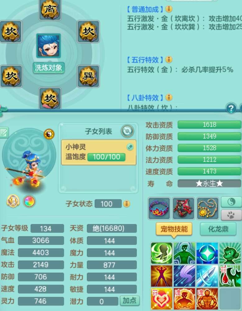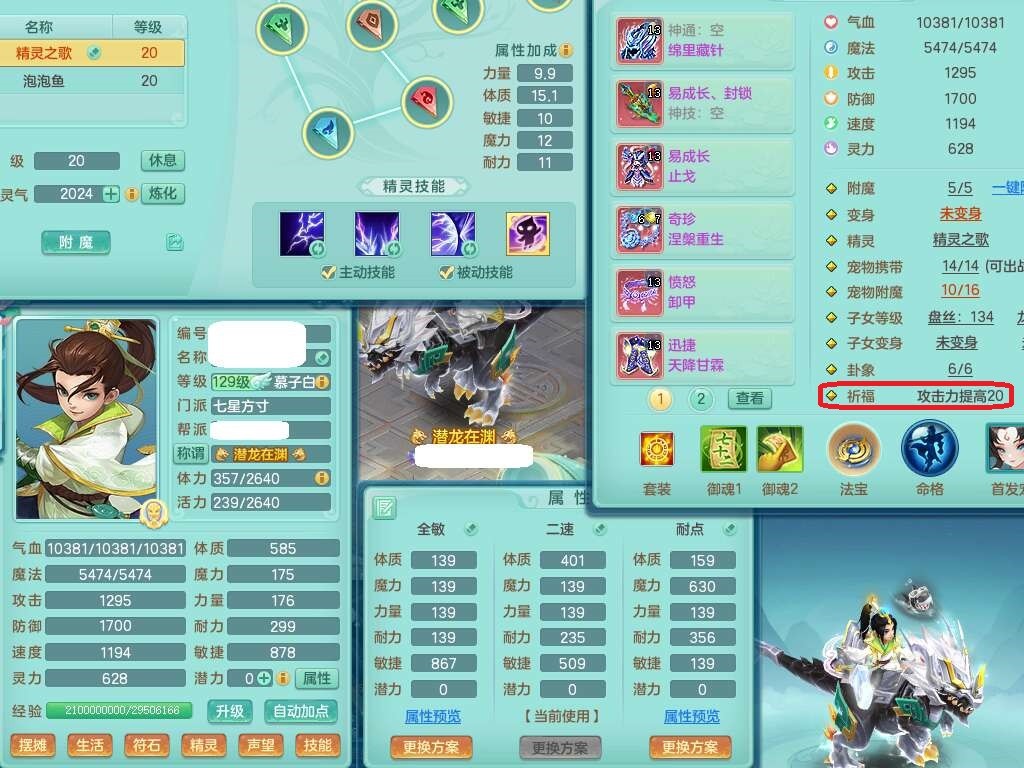 A22225九天揽月129男方寸,精灵舞,4龙2内胆神,5破镜,【16只觉醒,已潜龙】,8位靓号不含4,1宠皮,易成长封锁单加41武器,迅捷四海单加44鞋子,愤怒卸甲单加40腰带,星辰之拥,愤怒魔音单加45腰带,封系辅助法系潜龙,法系209易成长单加40项链,辅助回春迅捷12红,4.0基础鼎,13个纯六字,1个五字,20只满果子,宠排在榜,仓库1神兽+58神兽内胆碎片,4个孩子,4只双人坐骑,暴龙洪荒+西瓜冰。有安全证书,介意勿扰。