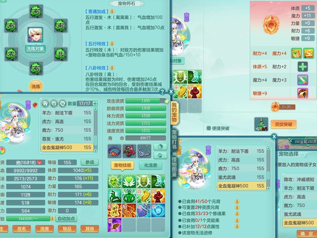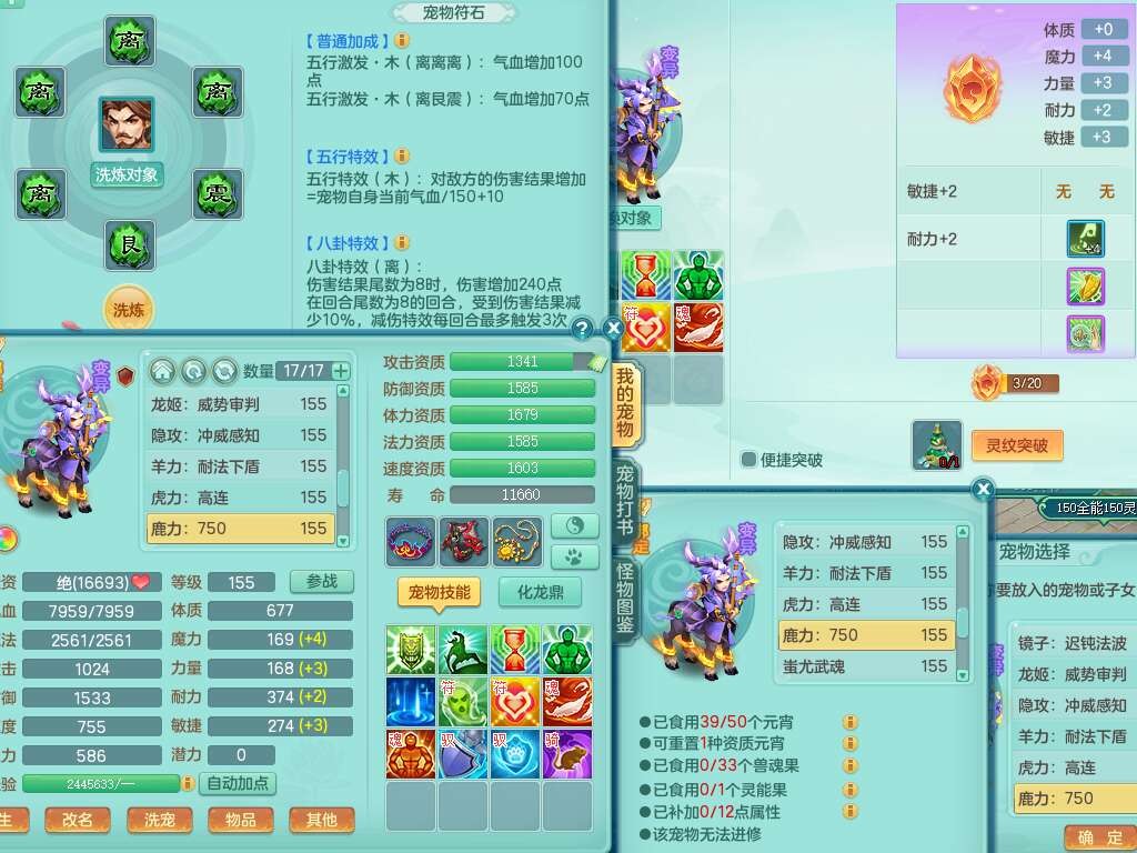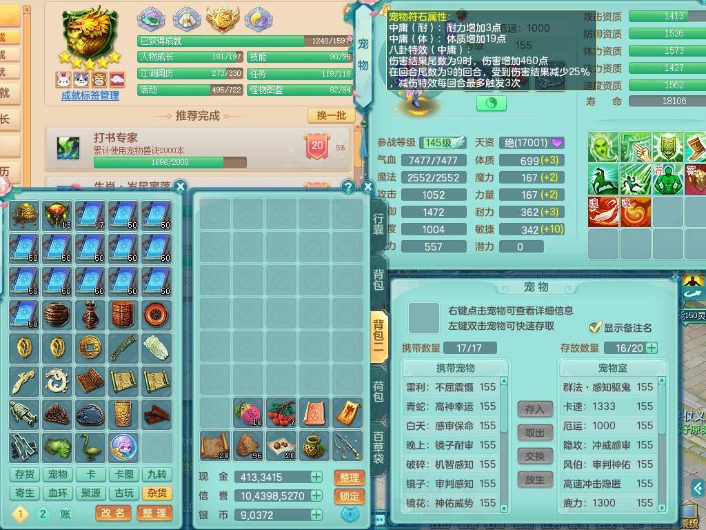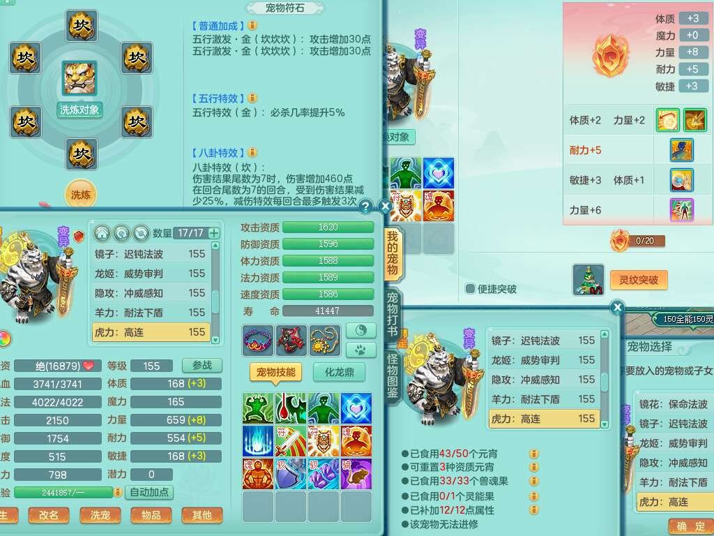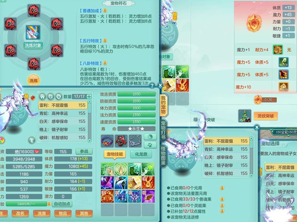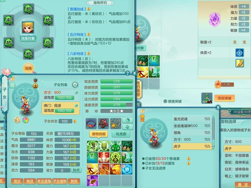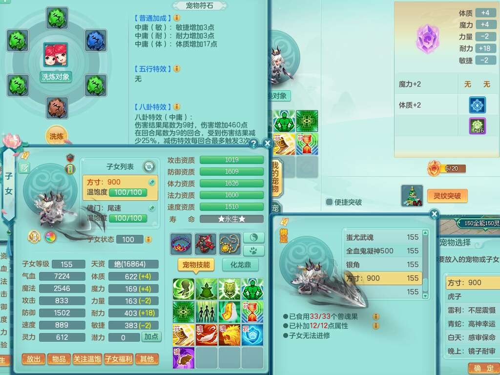 K22220战无不胜159男普陀,精灵舞,1龙1内胆神,【9只觉醒,已潜龙】,1宠皮,5只六技能镜花灵,1只六技能龙姬,2特殊(影袭,虎虎),愤怒六特,有物理装备,913狂暴卸甲单加武器,神佑单加项链,崩山衣服,5.5基础鼎+70攻+280血,差759积分换永久15格子,7个纯六字,22只满果子,背包32神兽内丹碎片,宠排在榜,成就在榜,暴龙泰坦+西瓜冰武器皮肤,带68天月卡。