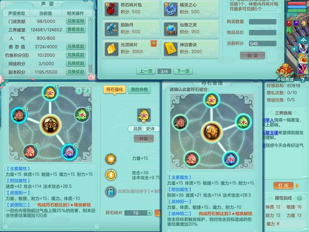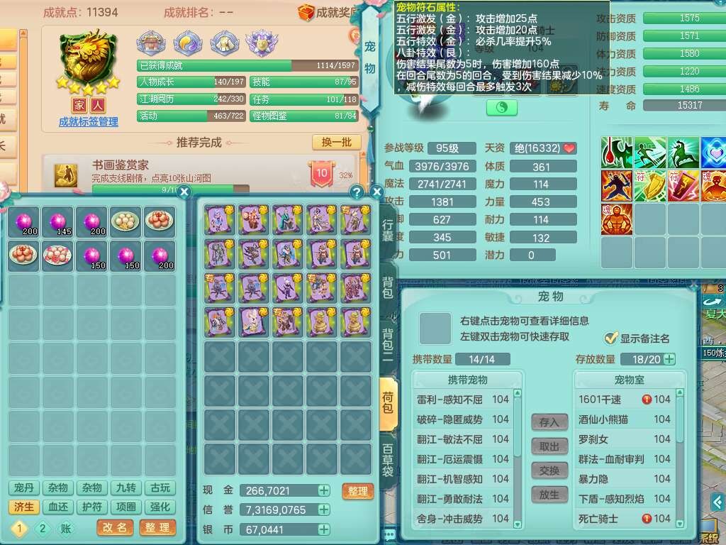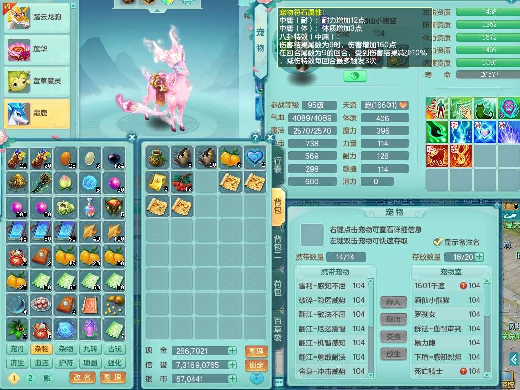 J22212彩云追月99男力天魔,1龙1内胆神,4位靓号,6只觉醒(潜龙条件化龙鼎满足,符石差1个附加属性),1宠皮,崩山单加33头,551易成长单加武器,三红神佑易成长心神合一单加链子,破甲单加鞋子,有法系装备,531法暴单加34武器,法缭单加30衣服,五雷幸运4单加33鞋子,有541狂暴单加30武器,2.5基础鼎,19只满果子,仓库56神兽内丹碎片,55仙兽蛋,宠排在榜,双人白马,月卡还有38天。