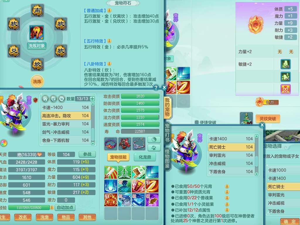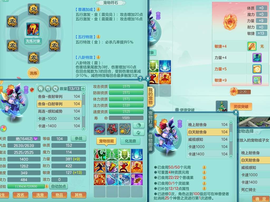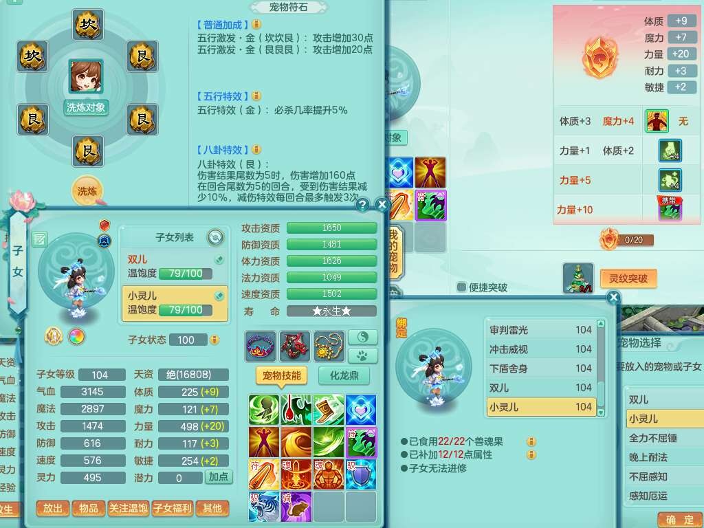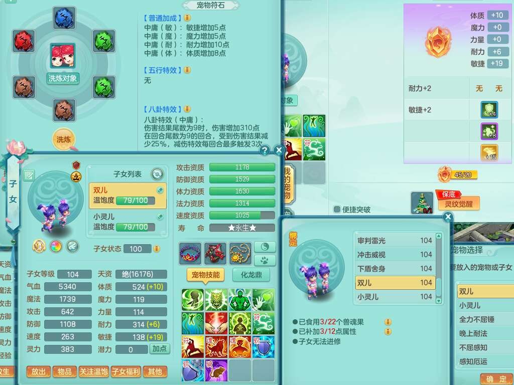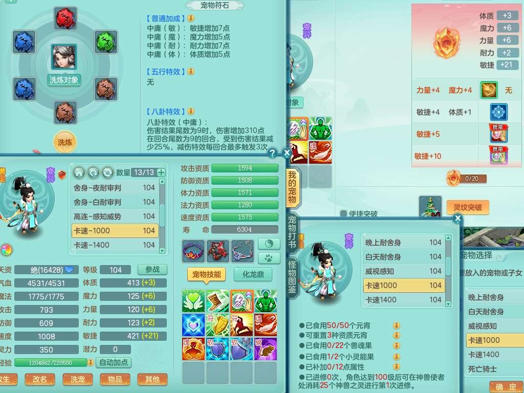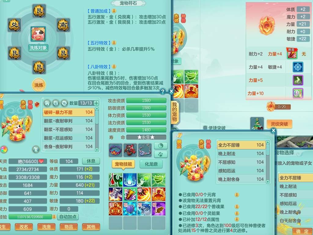 K22207彩云追月99女万兽,1内胆神,10只觉醒,8位靓号不含4,545狂暴破血单加武器,544易成长单加武器,崩山单加衣服,神佑单加链子,易成长单加33腰带,迅捷止戈单加31鞋子,迅捷玉清单加鞋子,2.5基础鼎+42攻+168血,2个纯六字,2个五字,11只满果子,宠排在榜,双人坐骑。