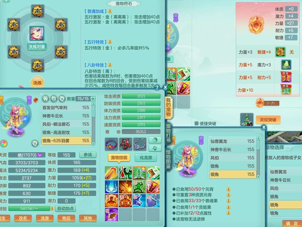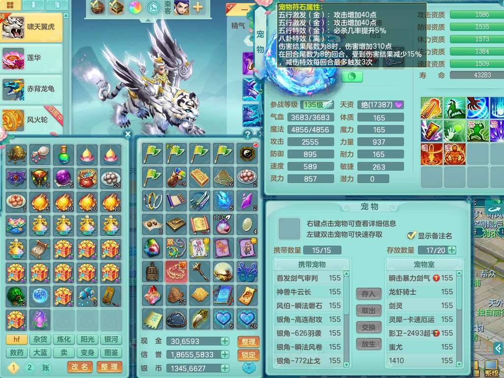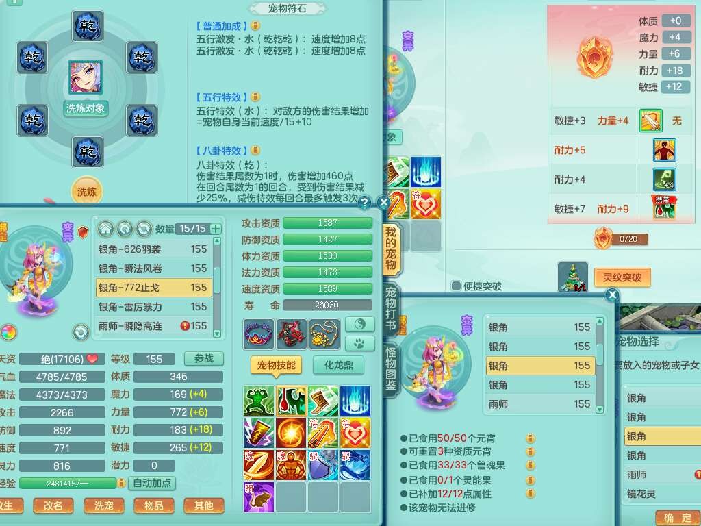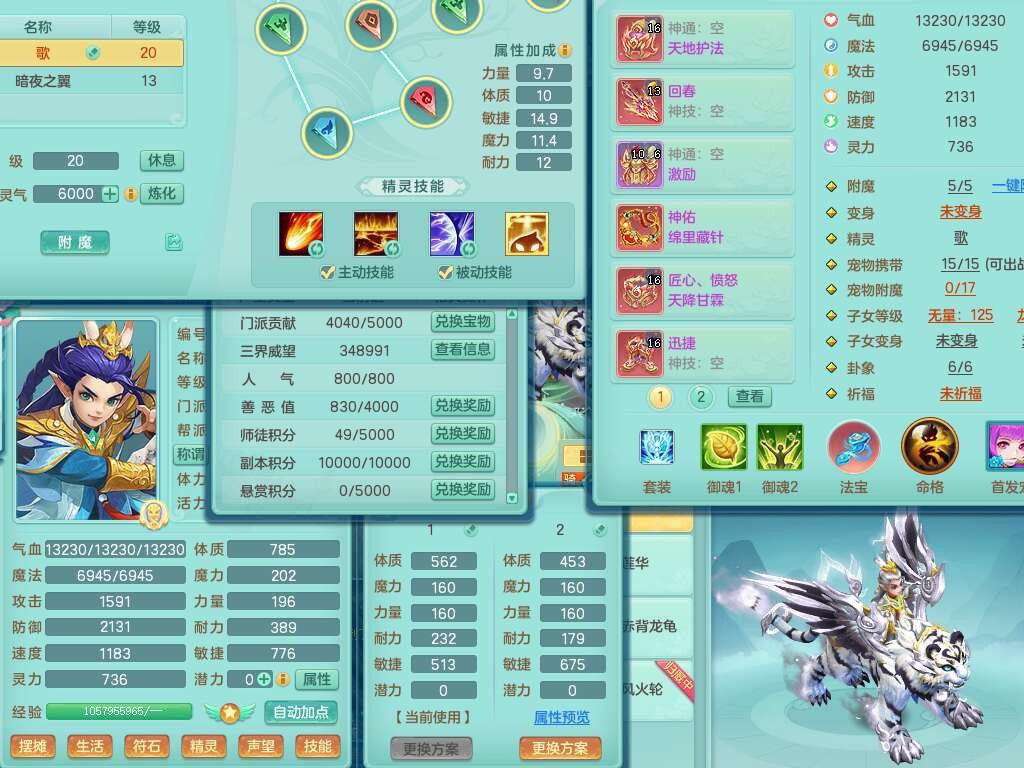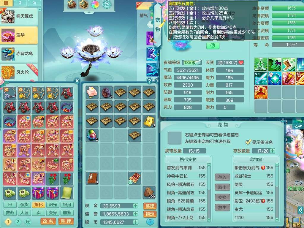 J22206七窍玲珑159男普陀,精灵歌,1龙1内胆神,8只觉醒,7宠皮,7特殊(羽袭,风卷,止戈,雷厉,烈焰,藕断,夺命),2只六技能镜花灵,1只六技能龙姬,三红匠心愤怒四海腰带,回春武器,迅捷单加56鞋子,迅捷驭兽决单加53鞋子,有套法系,法爆单加武器,易成长五雷单加57头,易成长净心术单加51衣服,271易成长项链,震怒烽火单加57腰带,有法缭鞋子,5.5基础鼎+70攻+280血,13个永久格子,4个纯六字,6个五字,综合13只满果子,双人坐骑,带1300万神武币。