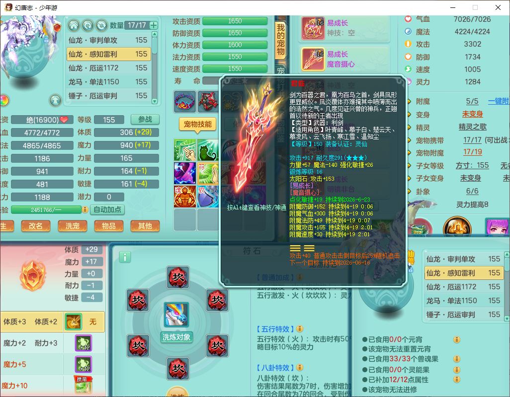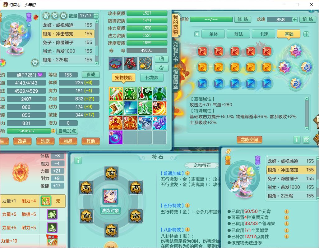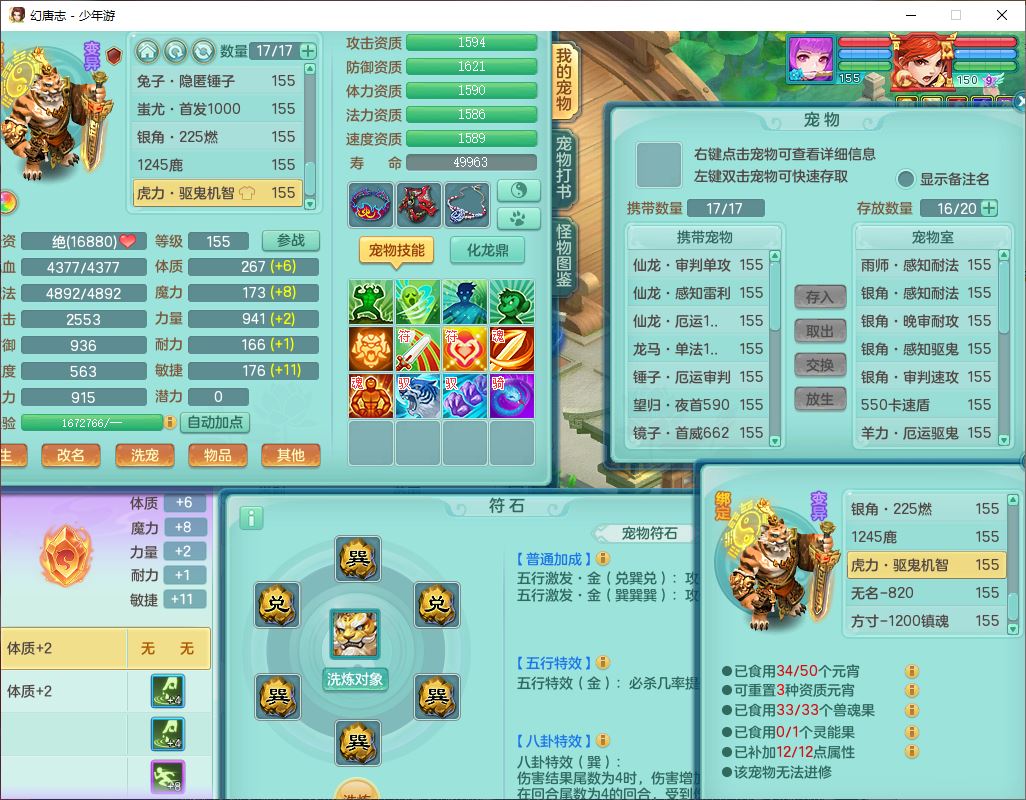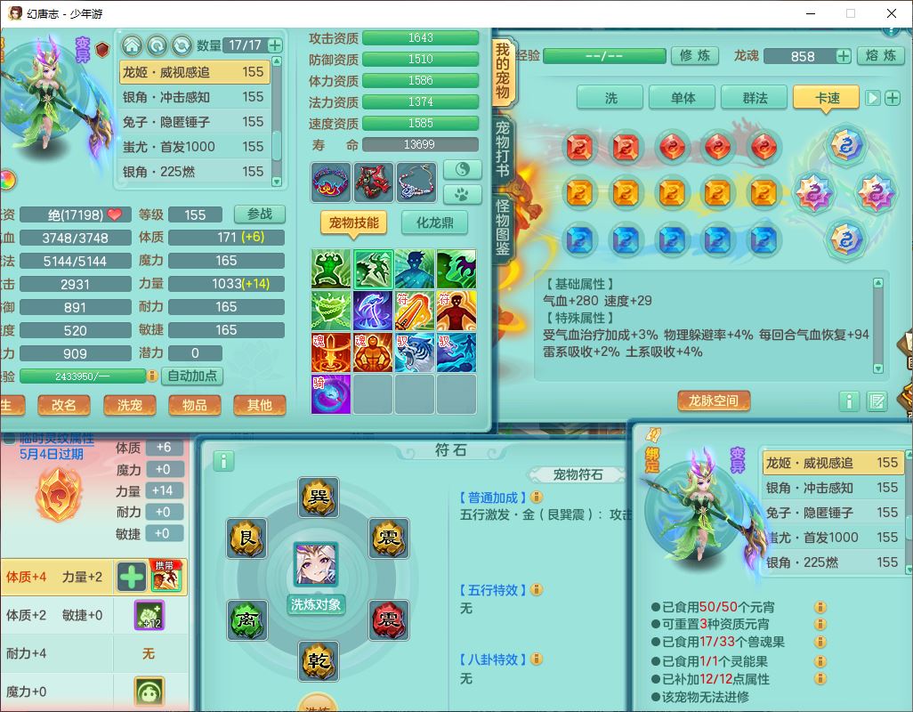 sn10348少年游159男天策【暴龙猎手+西瓜冰+准潜龙号,差4条符石2条附加1条混沌】精灵歌,8位靓号,4龙(1无内),2内(1龙马)1望归4镜花1龙姬1金炉1特殊兽决(以战),13觉醒10宠皮(2幻灵果)11六字1五字10四字(1洗练珠)25只满果子,10红全单加装备,Y魔音武器,神佑群体激励项链,愤怒崩山腰带,Y明镜鞋子,鼎5.0+70+280,2套符石,永久外观、精灵皮肤,宠排、经验、修炼在榜,雷影豹坐骑