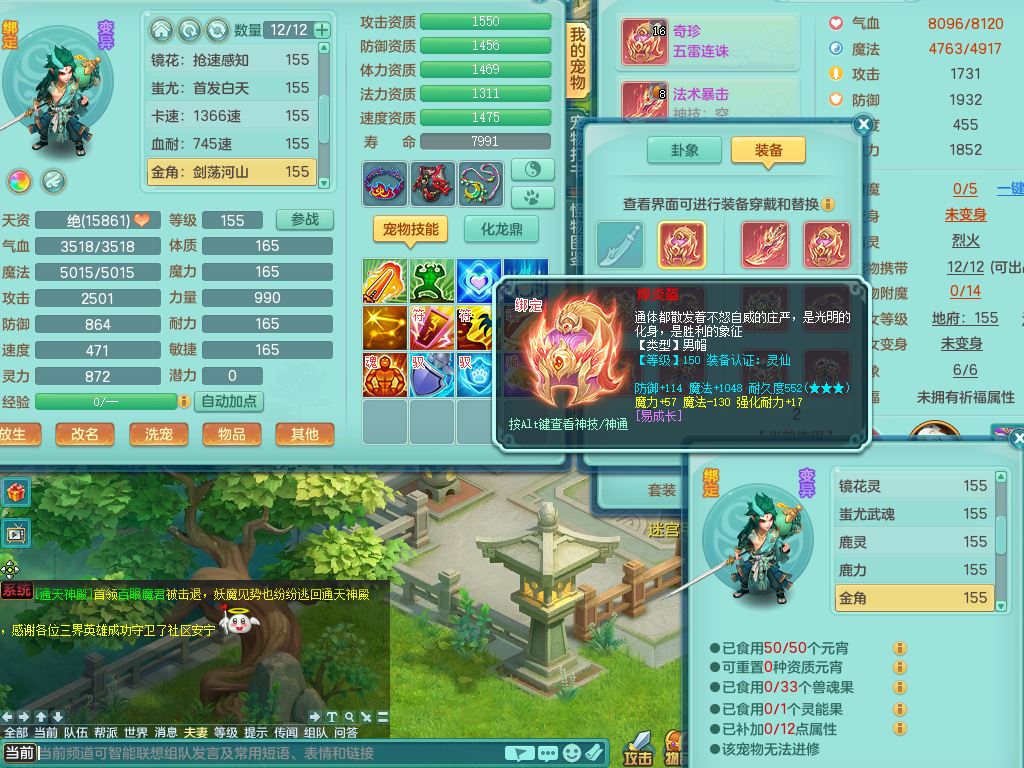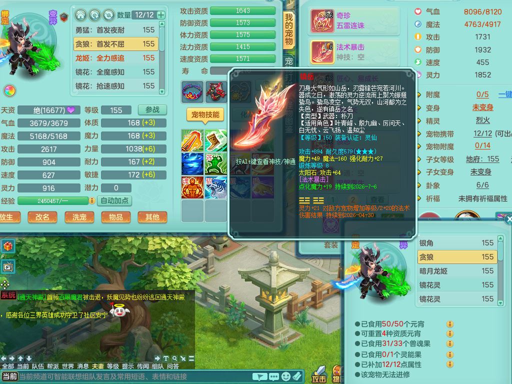 tx10346天下无双159男魔王,满级共鸣,3特殊(冲锋/兽决月光/夺命)2镜花灵1龙姬,综合5只满果子2觉醒,8红,单加五雷头,法爆武器,匠心Y衣服,271Y项链,单加愤怒烽火腰带,鼎4.5+70,50天月卡