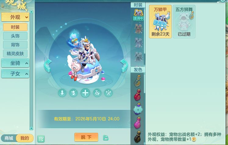 tx10351天下无双129男普陀【潜龙号】精灵悟,1内丹神1幻灵果,12只满果子11觉醒8个纯6字,10红愤怒6特,Y四海头,Y流云项链,愤怒水清腰带,匠心玉清鞋,鼎4.0+56+224,172天月卡,永久外观,76仙兽灵,双人坐骑,带129女方寸【神驹马上发财+火焰之力】精灵舞,2内(1龙马)4皮,综合15只满果子8觉醒,9红星辰之拥,封锁群体守备武器,愤怒野兽腰带,迅捷止戈鞋,鼎4.0+56+224,82天月卡,永久头饰精灵皮肤,24仙兽灵,2坐骑