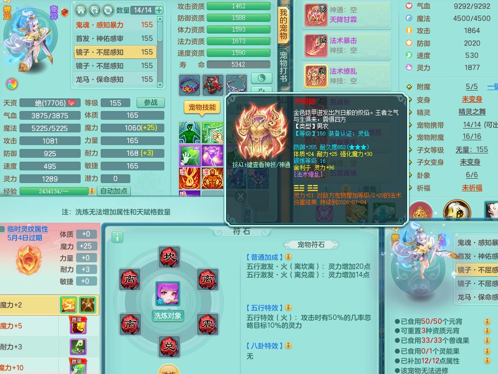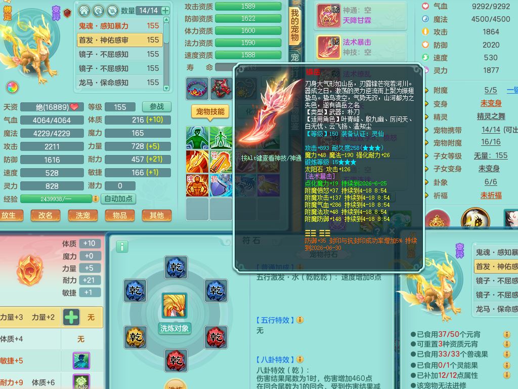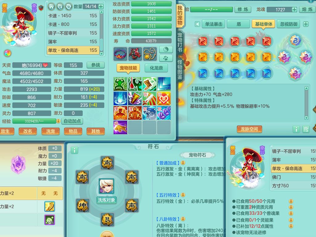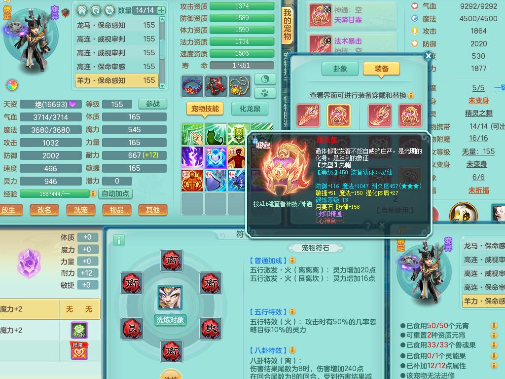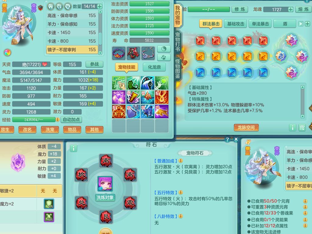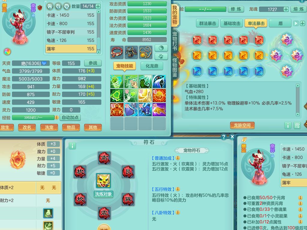 tx10349天下无双159男龙宫【神驹心想事成+火焰之力】精灵舞,2套星穹,1龙(无内)1内丹龙马1皮,3镜花灵1龙姬,综合18只满果子6觉醒6个4字2个5字,8红单加法爆武器,法缭衣服,275单加Y项链,幸运愤怒慈航腰带,五雷鞋,辅助10红愤怒6特,封印心神头,Y流云鞋,鼎5.5+70+280,42天月卡,永久外观精灵皮肤,37内丹碎片,2坐骑(1只飞行双人)