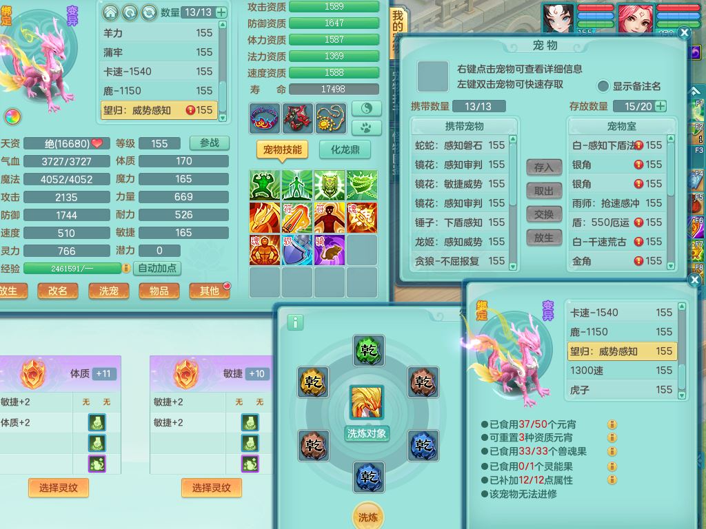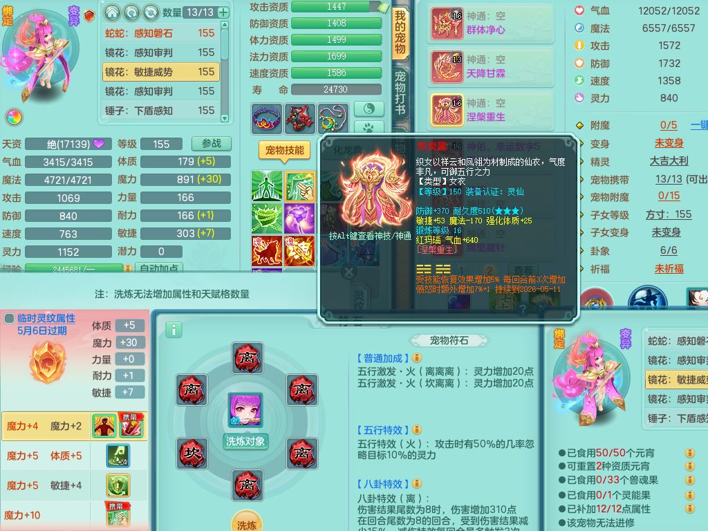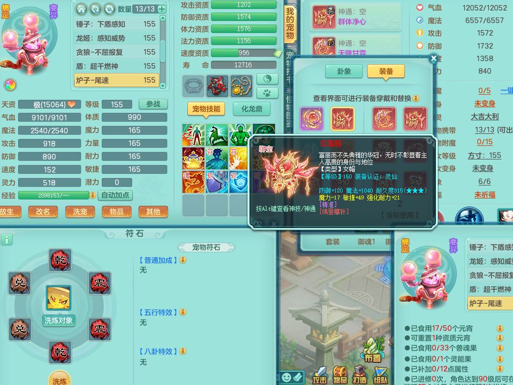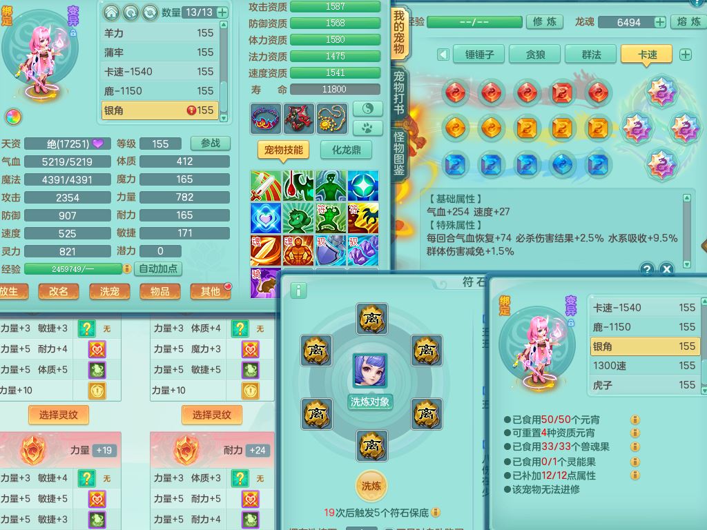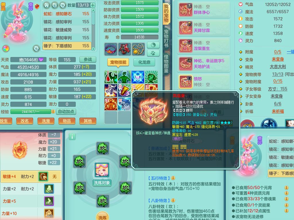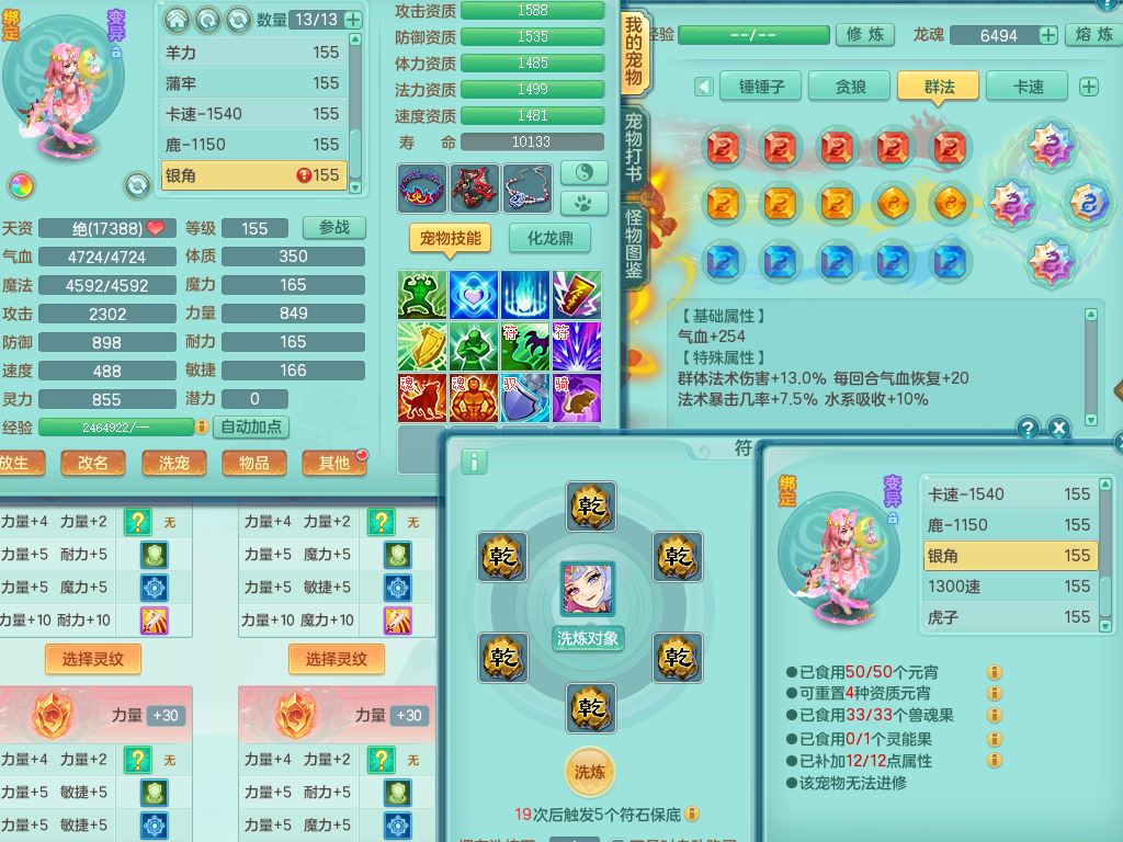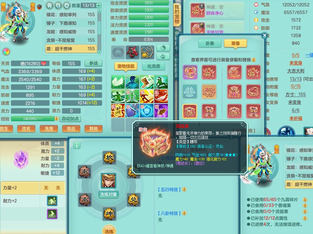 tx10353天下无双159女方寸【神驹马上发财】精灵舞,1内丹青蛇8皮1特殊荒古兽决,4镜花灵(1胚子)2龙姬(1胚子)15只满果子13觉醒13个纯6字,全身单加愤怒5特,神佑幸运罗汉项链,鼎5.5+70,144天月卡,永久外观精灵皮肤,24850金币,42内丹碎片,宠排在榜,3坐骑(1只飞行双人)