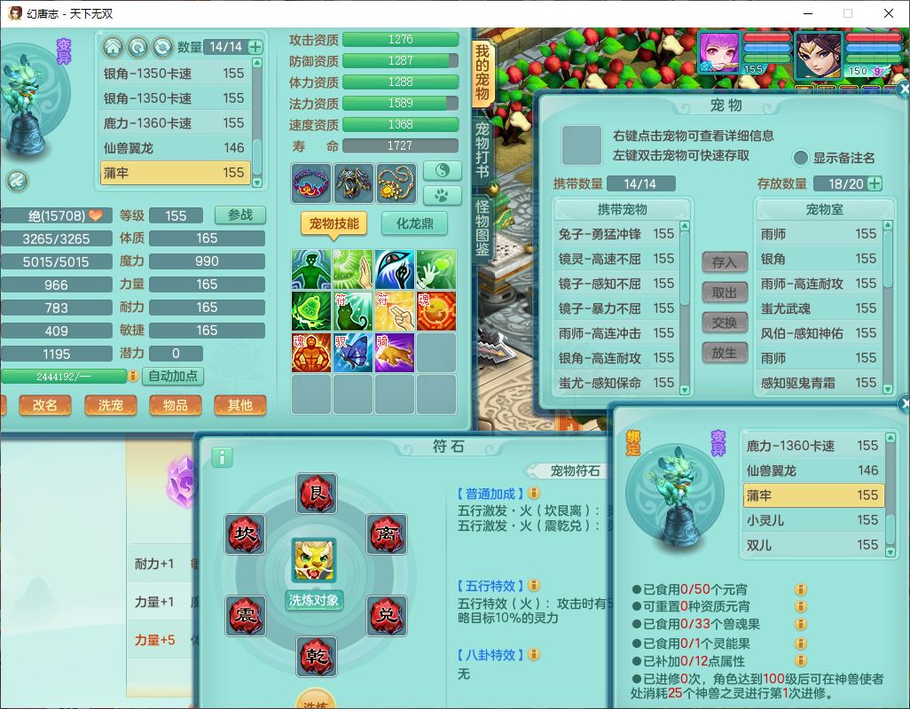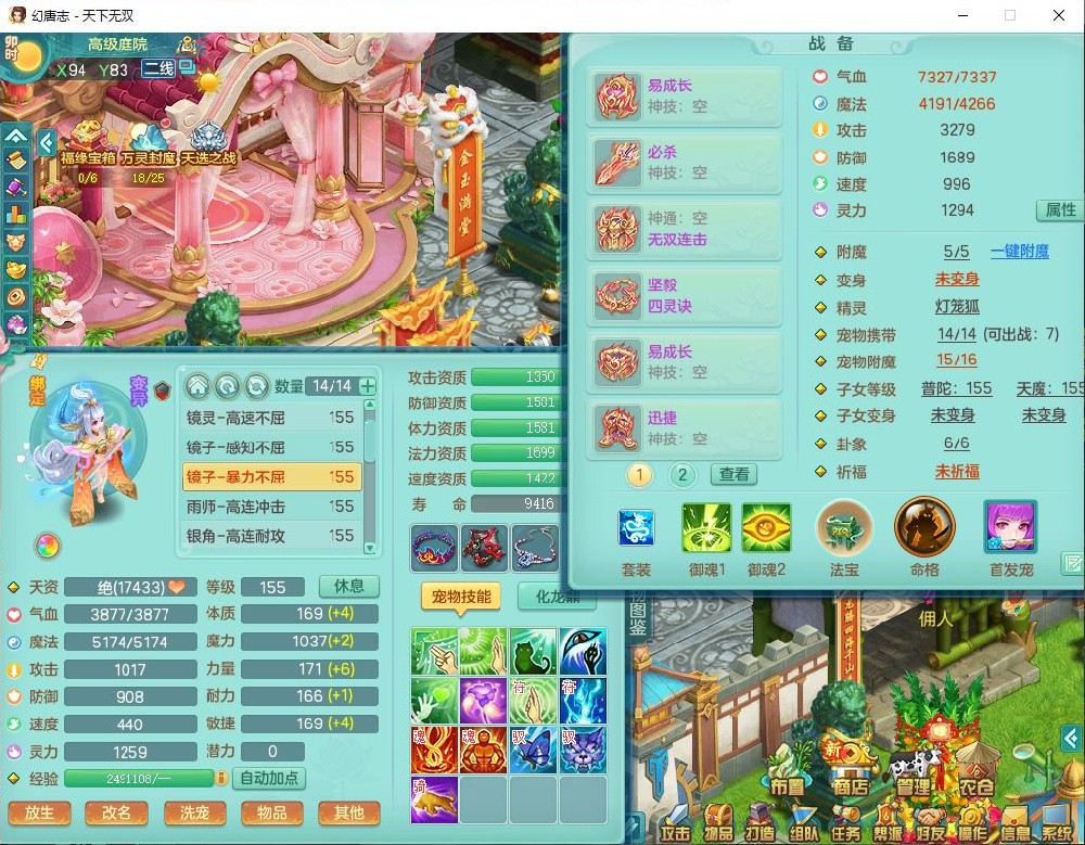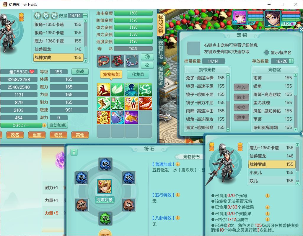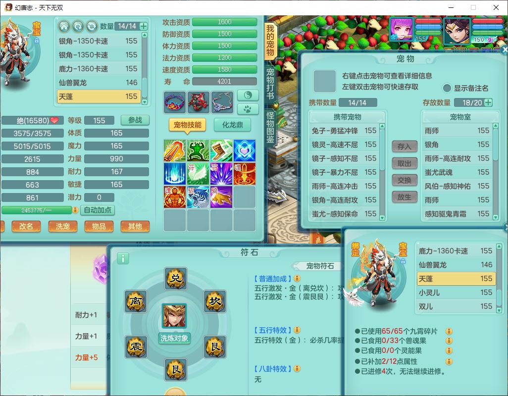 tx10357天下无双159男天宫【马上发财+火焰之力+准潜龙号,差1只宝宝4条条主符石1条附加2颗厚土】精灵歌,1龙(无内)1内1龙马(无内)1特殊(雷光兽决)4镜花灵1望归1龙姬,7觉醒6六字1五字10四字20只满果子,7红全单加装备,924必杀武器,破血衣服,坚毅四灵项链,930单加Y武器,鼎5.5+70,125天月卡,房屋155,永久外观精灵皮肤,33内丹碎片,2坐骑(1只飞行双人)