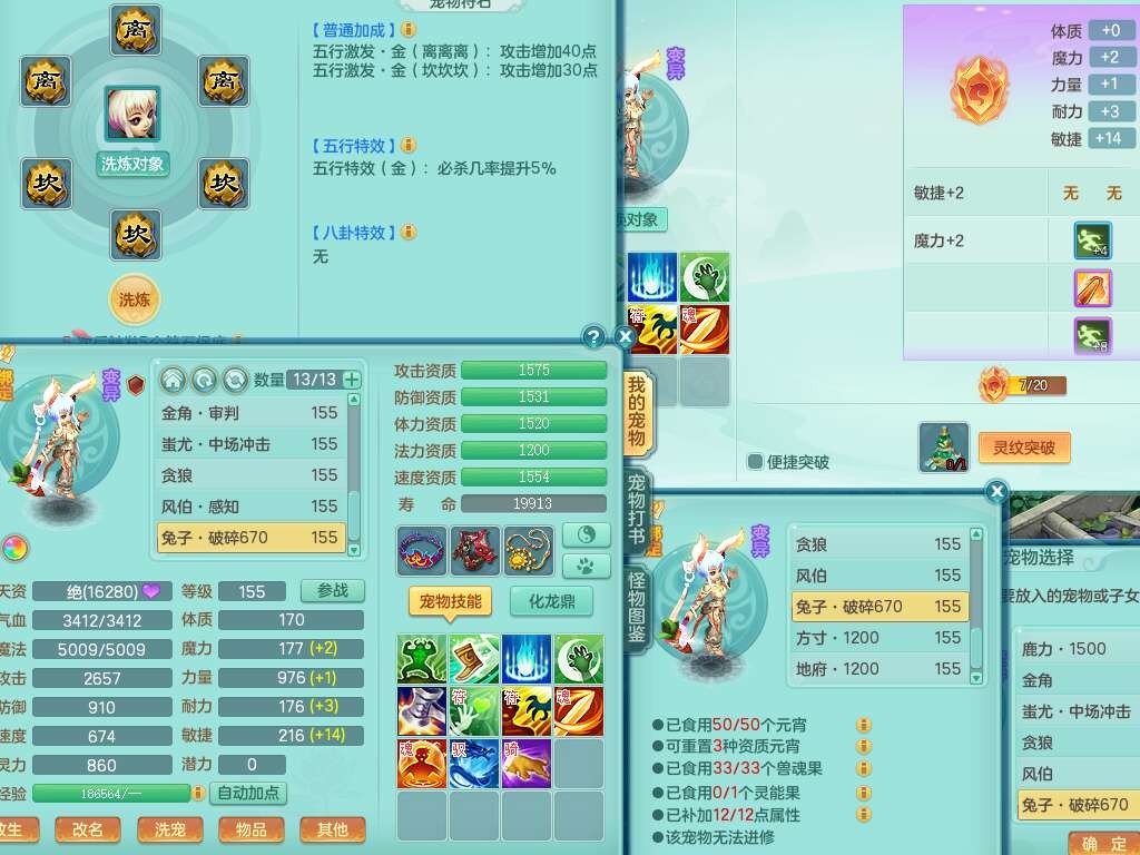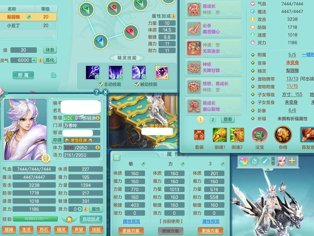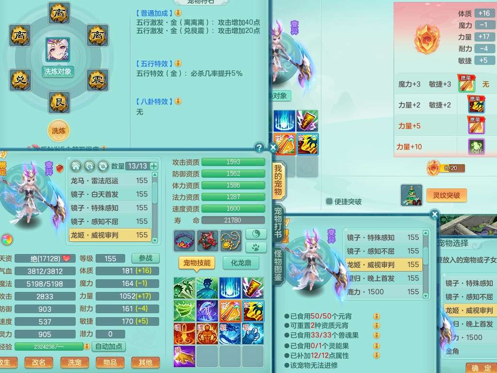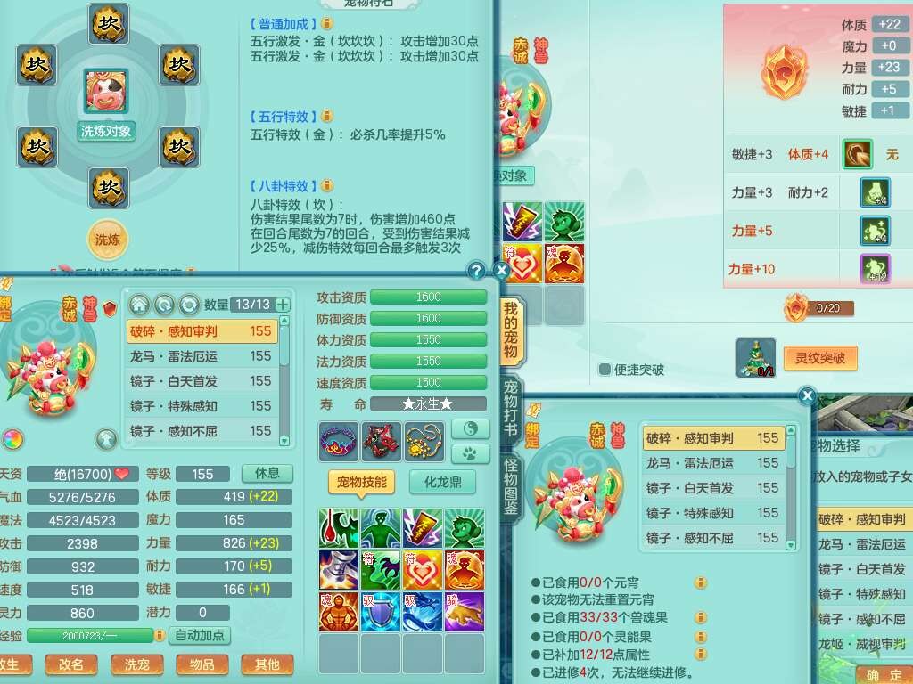 a22252超凡入圣男159男万兽,精灵舞,2内胆神,1破镜,【10觉醒,已潜龙】,8位靓号不含4(AAAABBCC),7宠皮,1特殊(祈雨),3只六技能镜花灵,2只六技能龙姬,易成长单加头,934必杀魔音摄心单加武器,神佑四海链子,愤怒易成长单加腰带,易成长崩山单加54鞋子,5.5基础鼎+70攻+280血,10个纯六字,2个五字,17只满果子,仓库还有101个果子,有30个神兽内丹碎片,2只双人坐骑,暴龙泰坦+逍客+神驹心想事成+火焰之力武器+西瓜冰武器,带11169金币,61天月卡。