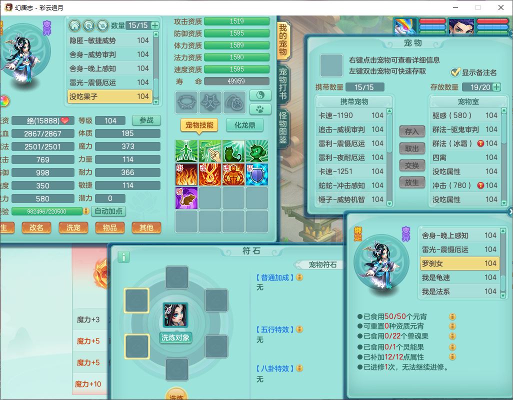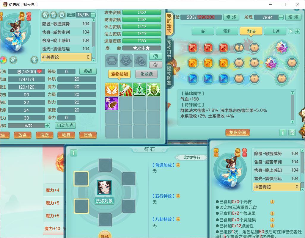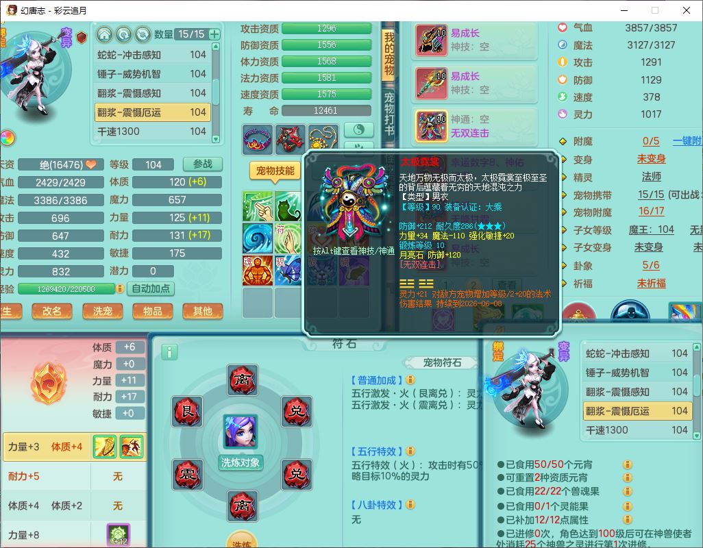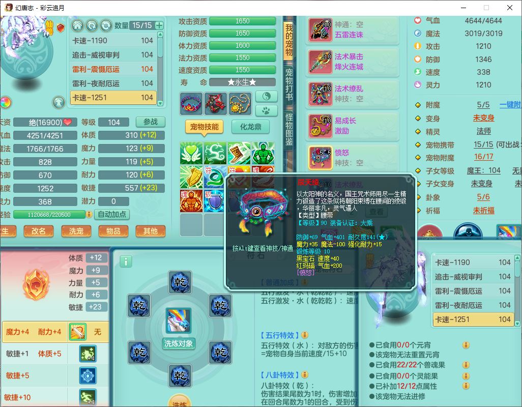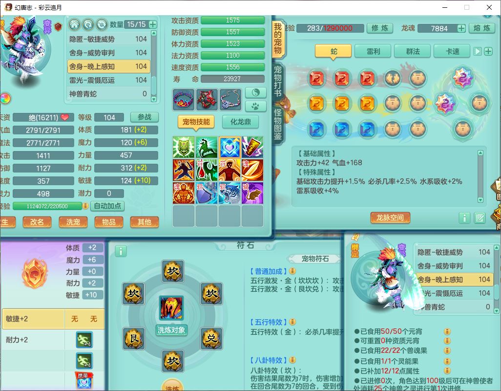 4369彩云追月99男龙宫【潜龙号+龙皮号+暴龙泰坦+西瓜冰】全魔精灵、力敏精灵,5龙(2破境)2内(1青蛇)1青蛇(无内)2翻江2舍身1建木1炉子,1龙皮11觉醒3宠皮7六字1五字7四字19只满果子,9红双法缭星辰之拥装备,单加五雷帽子,单加法爆烽火武器,法术缭乱衣服,单加Y激励项链,单加愤怒腰带,单加法术缭乱破血鞋子,一套9红物理装备,破血衣服,幸运8神佑迟滞项链,愤怒四海腰带,鼎3.0+42+168,2套符石,69天月卡,永久外观饰物、精灵皮肤,46个内丹碎片,3双人坐骑(1飞行)