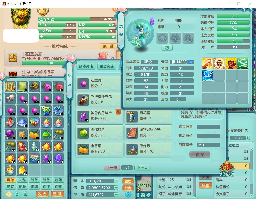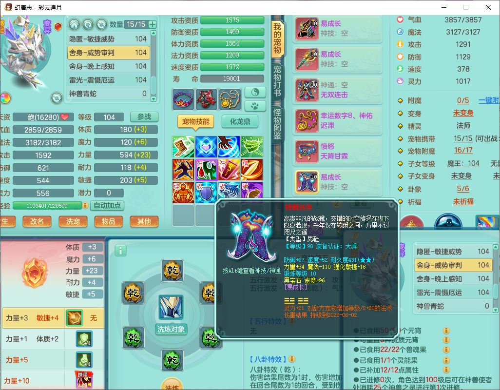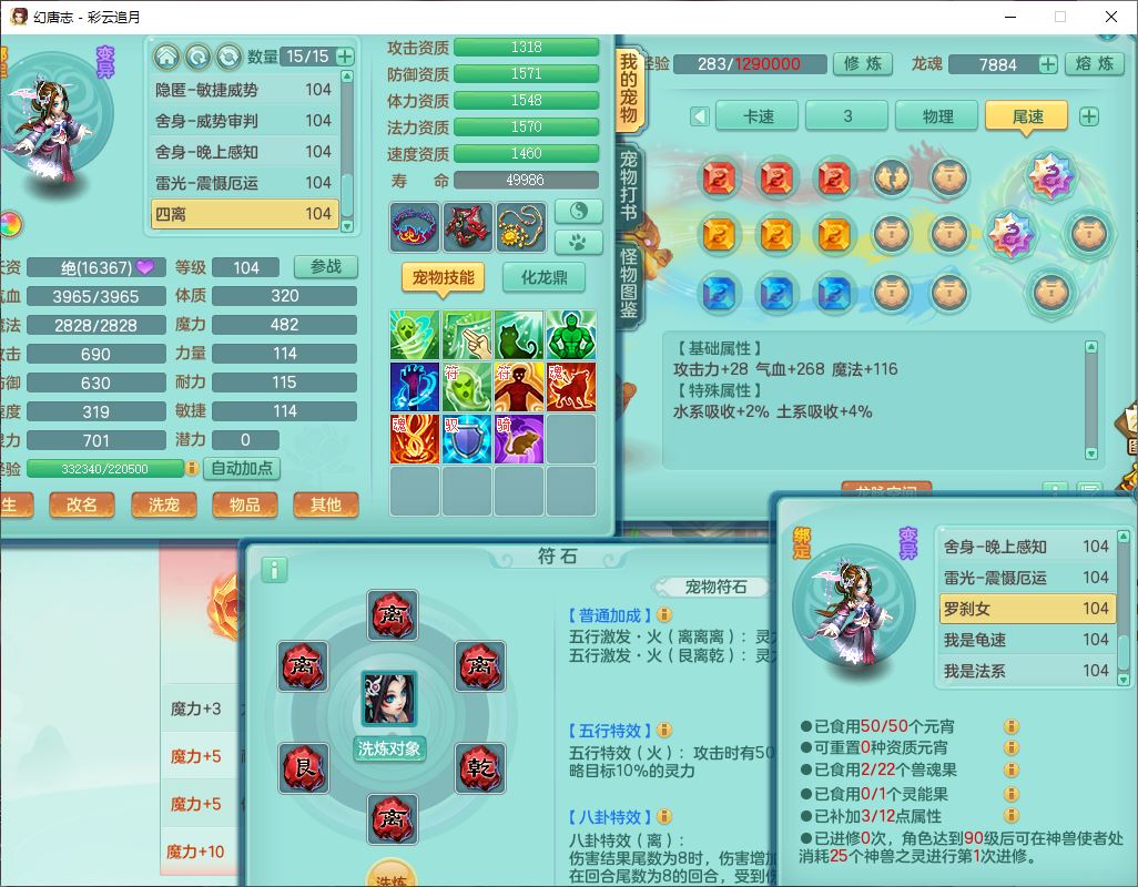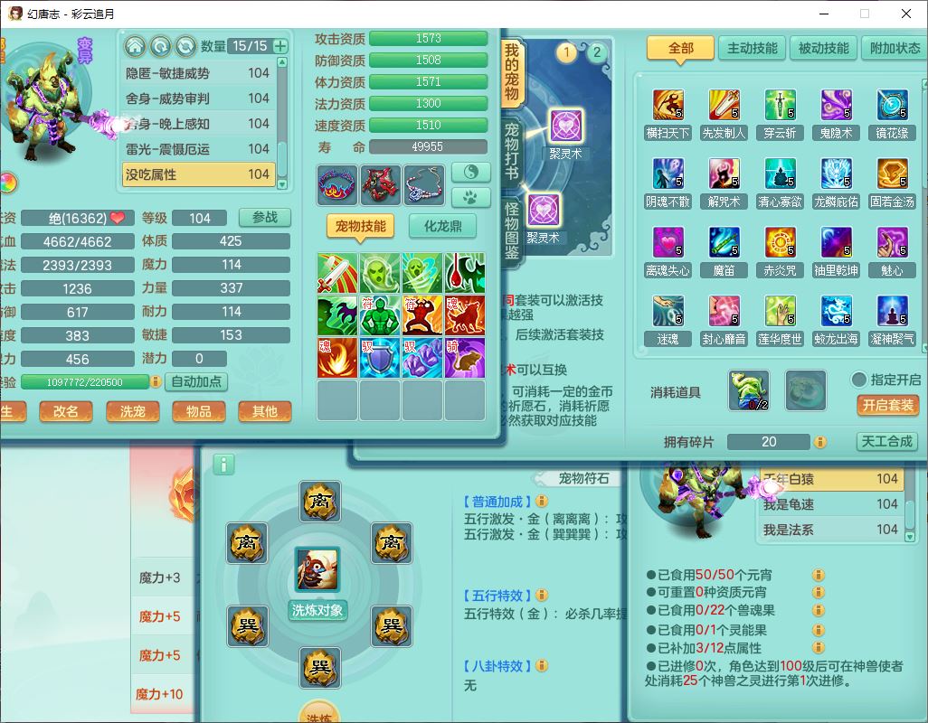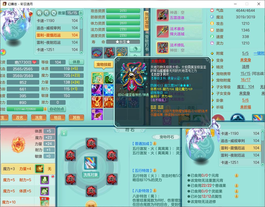 4369彩云追月99男龙宫【潜龙号+龙皮号+暴龙泰坦+西瓜冰】全魔精灵、力敏精灵,5龙(2破境)2内(1青蛇)1青蛇(无内)2翻江2舍身1建木1炉子,1龙皮11觉醒3宠皮7六字1五字7四字19只满果子,9红双法缭星辰之拥装备,单加五雷帽子,单加法爆烽火武器,法术缭乱衣服,单加Y激励项链,单加愤怒腰带,单加法术缭乱破血鞋子,一套9红物理装备,破血衣服,幸运8神佑迟滞项链,愤怒四海腰带,鼎3.0+42+168,2套符石,69天月卡,永久外观饰物、精灵皮肤,46个内丹碎片,3双人坐骑(1飞行)