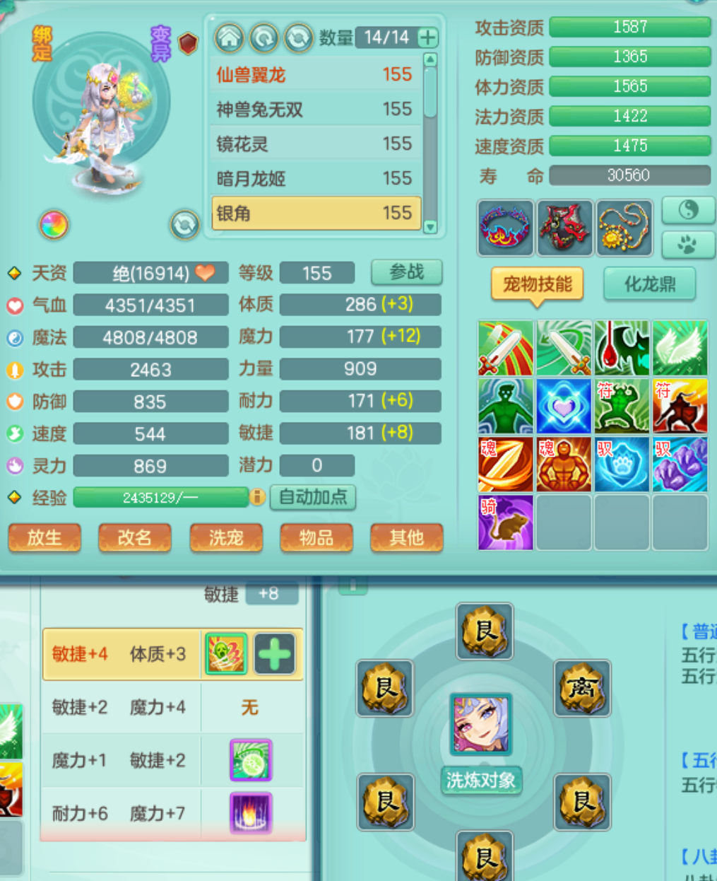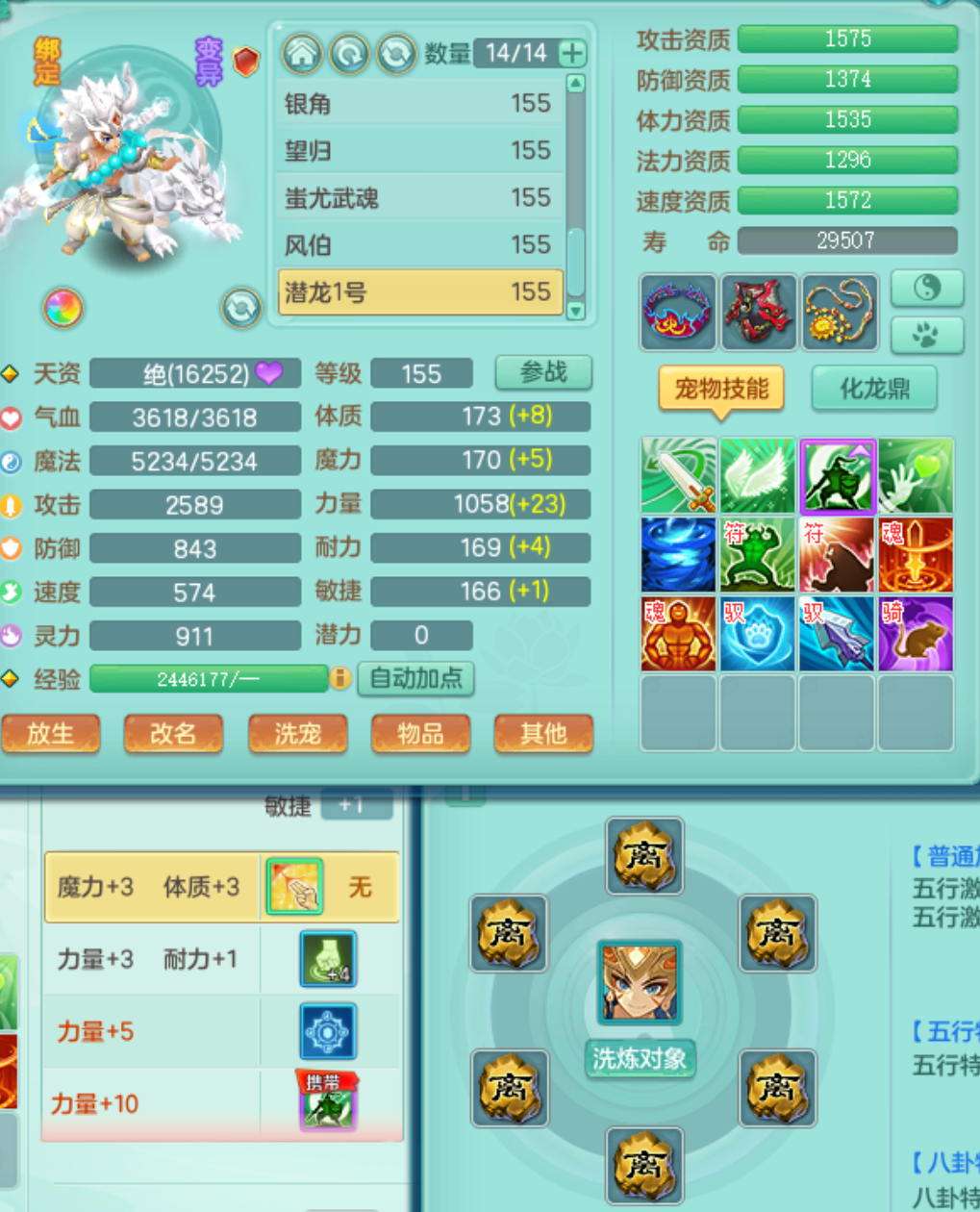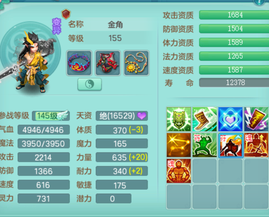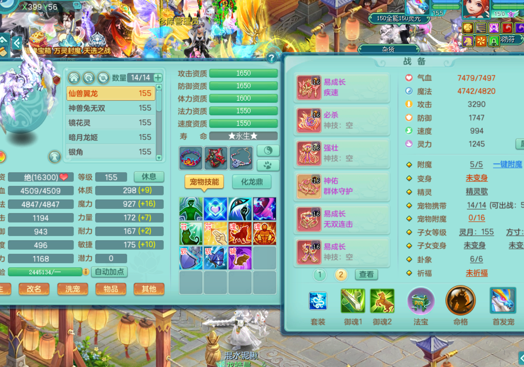 60941风驰电掣159天策 1龙无内 1内丹神+22碎片 5个宝宝皮肤【3银角】 7觉醒 14只满果子 9红物理装备 精灵舞 化龙鼎5.5+70攻击力 3镜子1龙姬 2特殊 1天马之心 1双人坐骑 一套法系装备 57法爆武器 各类型宝宝齐全 上手可踢球