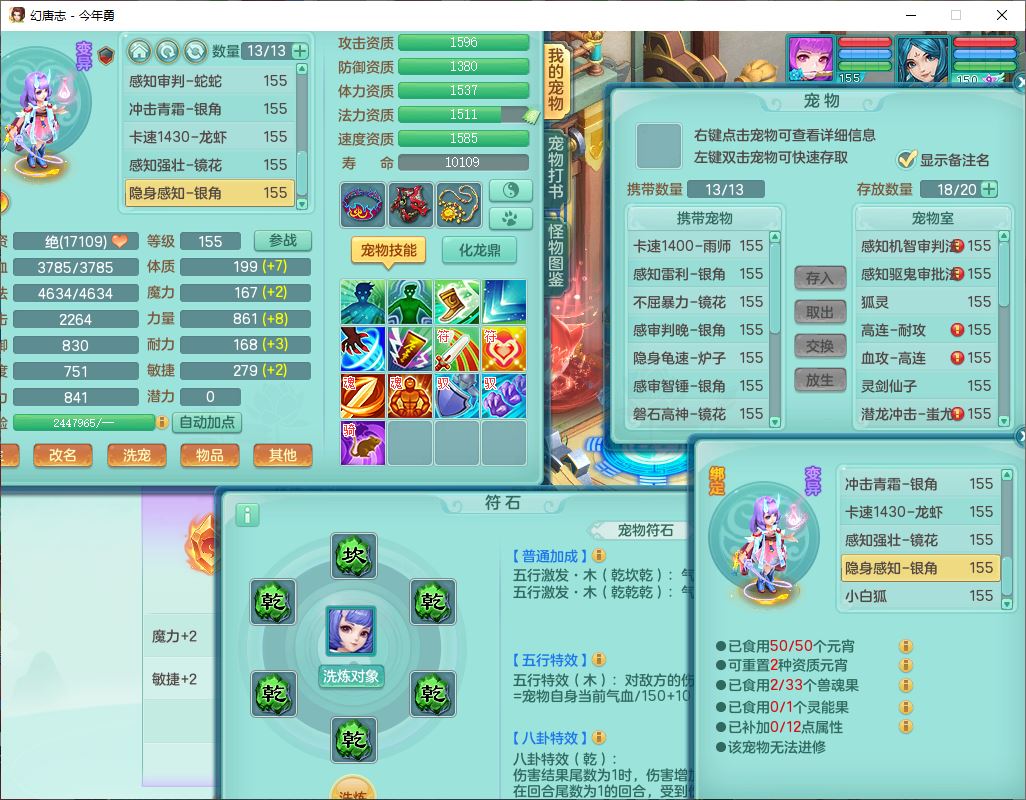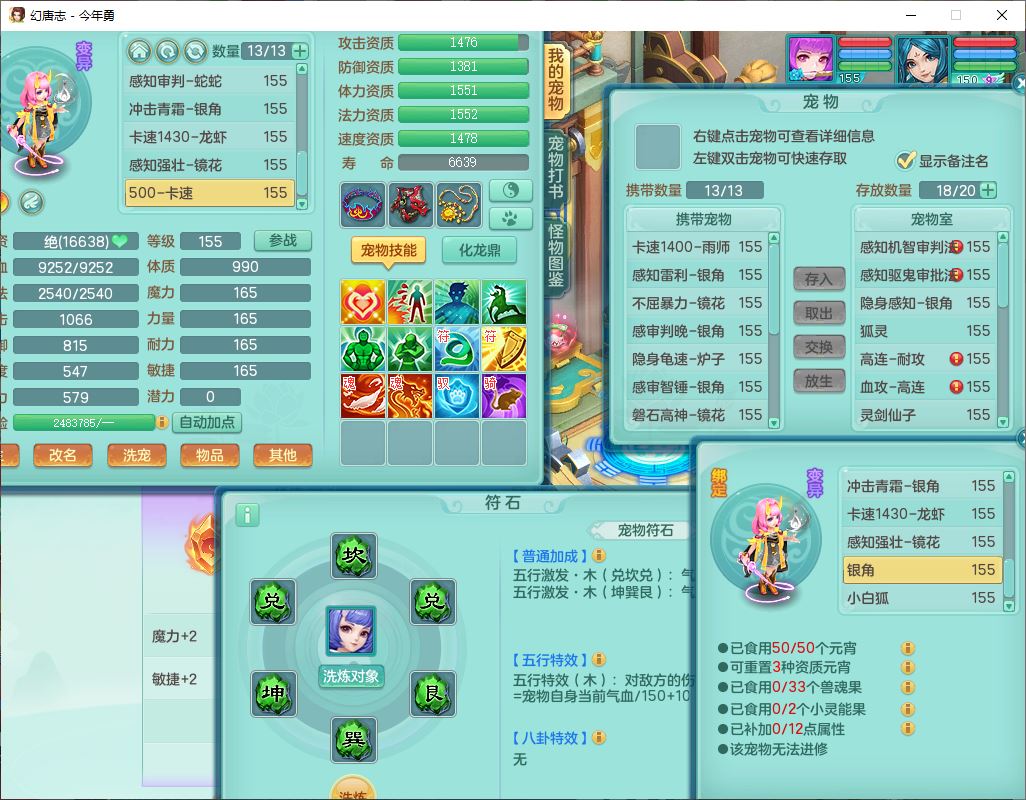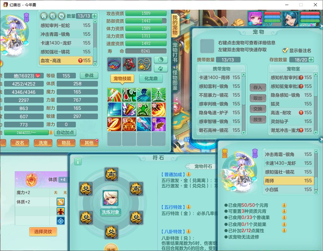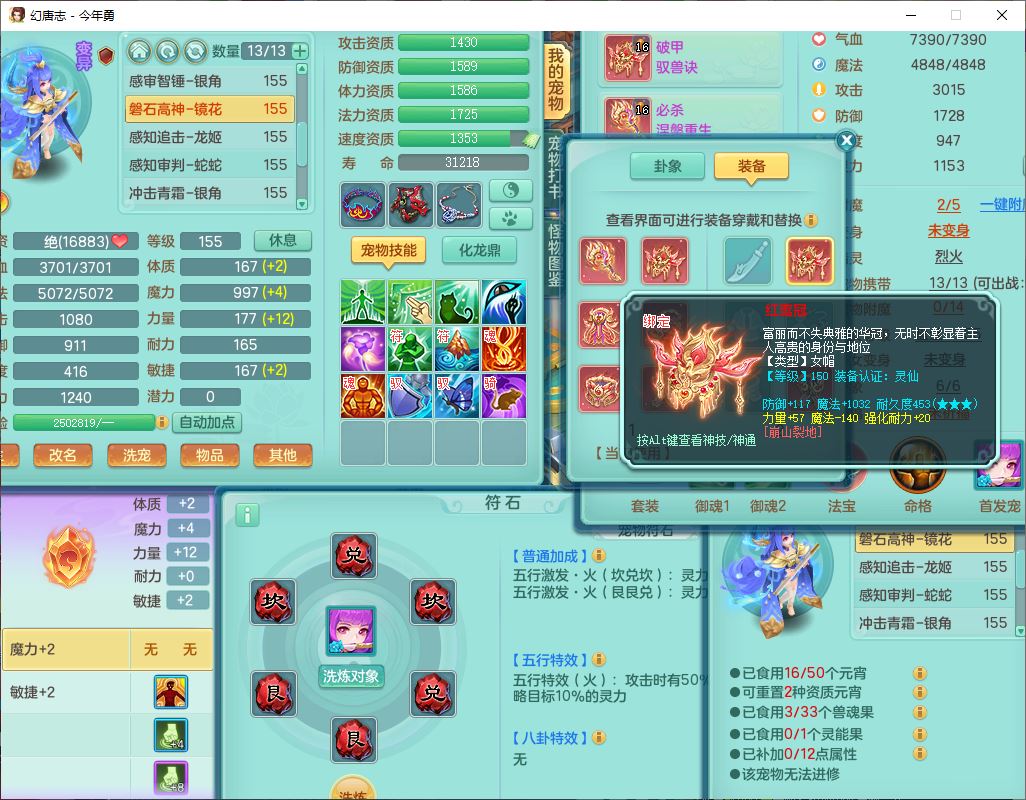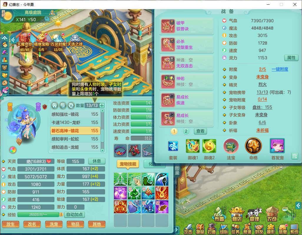 80747今年勇159女五庄精灵歌,1内丹青蛇3镜花1龙姬5特殊(雷利、破碎、青霜,兽决藕断、墨守)1金炉,1觉醒2五字12四字,9红星辰之拥装备,破甲驭兽帽子,必杀慈航武器,神佑项链,Y疾速腰带,崩山帽子,鼎4.5,庭院158房屋159,53个仙兽灵,33个内丹碎片,1双人飞行坐骑