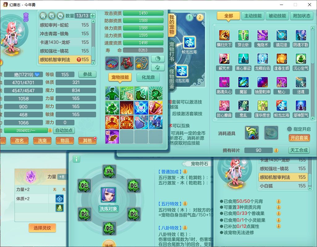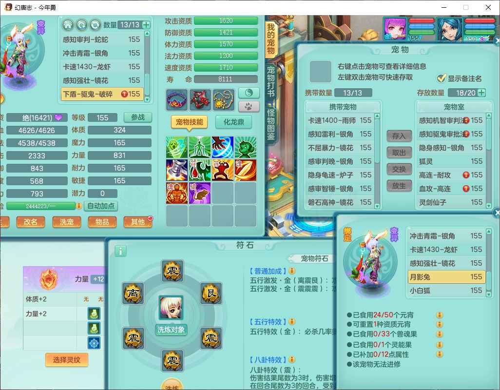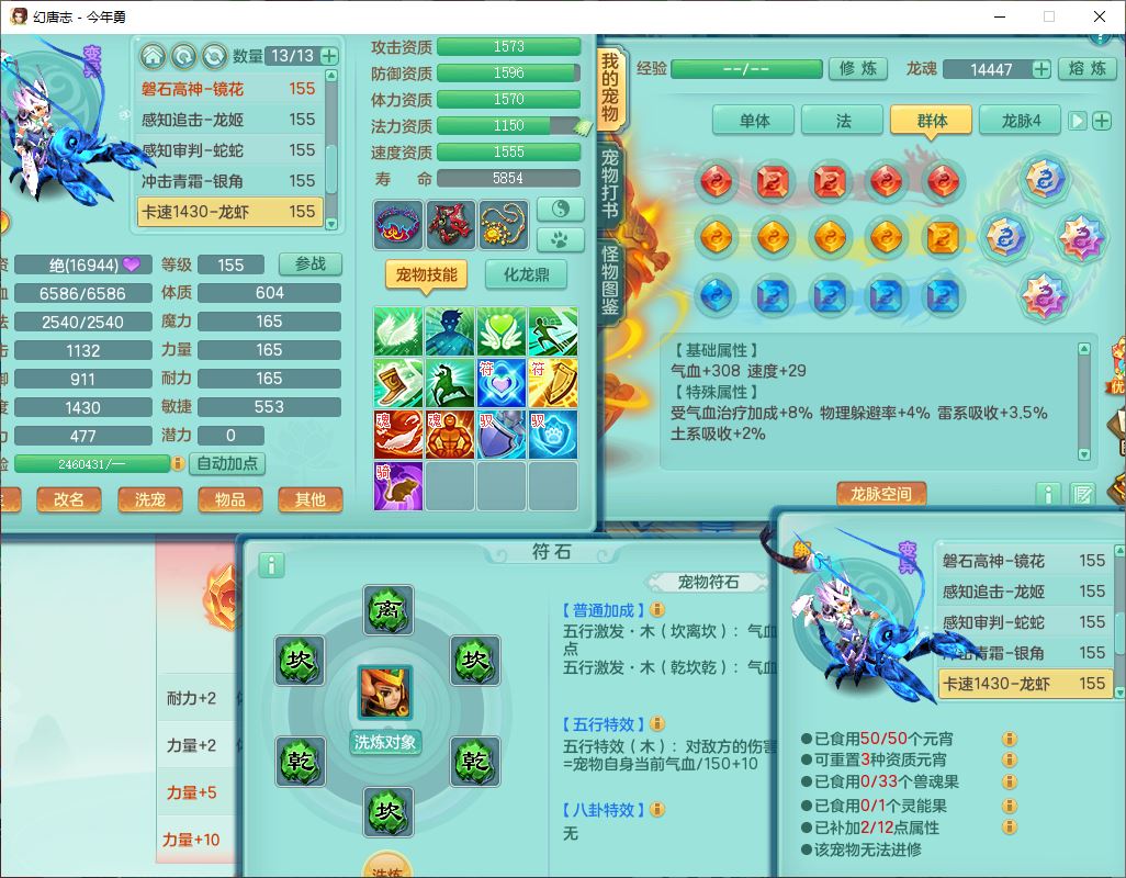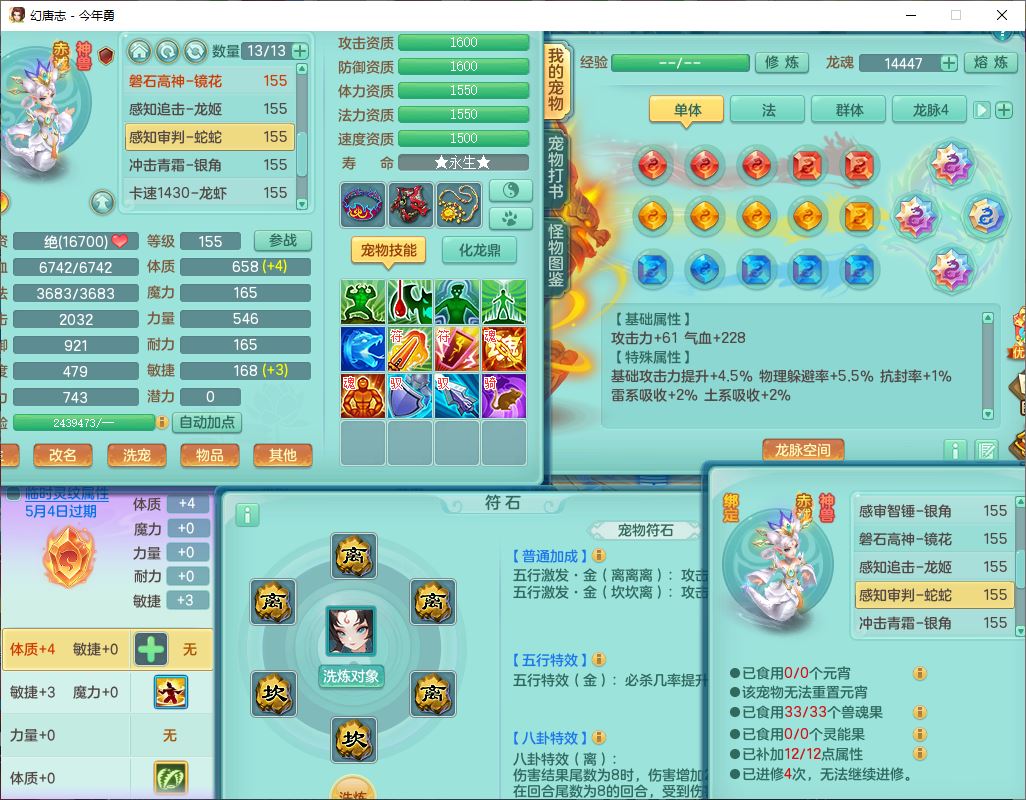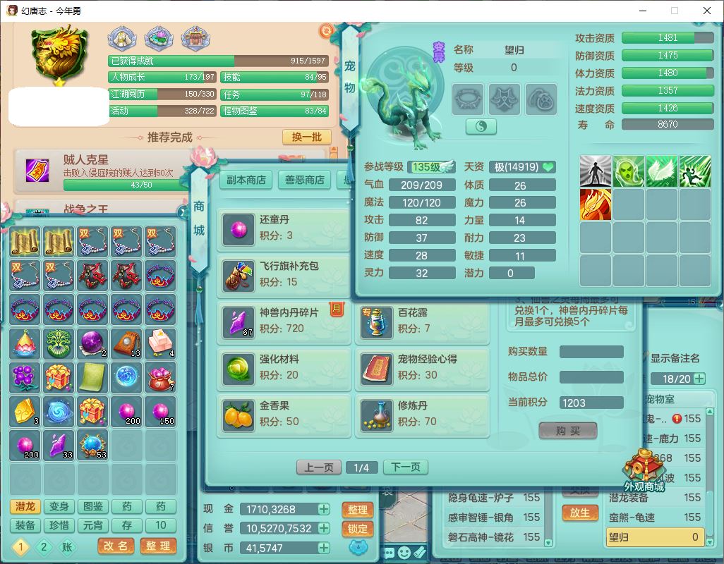 80747今年勇159女五庄精灵歌,1内丹青蛇3镜花1龙姬5特殊(雷利、破碎、青霜,兽决藕断、墨守)1金炉,1觉醒2五字12四字,9红星辰之拥装备,破甲驭兽帽子,必杀慈航武器,神佑项链,Y疾速腰带,崩山帽子,鼎4.5,庭院158房屋159,53个仙兽灵,33个内丹碎片,1双人飞行坐骑