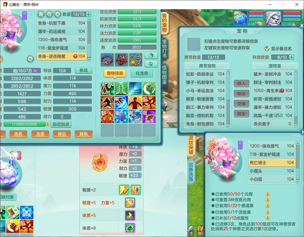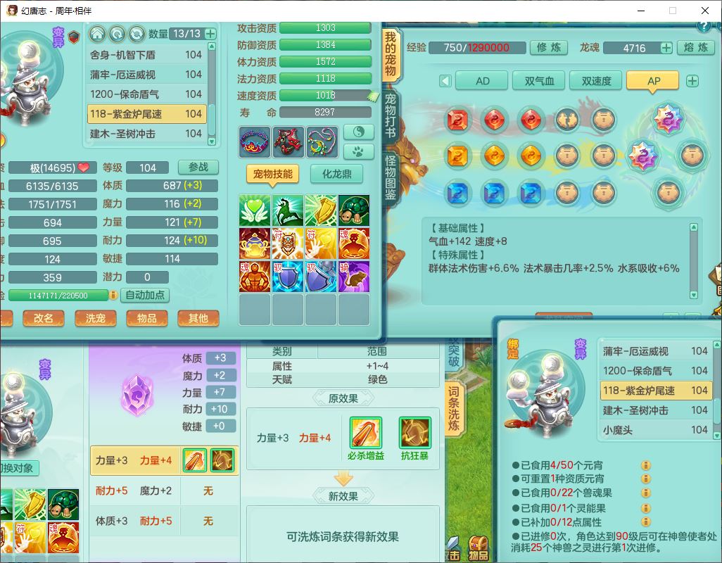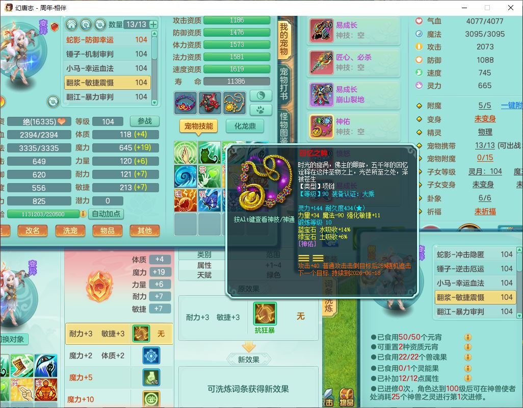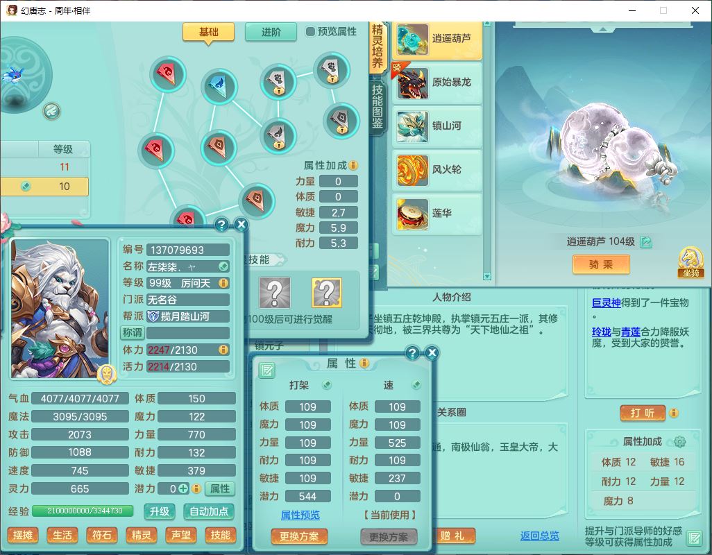 52683周年相伴99男无名【暴龙泰坦+西瓜冰】力敏耐精灵,3内(1龙马1蛇影)4翻江3舍身1建木1金炉,5觉醒10宠皮12只满果子,9红装备,匠心必杀武器,Y崩山衣服,神佑项链,Y罗汉鞋子,鼎2.5,永久外观、精灵皮肤,10个内丹碎片,4坐骑(1双人飞行)