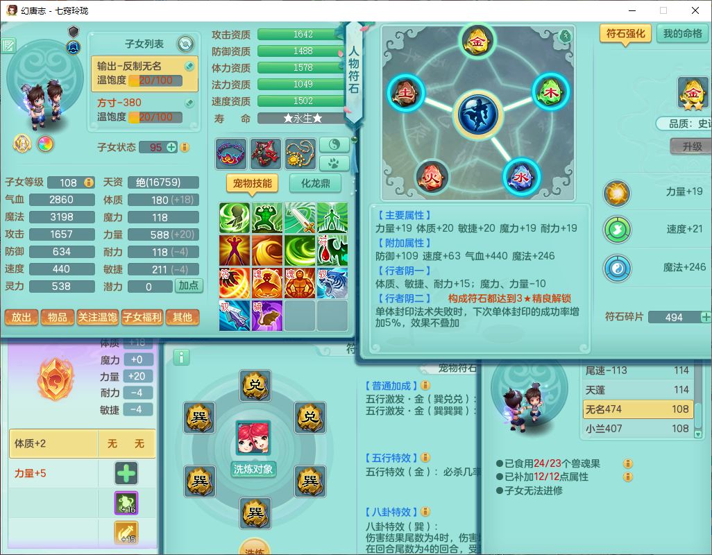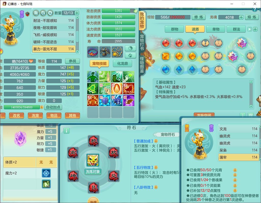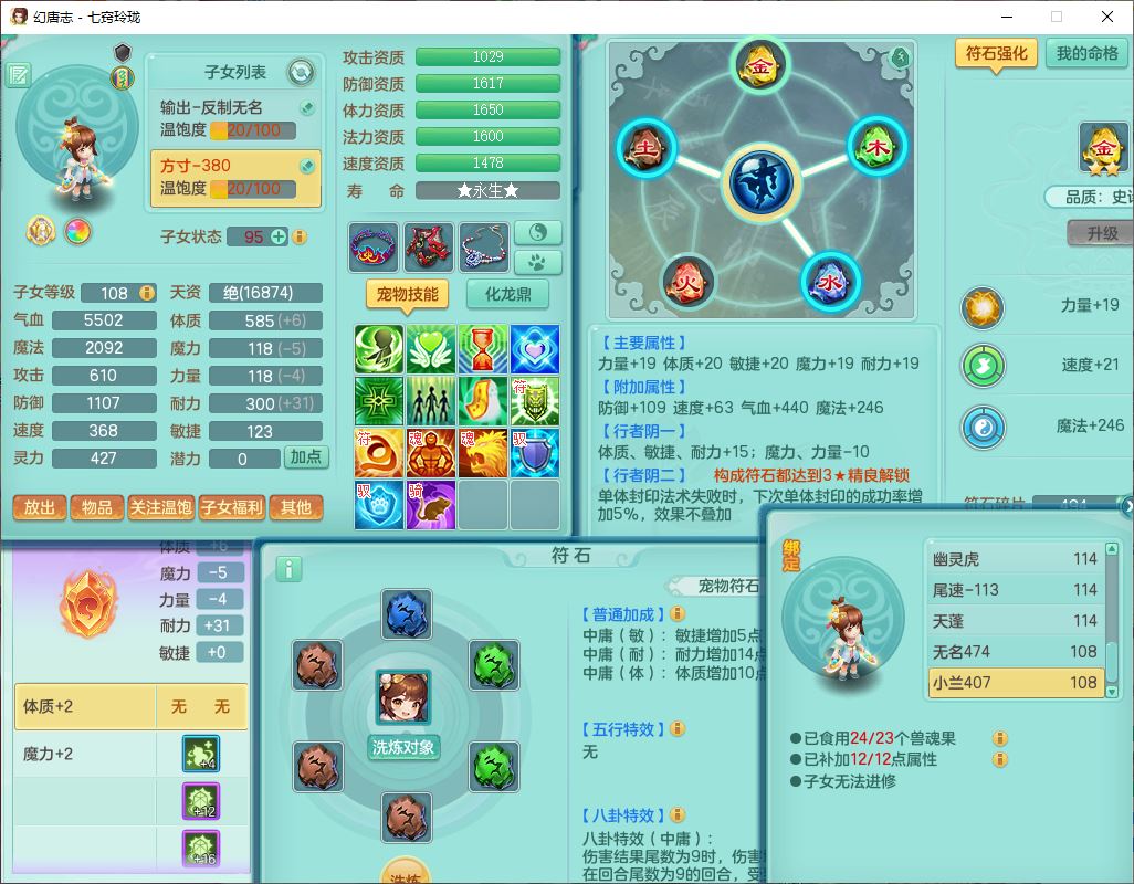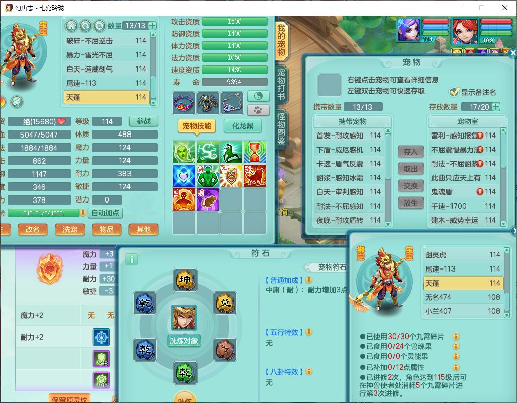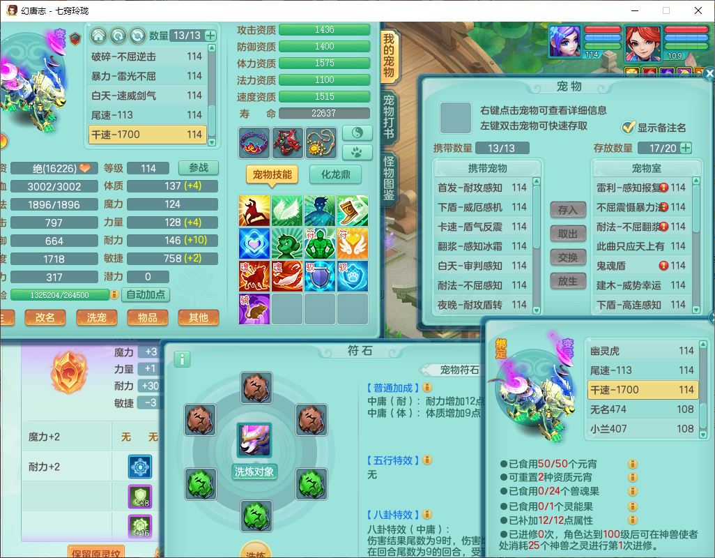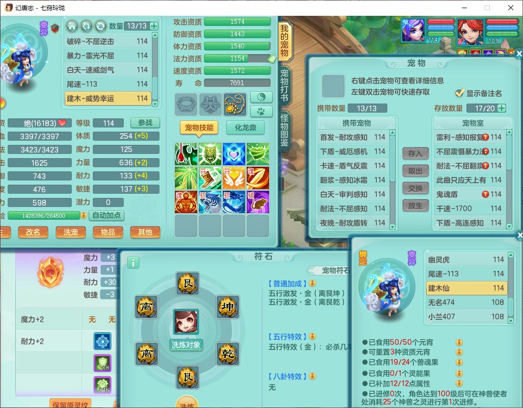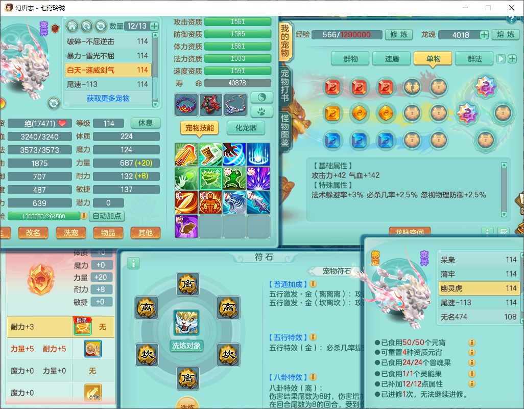 24288七窍玲珑109女天魔精灵舞,1内丹青蛇1羽袭1金炉8幽灵虎,2觉醒3宠皮1五字12四字综合12只满果子,9红装备,Y四海帽子,愤怒疾速腰带,Y晶清鞋子,鼎2.5+42,庭院160房屋150,永久外观、精灵皮肤,18个仙兽灵,31个内丹碎片,2坐骑(1双人)