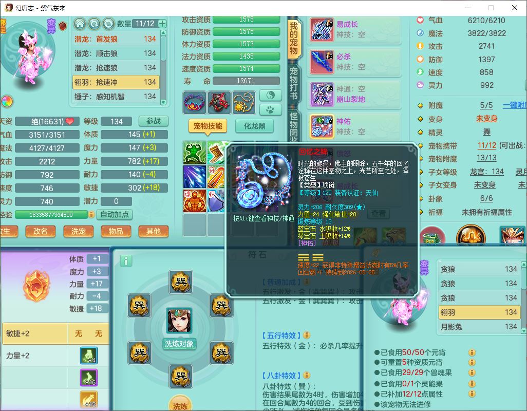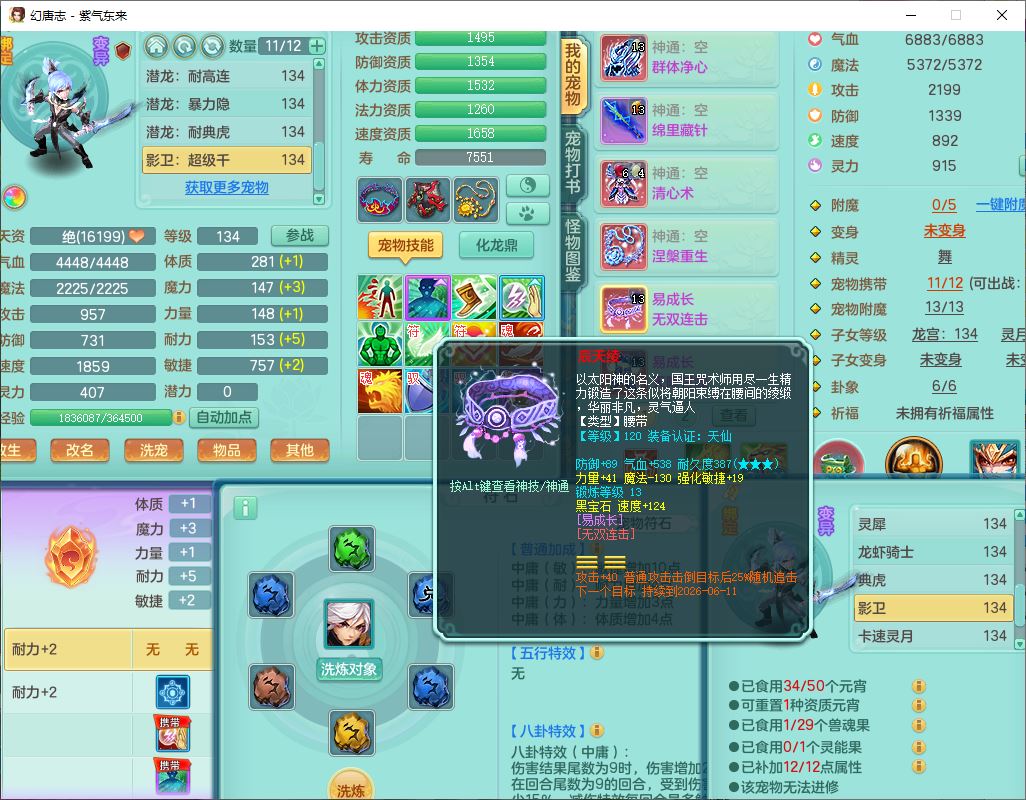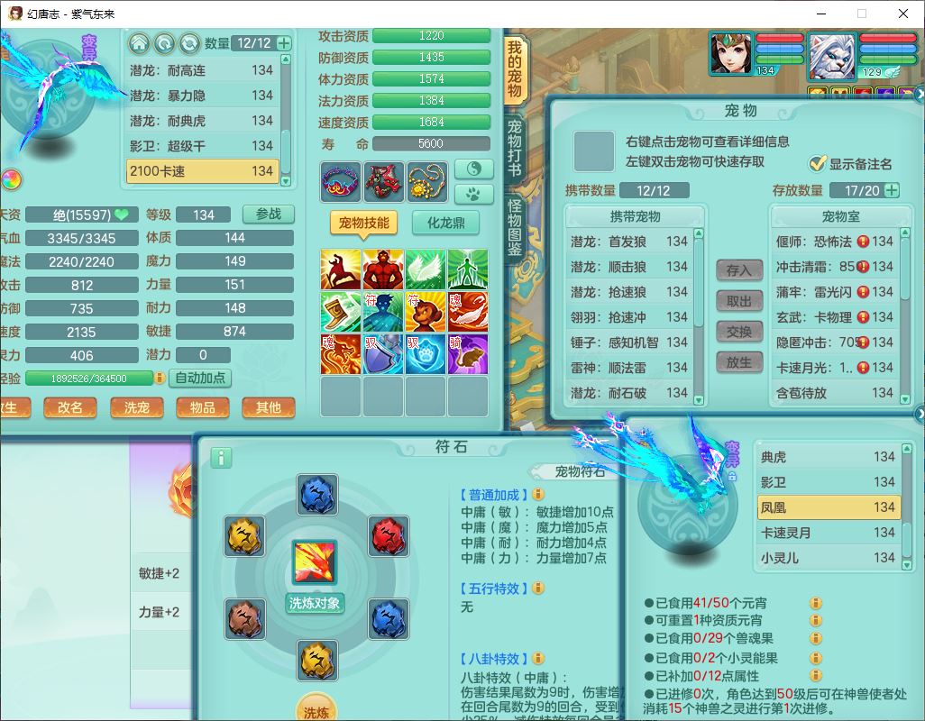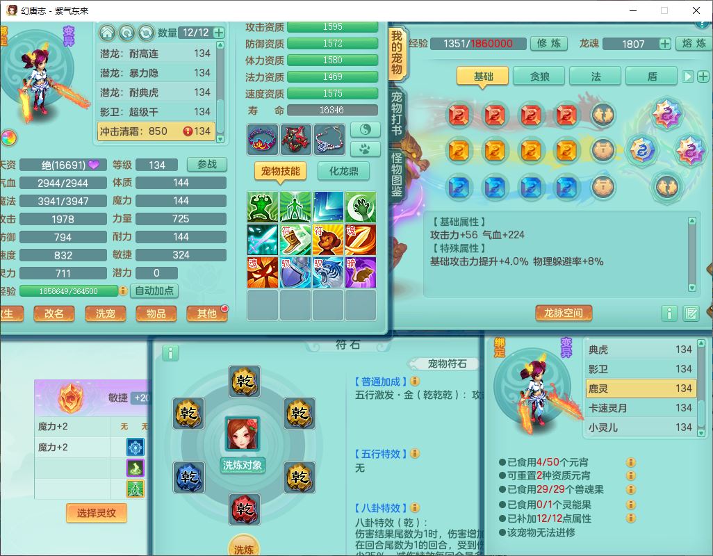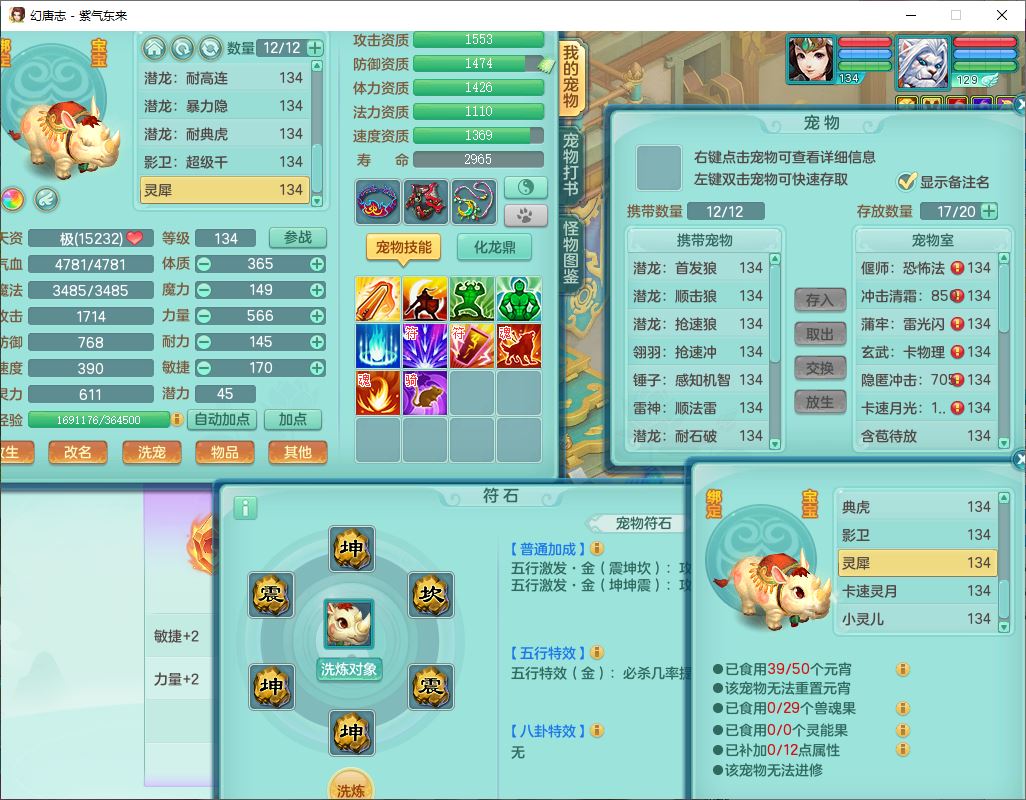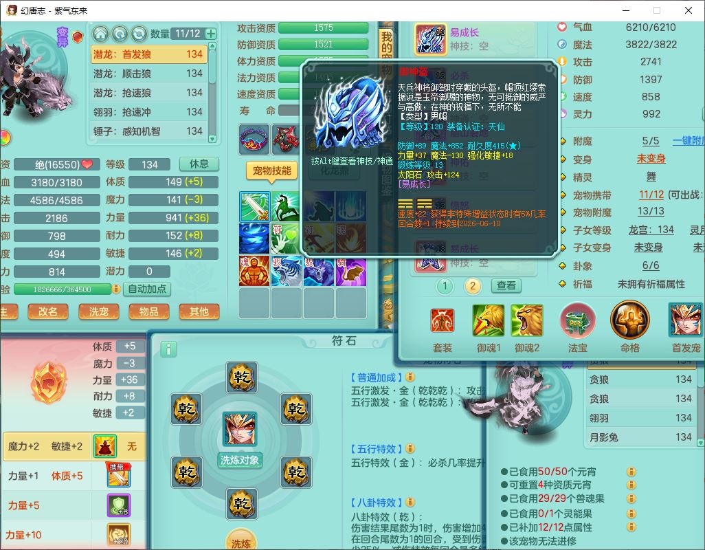 24285紫气东来129男万兽【潜龙号】精灵舞,3贪狼1神石1典虎,7觉醒9六字1五字4四字15只满果子,装备齐全,必杀武器,崩山衣服,神佑项链,一套辅助装备,Y四海鞋子,鼎4.0+56+224,永久外观、精灵皮肤,76个仙兽灵,25个内丹碎片,仓库多存货,2坐骑(1双人飞行),带150奶粉