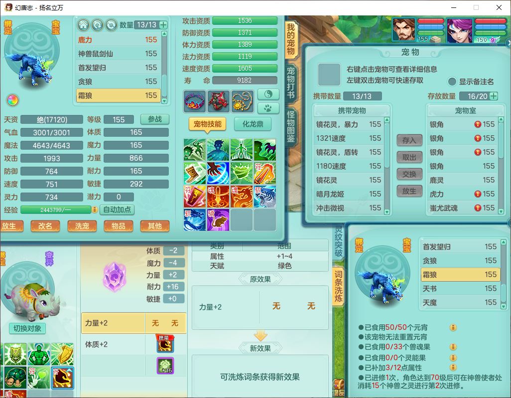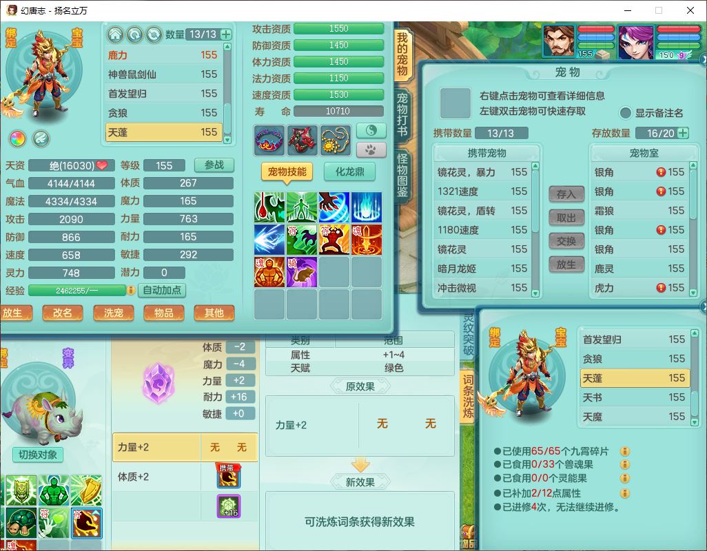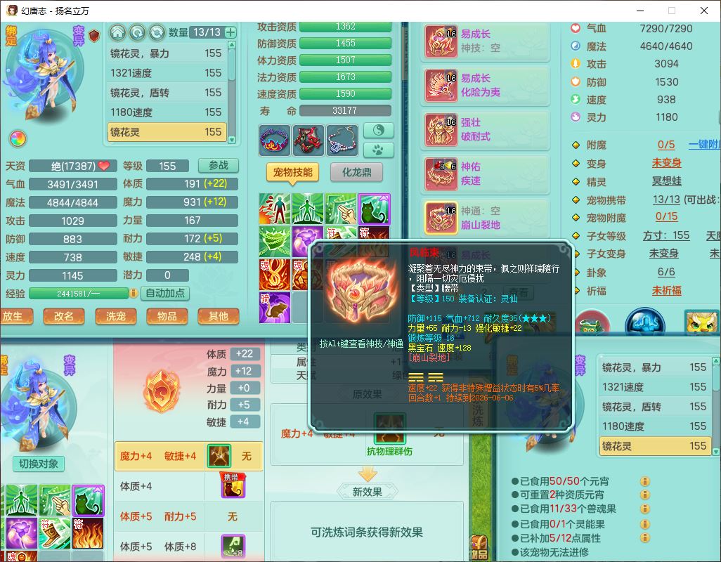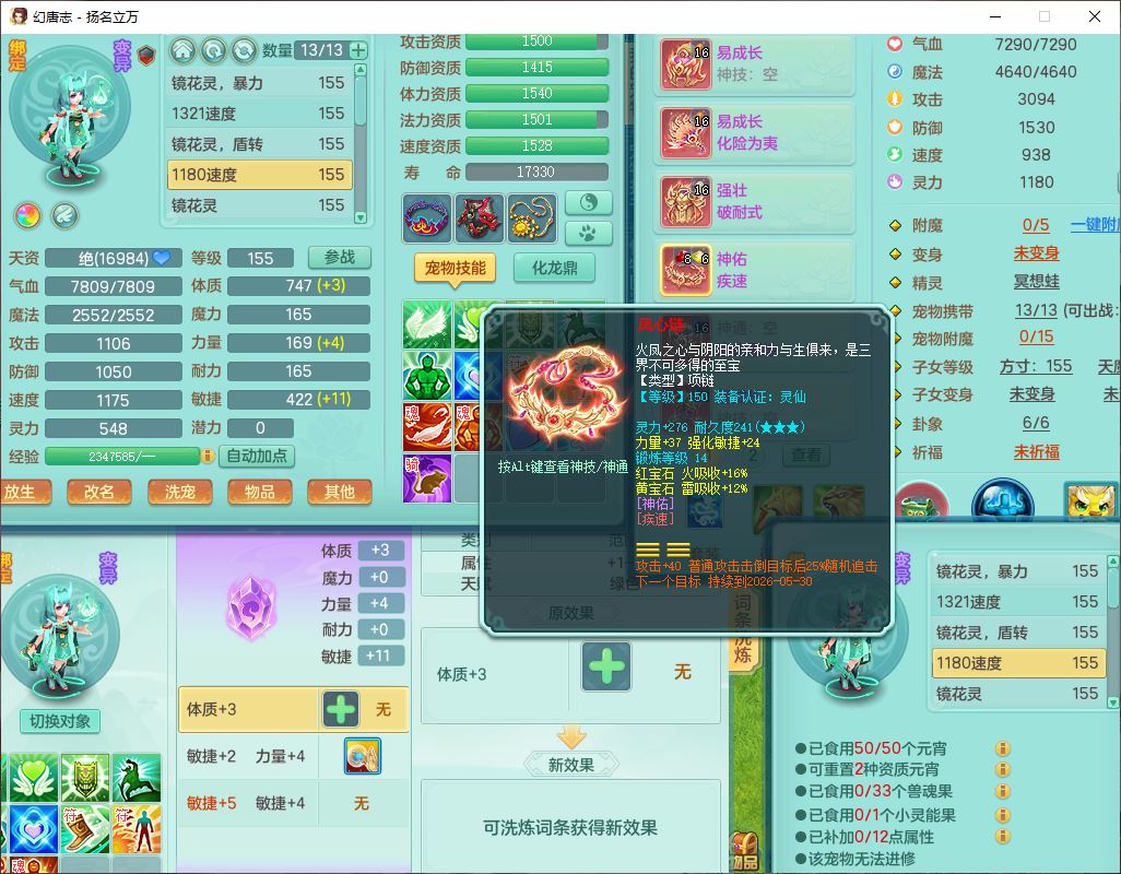 24282扬名立万159男万兽精灵舞,1内1望归3镜花1龙姬7技能雷利妖鬼1特殊兽决(怒破),2觉醒1宠皮,9红装备,Y化险武器,强壮破耐衣服,神佑疾速项链,崩山腰带,鼎4.5,34天月卡,23个仙兽灵