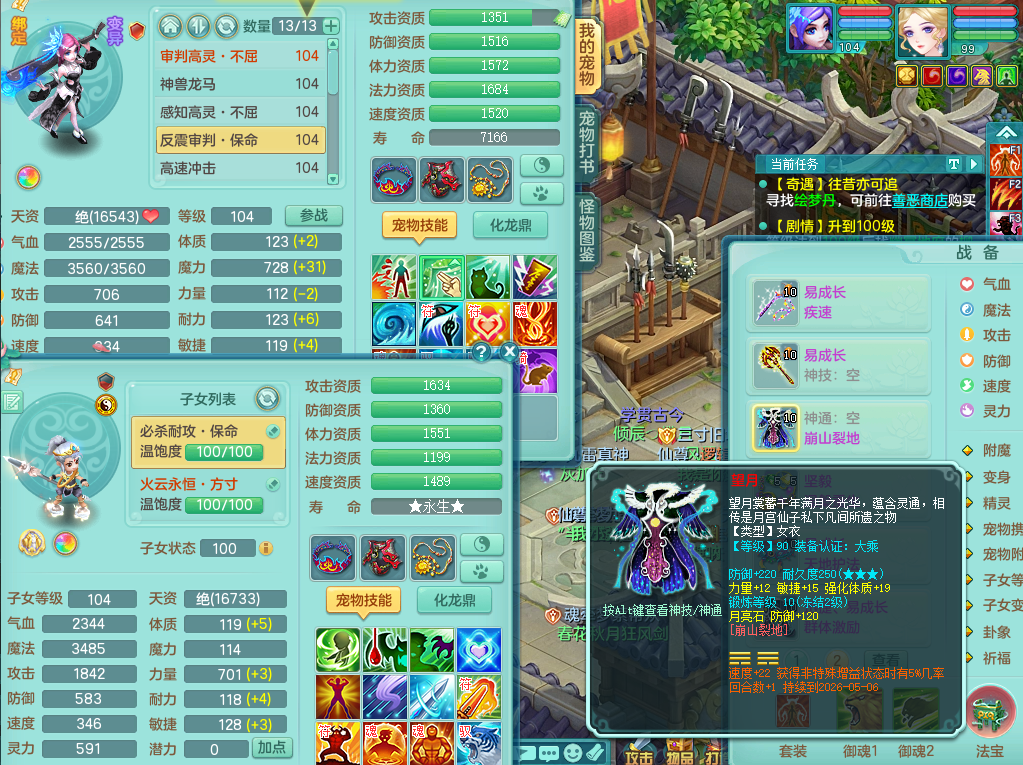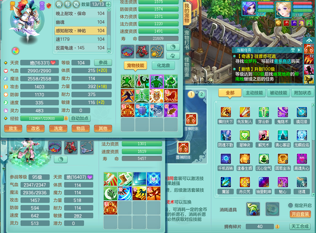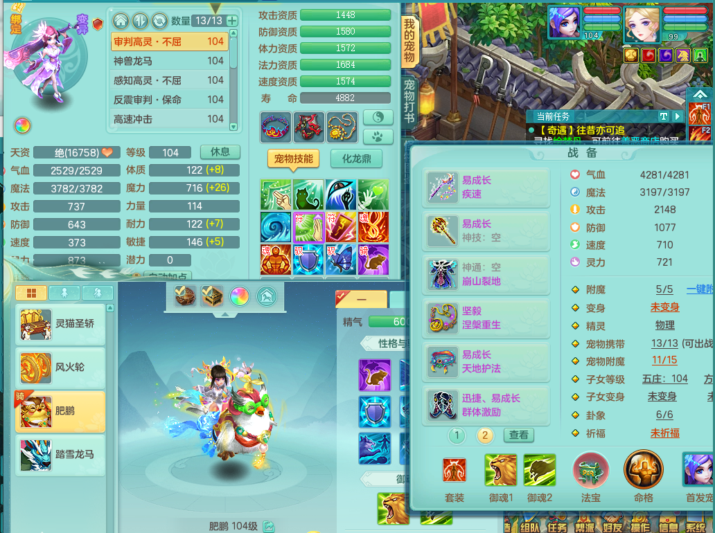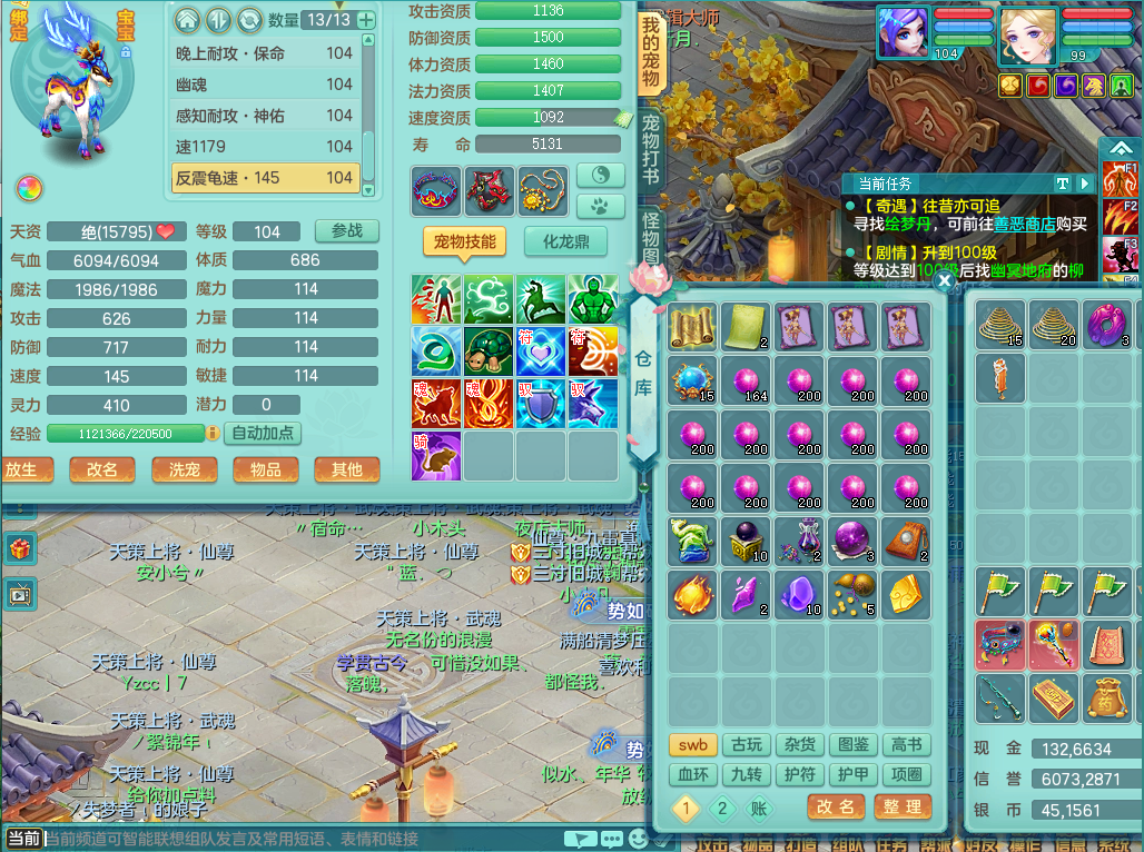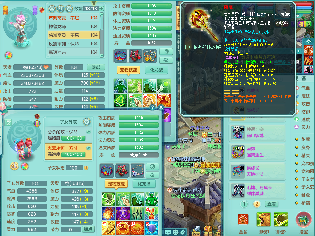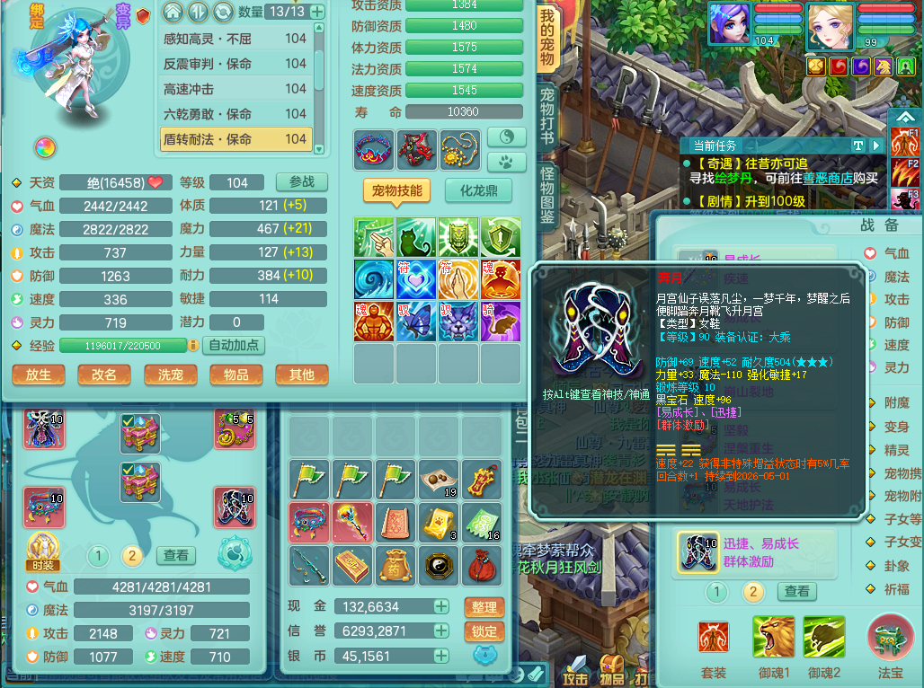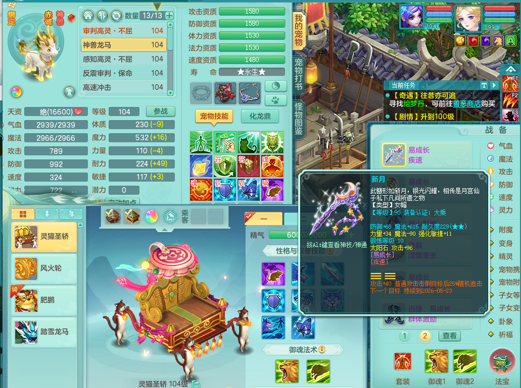 63140,龙腾九州99女万兽,1内丹神龙马(存)8只觉醒,1只8技能炼妖,基础2.5,单加34易疾速头,555攻易成长武器,坚毅慈航项链,单加32易罗汉腰带,迅捷易群体激励三红鞋子,小Q注销,可配合改密