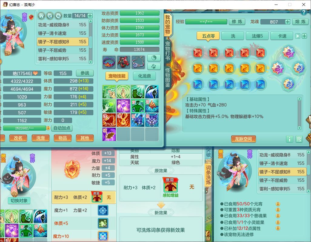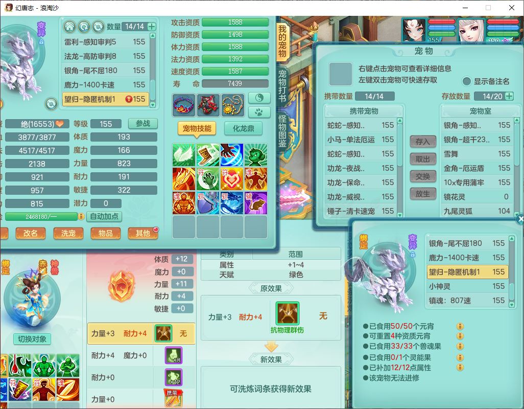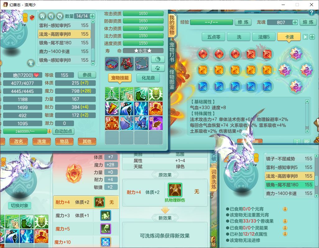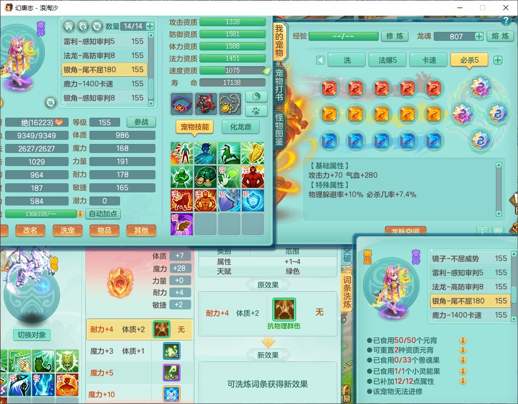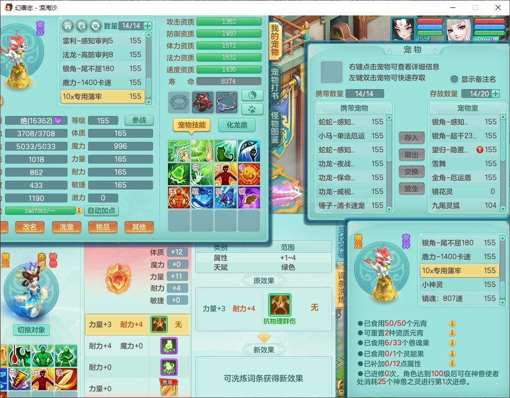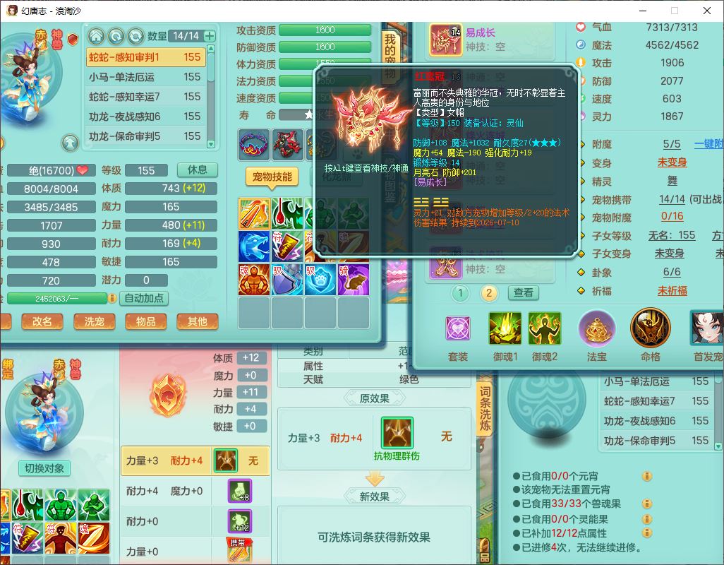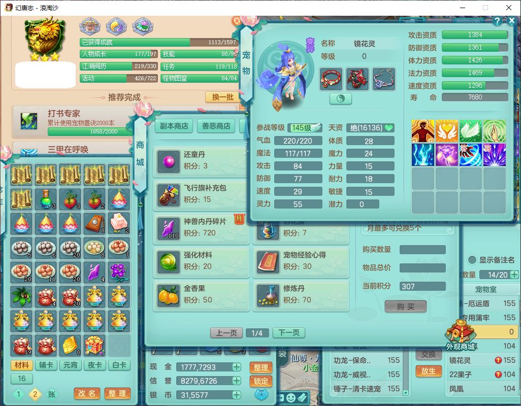 24283浪淘沙159女魔王【火焰之力+潜龙过半】精灵舞,5龙(换)3内(2青蛇1龙马)还能攒一个,1破镜4宠皮,14只满果子8觉醒3个纯6字,8红装备,五雷武器,Y烽火衣服,愤怒慈航腰带,法缭鞋子,崩山项链, 鼎5.0+70+280,53天月卡,庭院161,永久外观精灵皮肤,宠排在榜,2只双人坐骑, 带5个150仓库号,30多个仓库秘方药