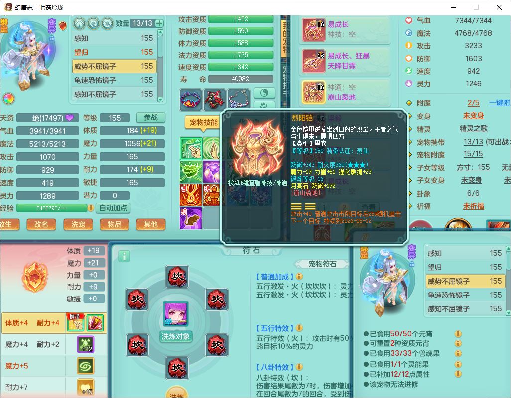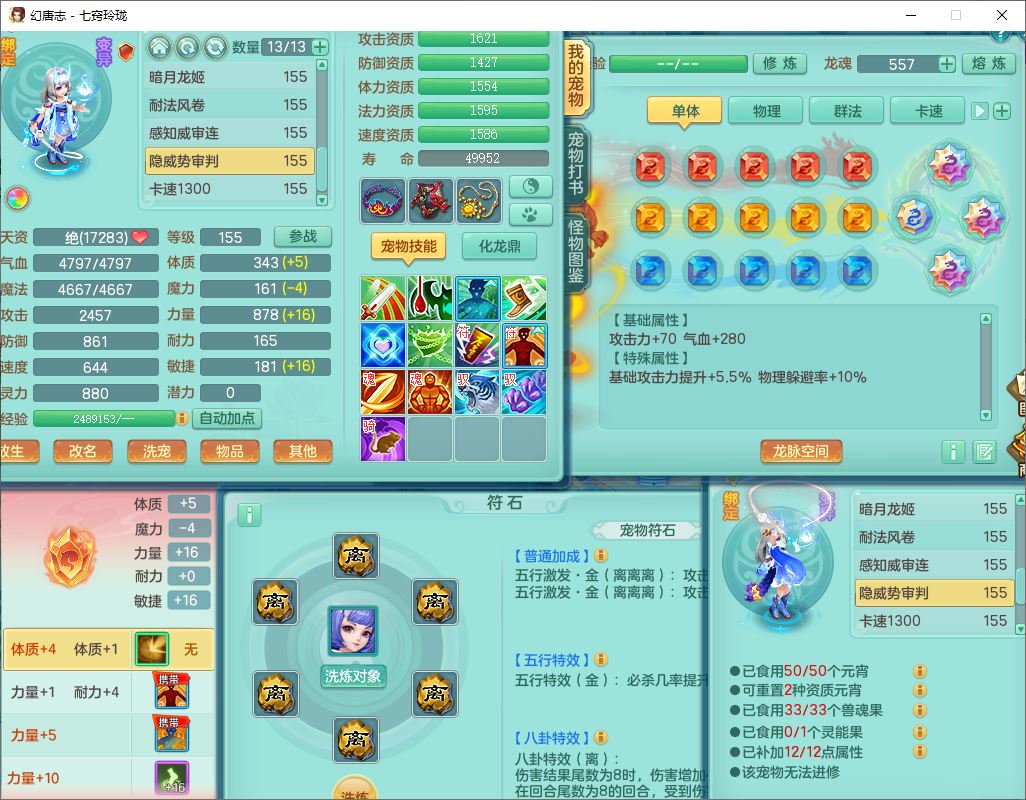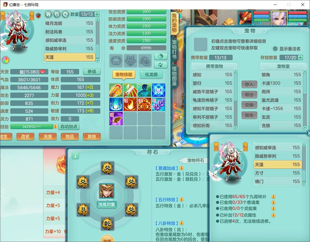 24280七窍玲珑159男万兽【潜龙+马上发财+火焰之力】精灵歌,1内丹青蛇1望归4镜花4特殊(祈雨、舍身,兽决禁锢、夺命)2龙姬1金炉,9觉醒3宠皮13六字1五字3四字18只满果子,8红装备,Y狂暴四海武器,崩山衣服,坚毅项链,一套辅助装备,Y晶清腰带,Y四海项链,鼎5.5+70+280,2套符石,131天月卡,庭院165房屋148,永久外观、精灵皮肤,28个仙兽灵,23个内丹碎片,1双人坐骑