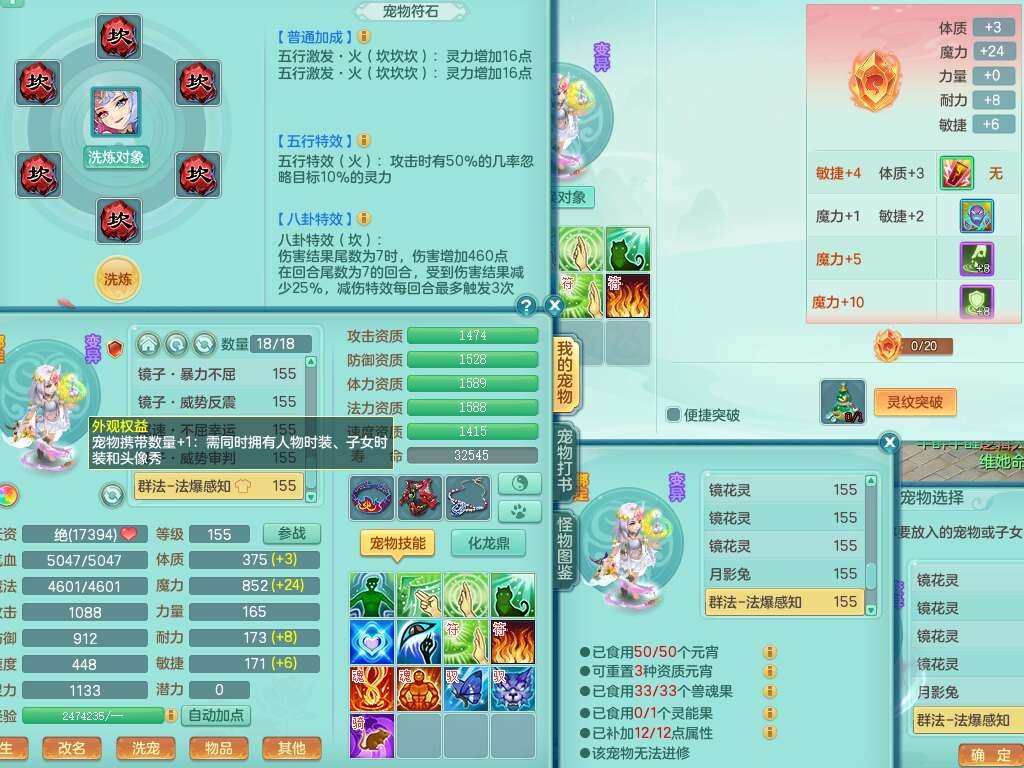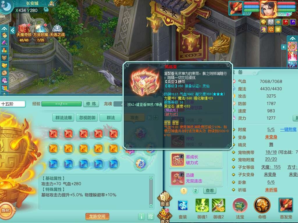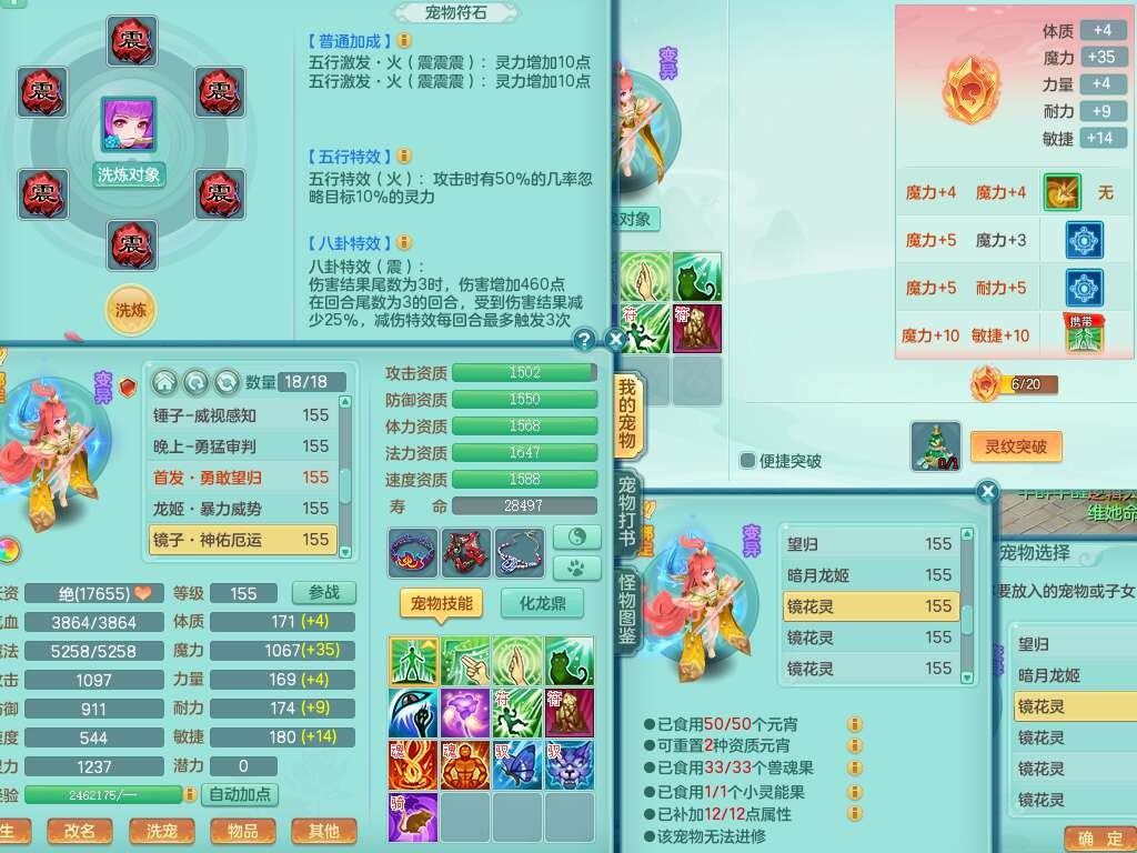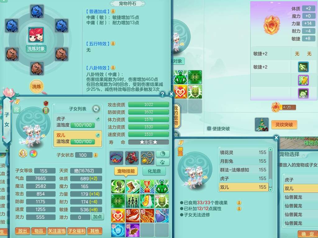 J22169紫气东来159男力天宫,已转无名谷,精灵舞,8龙2内胆神,1破镜,【13只觉醒,已潜龙】,8宠皮,5只六技能镜花灵,1只六技能龙姬,1特殊(虎虎),星辰之拥,破甲破血单加53头,934狂暴四海单加武器,崩山单加衣服,神佑单加52项链,易成长破力式单加51腰带,迅捷破血单加57鞋子,5.0基础鼎+70攻+280血,8.7法爆,15个格子,15个纯六字,1个五字,27只满果子,宠排在榜,经验修炼在榜,3个双人坐骑,暴龙洪荒+西瓜冰武器。