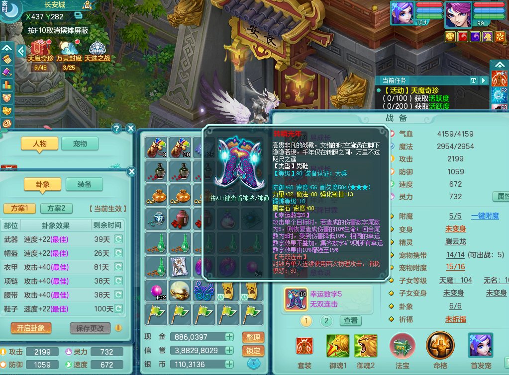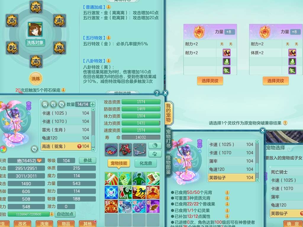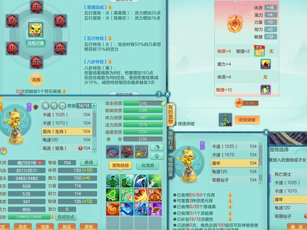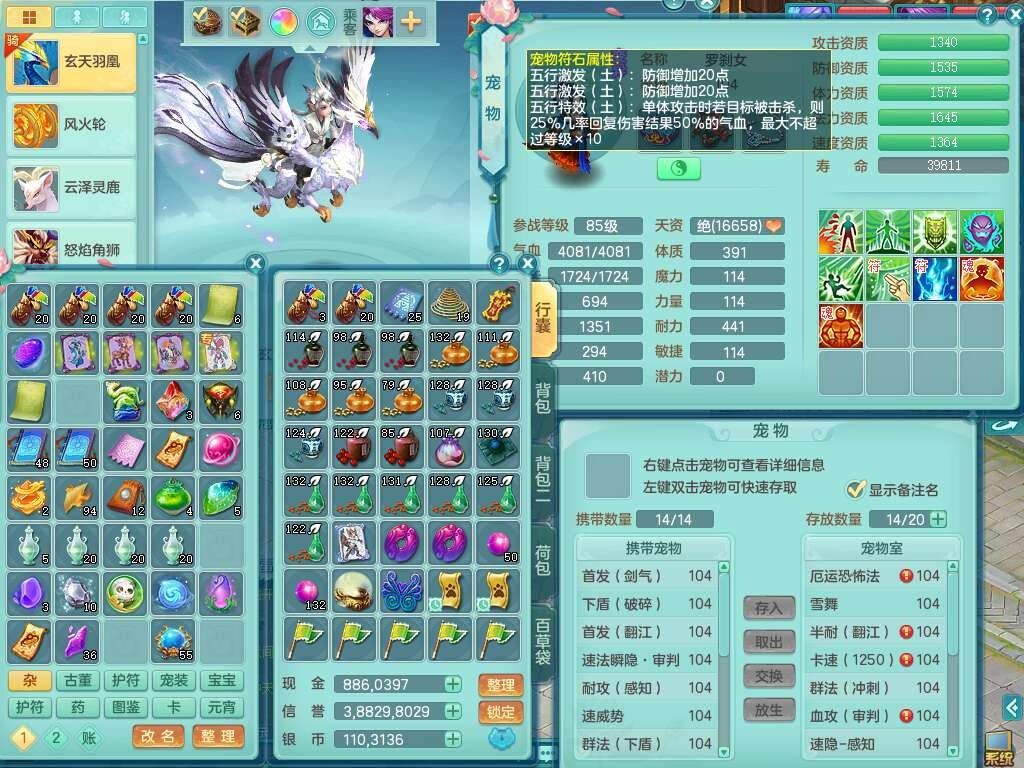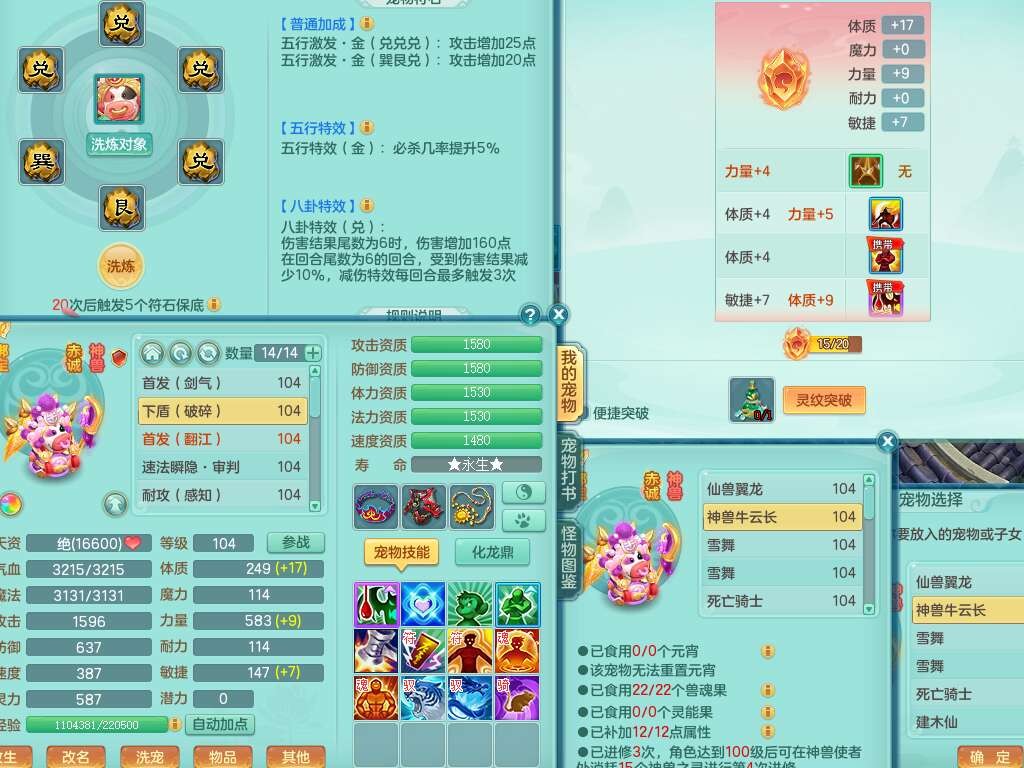 S22120扬名立万99男万兽,1龙1内胆神,10觉醒,1宠皮,易成长单加35头,553易成长单加武器,神佑幸运8项链,易成长愈命诀单加33腰带,幸运55破血单加32鞋子,有迅捷单加33鞋子,法爆单加35武器,2.5基础鼎+42攻,5个纯六字,2个五字,18只满果子,仓库还有28个果子,宠排在榜,3个孩子,双人坐骑,有55个仙兽蛋,36个神兽内丹碎片,2140金币,带29天月卡。➕156女普陀奶粉,1神兽,4.5基础鼎。