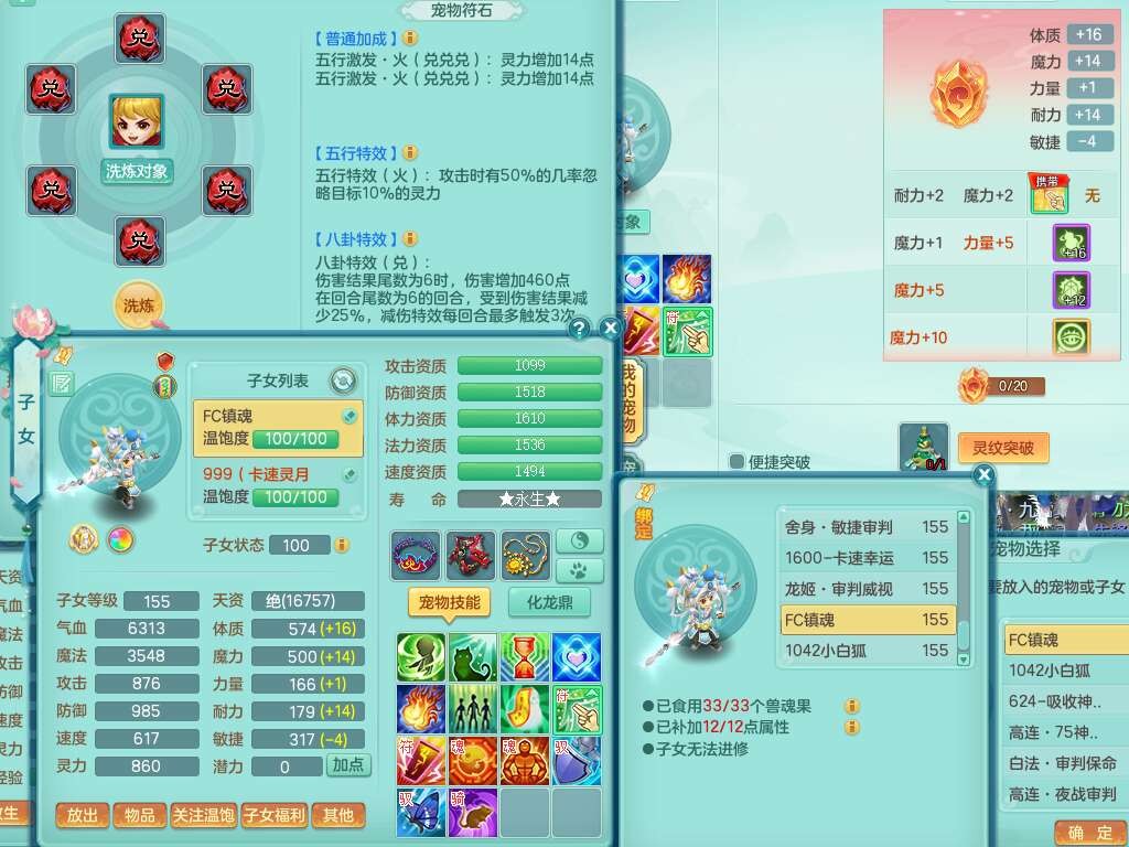A22110阳春白雪159男龙宫,精灵歌,6龙1龙皮,3内丹神(1蛇1马),6破镜,【20只觉醒,已潜龙】,4位靓号,5宠皮,3只六技能镜花灵,1只六技能龙姬,3特殊(舍身,上善,勇猛),击退四海单加武器,易成长疾速单加50衣服,263易成长单加55项链,五雷单加50腰带,法缭单加鞋子,可玩辅助愤怒六特,5.5基础鼎+70攻+280血,8.7法爆,15个永久格子,20个纯六字,28只满果子,仓库还有49个果子,宠排在榜,经验修炼在榜,永久称谓,4个孩子,5个坐骑,神驹马到成功+火焰之力武器皮肤。