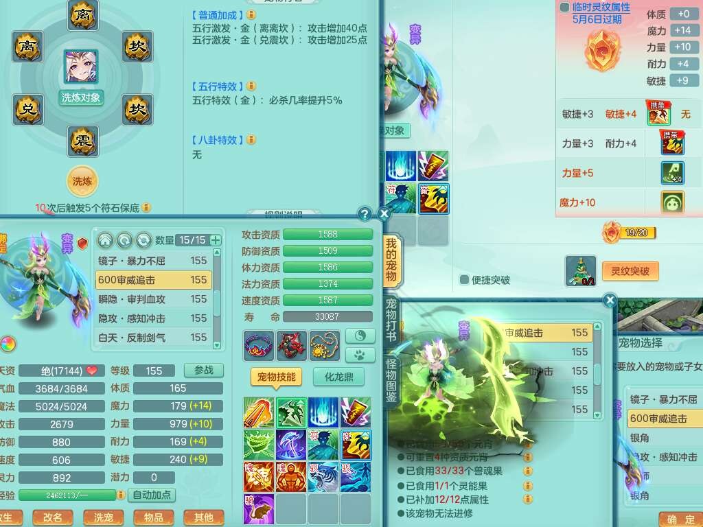 p22122江山如画159男灵月山,精灵舞,2龙2内胆神,11觉醒(潜龙过半,宝宝4只满足,符石只差2个附加,2个厚土龙纹),11宠皮,3特殊(灵傀,翻江,飞花),3只六技能镜花灵,2只六技能龙姬,易成长四海单加衣服,愤怒单加55腰带,五特,5.5基础鼎+70攻,差128积分换永久14个格子,6个纯六字,2个五字,19只满果子,宠排在榜,双人坐骑,西瓜冰武器。