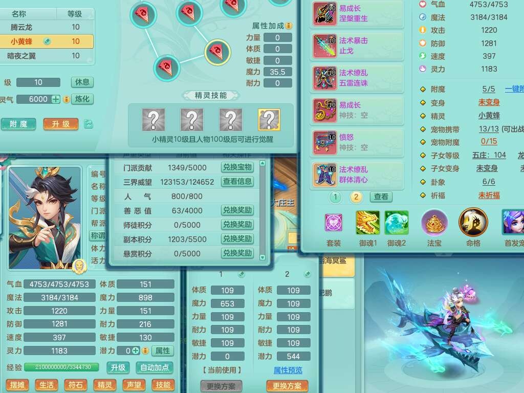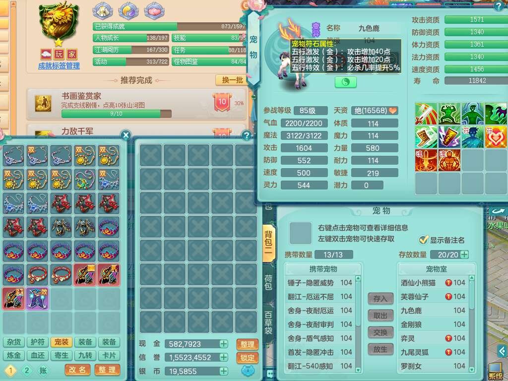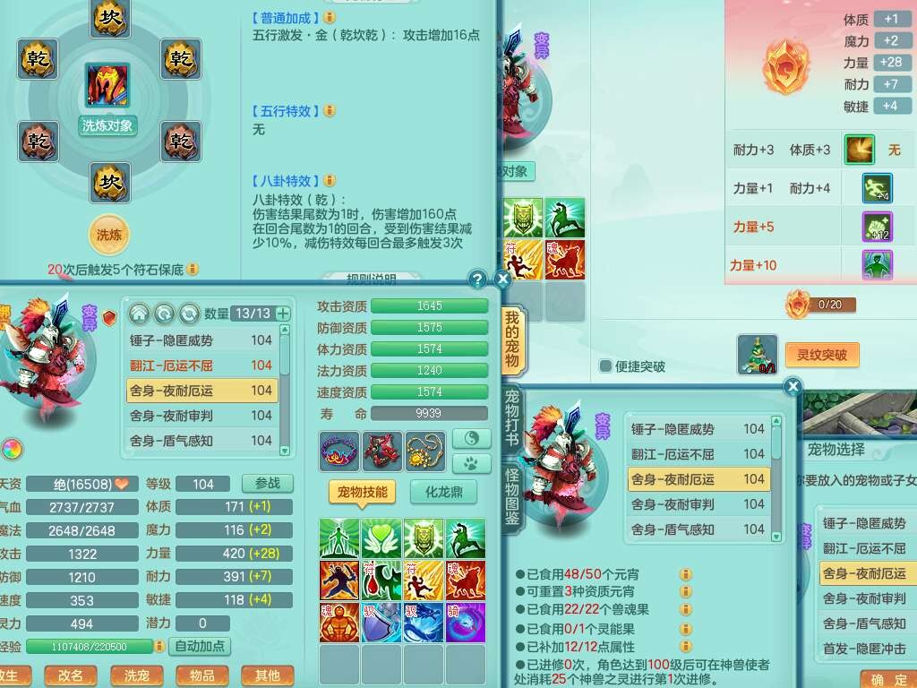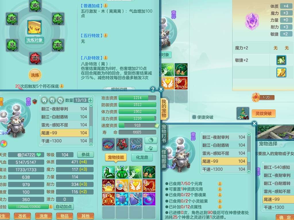 A22111普天同庆99男龙宫,1内胆神,2觉醒,双法缭,法缭五雷单加33衣服,法缭玉清鞋子,易成长慈航单加头,法爆止戈单加武器,163易成长项链,愤怒单加腰带,2.5基础鼎,1个五字,5只满果子,4个孩子,双人坐骑,131天月卡。